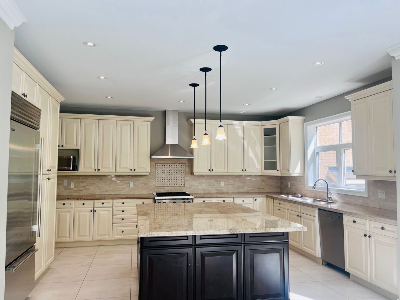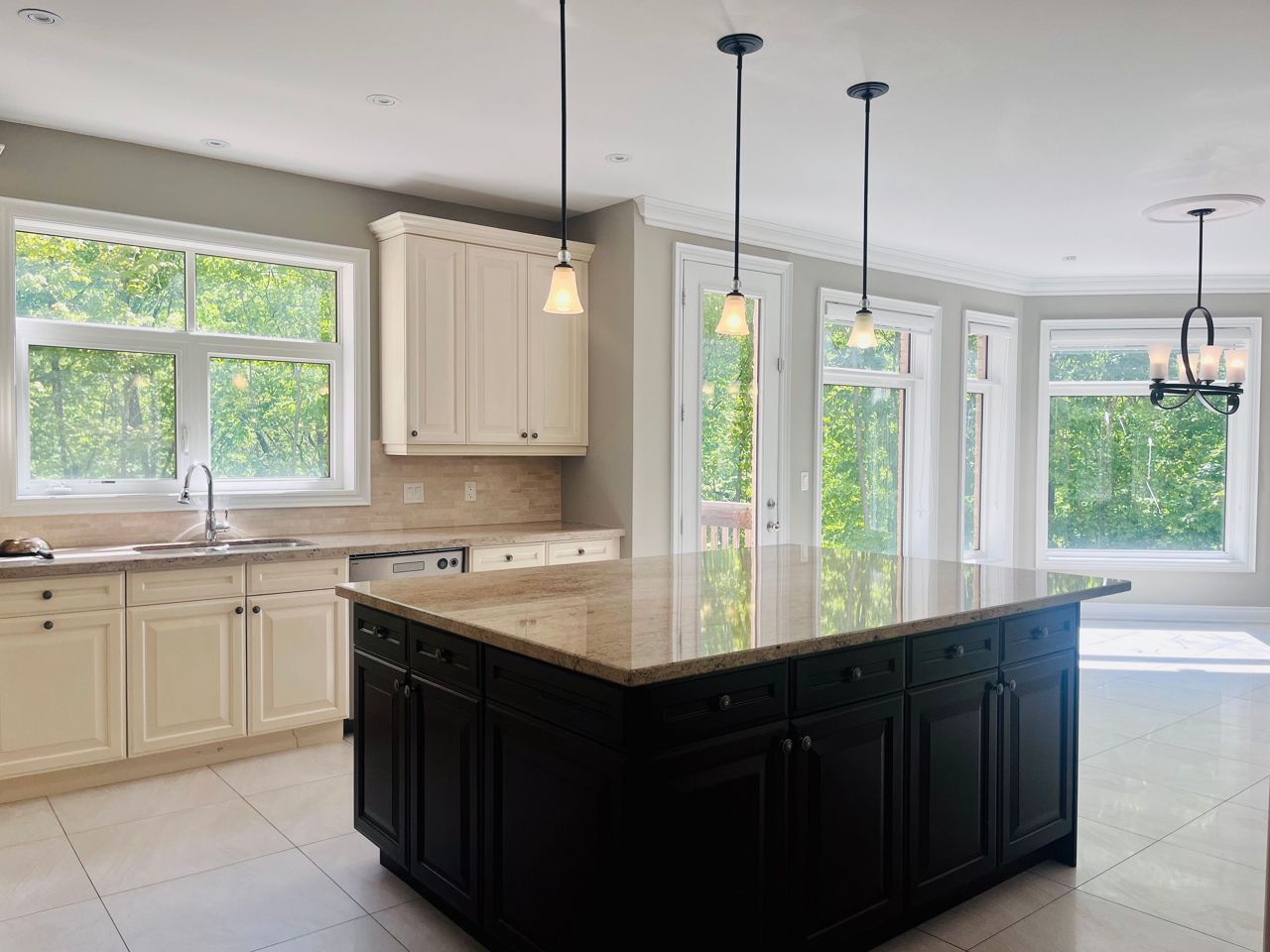 • Modern kitchen with granite countertops and high-end appliances.