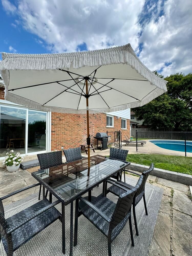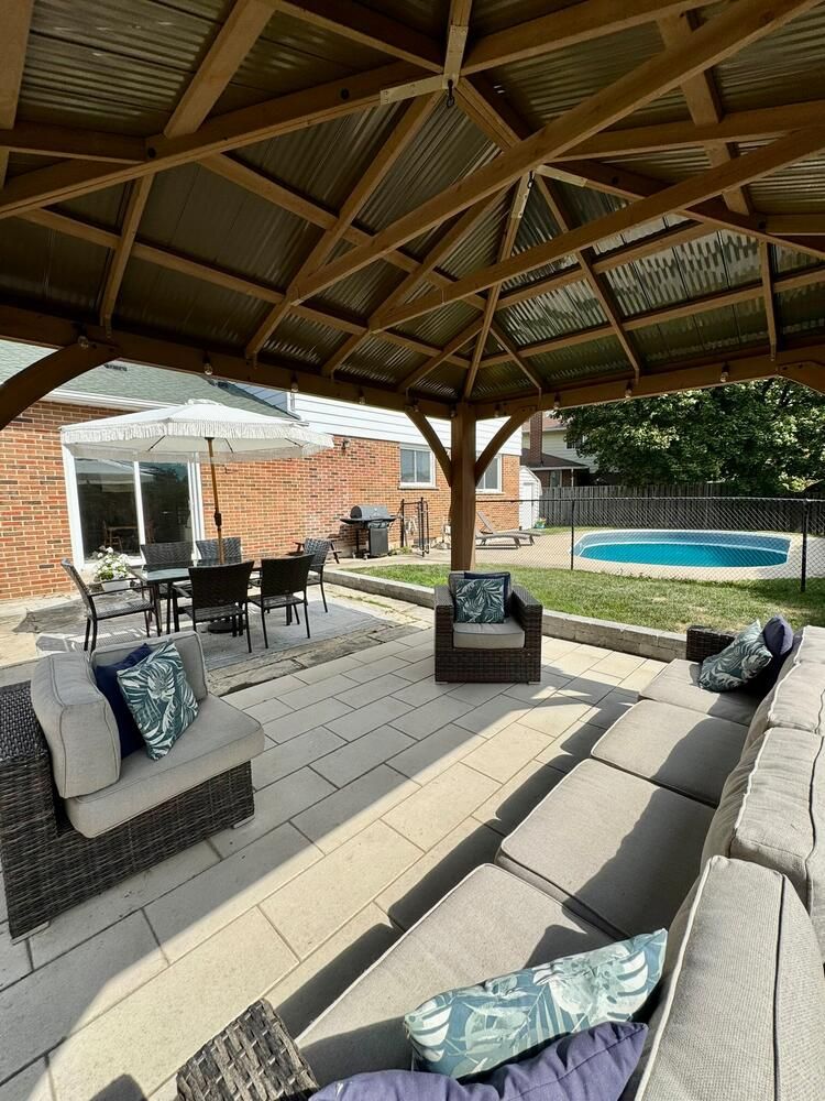 • Beautiful backyard with heated pool, patio, and gazebo perfect for gatherings.
