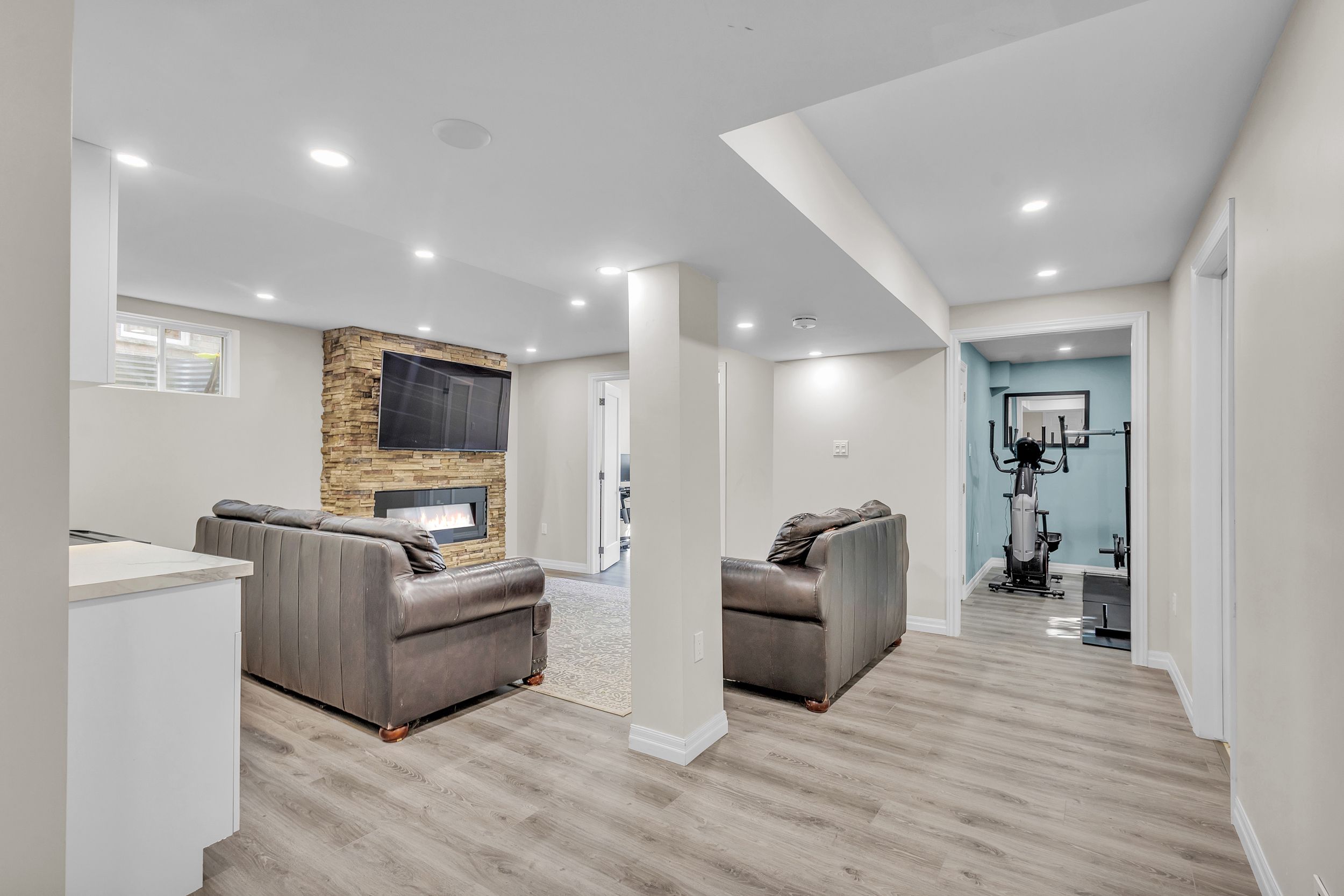 • Finished basement includes legal apartment for rental income opportunities.