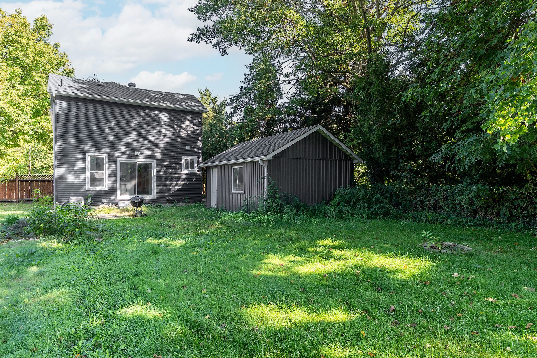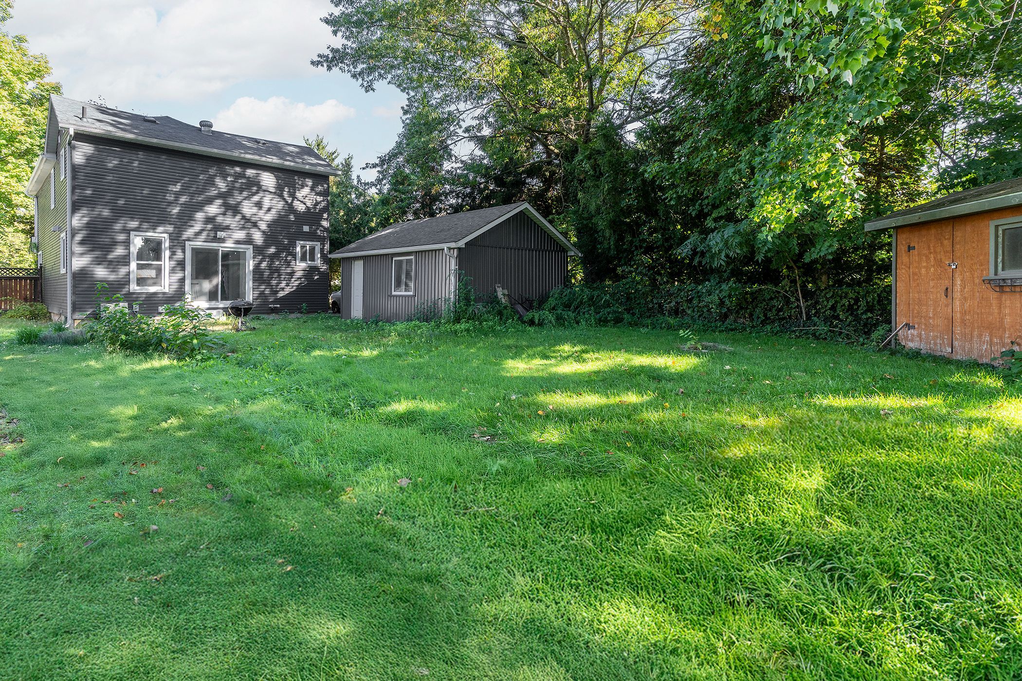 Best of both worlds, quality built century home that has been fully renovated with all the modern finishes and conveniences. You will enjoy the small town charm from your wrap around covered porch with a morning coffee or an evening glass of wine. The main floor offers plenty of space with great sized liv rm., separate din rm and an eat-in kitch that will be the envy of your friends and family with quartz counters, large island w/plenty of seating, s/s appliances, pot lights and plenty of cabinets and the convenience of back yard access for summer bbqs. The main floor is complete with a 2 pce powder room. The upper level offers 3 great sized bedrooms and two 4 pce baths including the master ensuite. The full unfinished basement is awaiting your personal touch. The back yard could be the perfect backyard oasis with a a deep lot offering plenty of space for a pool, a play structure for the kids or just a game of soccer, perfect for whatever your dream oasis is. It also offers a garden shed for your storage needs and a detached garage for your car or a man cave/she shed. This home checks all the boxes if the peace of small town living is what you are after with all conveniences a short drive away!