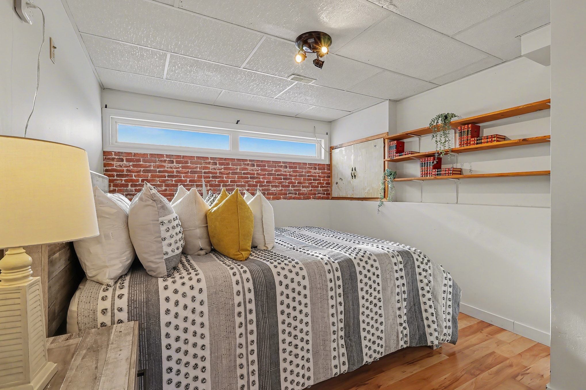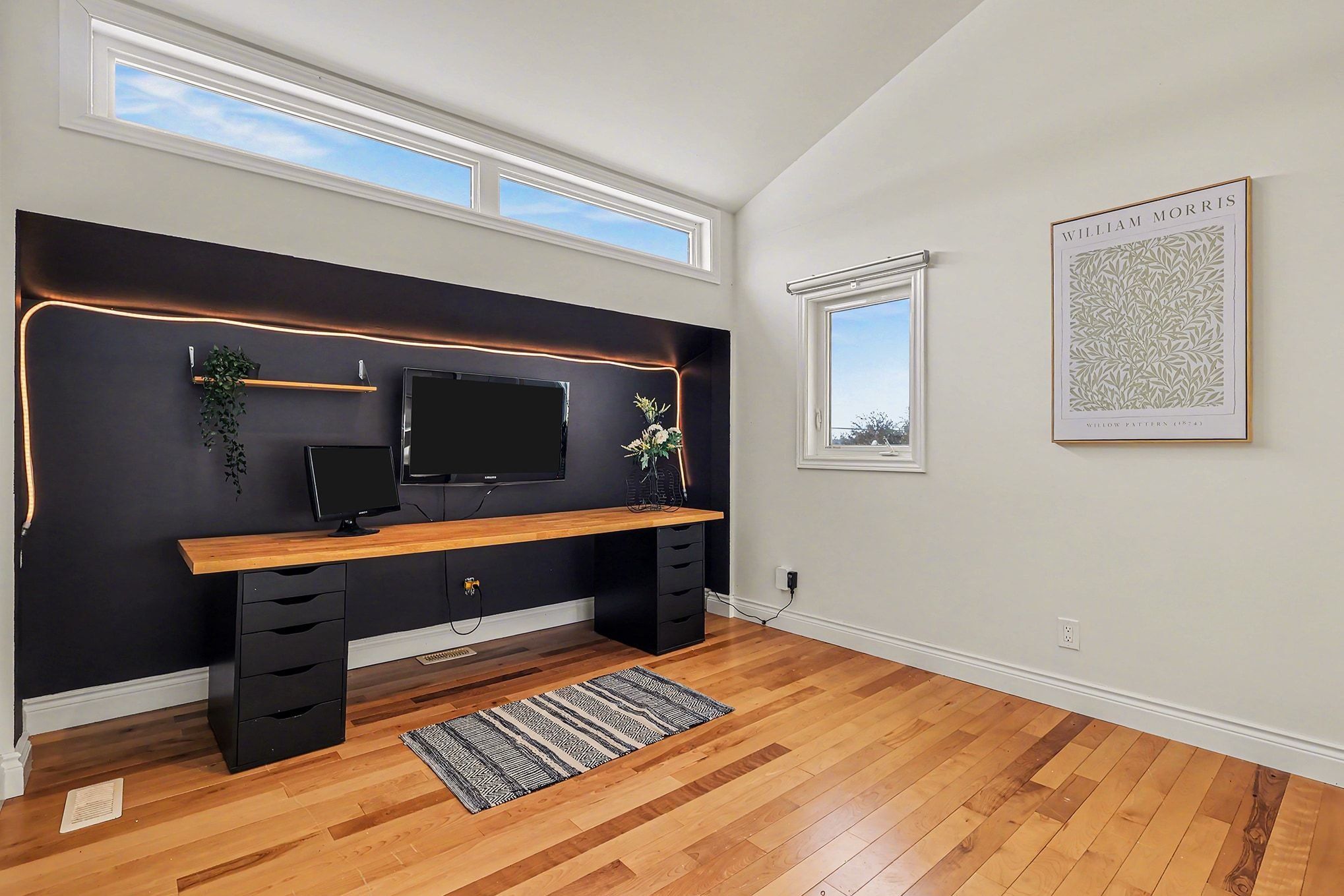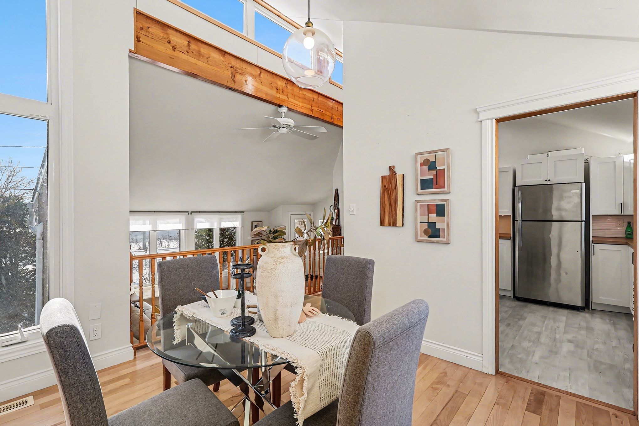 • Vaulted ceilings and large windows create an airy atmosphere.