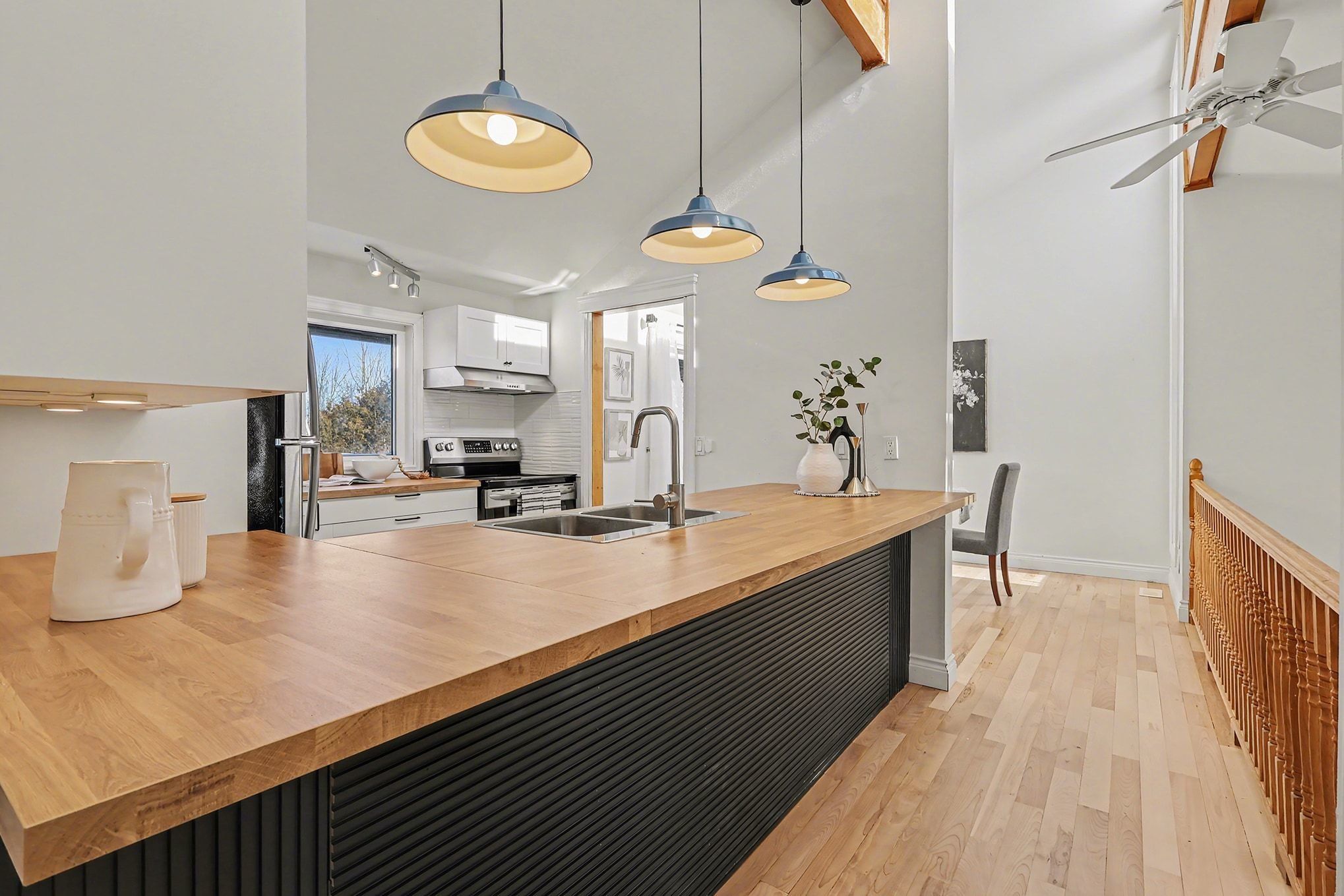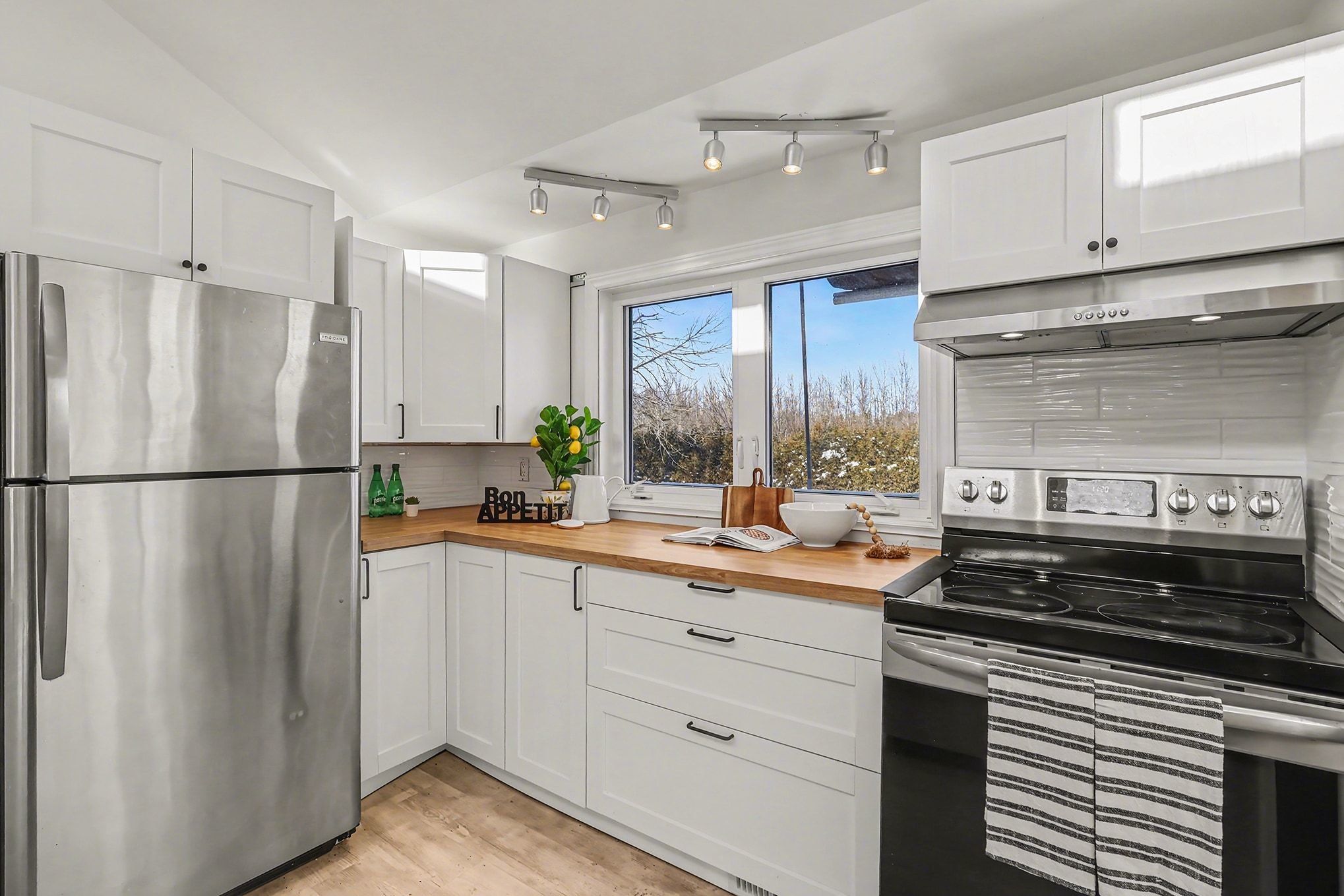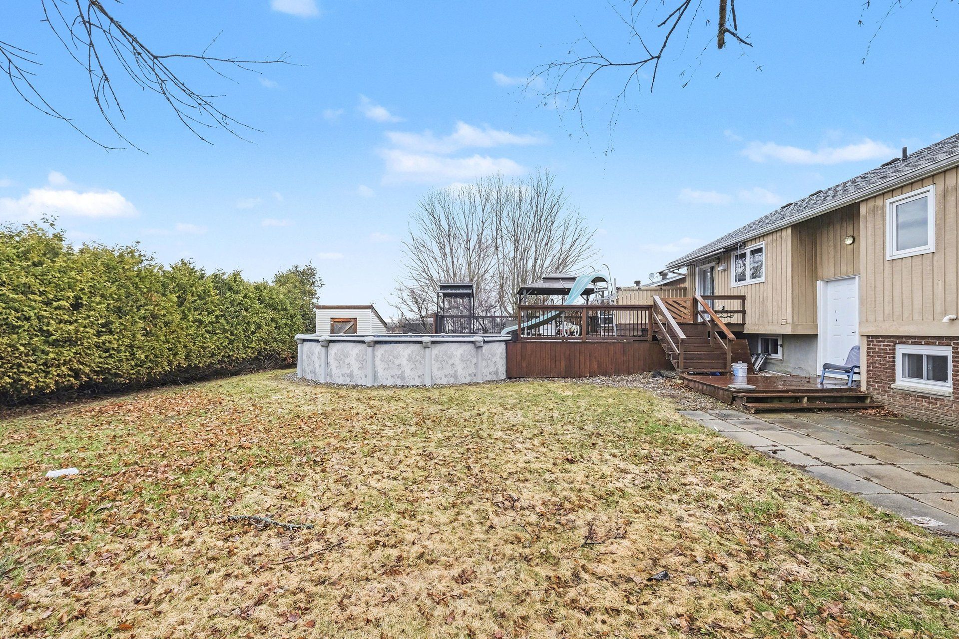 Not your average cookie-cutter house! This bright, multi-level, open-concept home offers well-defined spaces while still flowing beautifully-making it easy to entertain large gatherings of friends and/or family. Vaulted ceilings and an abundance of windows create an airy, spacious feel throughout. The main level living room showcases a cozy wood-burning fireplace, perfect for snuggling up, enjoying that campfire smell, and watching the natural fire flicker. The brand-new kitchen (installed 2025) features crisp cabinetry, warm wood counters, and modern lighting, with direct access to the eating area and walkout to an impressive very large, multi-level deck surrounding the 24' above-ground pool-a perfect setup for summer entertaining. The backyard is fully hedged for added privacy. The primary bedroom includes its own private balcony, ideal for morning coffee or an evening beverage. There are also two additional bedrooms and a full 4-piece bathroom on the main level. The lower level offers a full 3-piece bathroom, a large bedroom, and a spacious laundry room that could be converted to a kitchen or kitchenette-creating an excellent in-law suite opportunity. Enjoy the convenience of direct access from the garage into the lower level, plus a sub-basement bonus room that works wonderfully as an extra family room space, a rec room, or the living room area for the in-law suite. This home is also equipped with extra power for an electric vehicle charger. In total, there has been approximately $70,000 worth of upgrades in the last few years, including all exterior doors and windows, interior doors, a new kitchen, refinished flooring, and more. Internet: 1 gbps cable internet available.