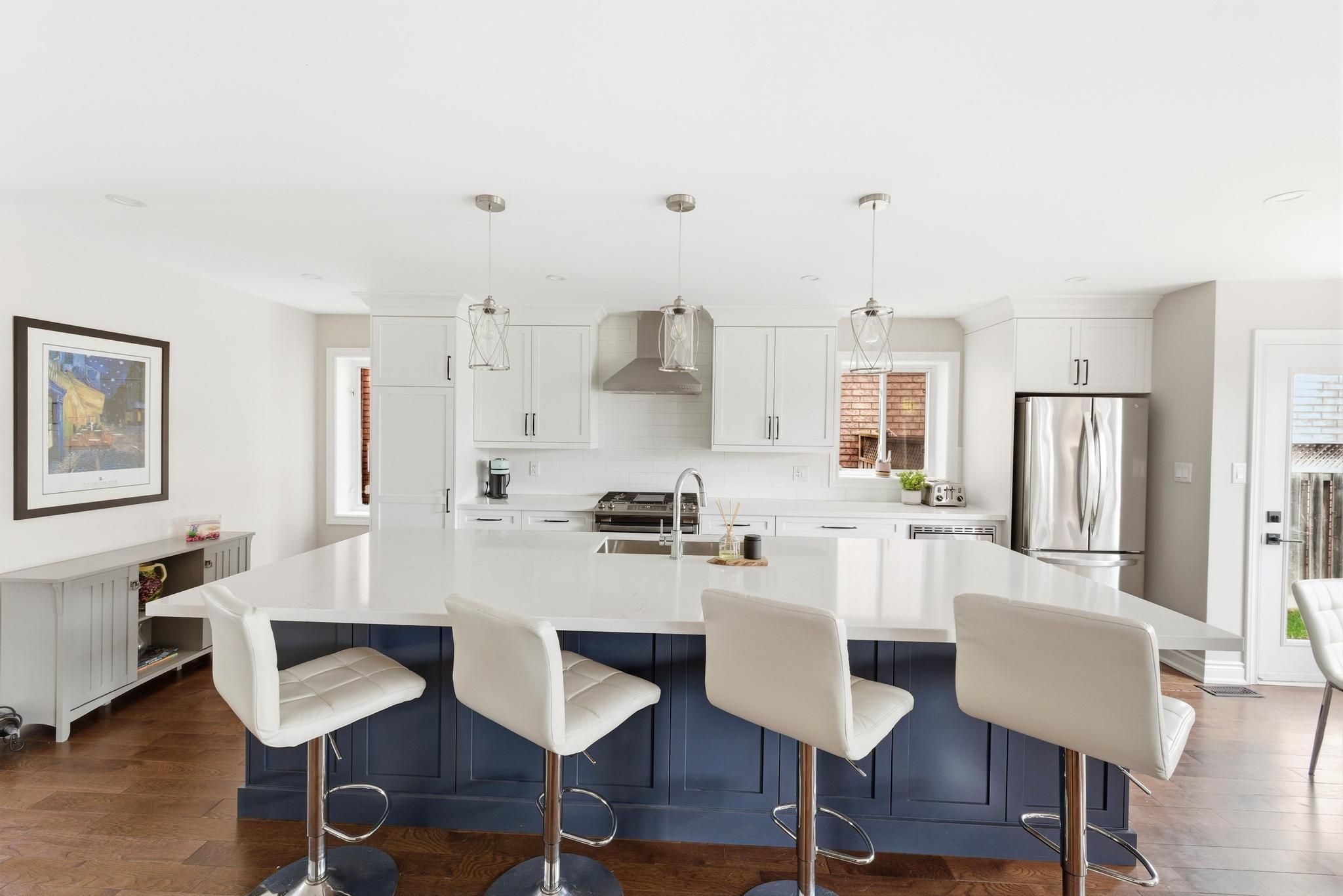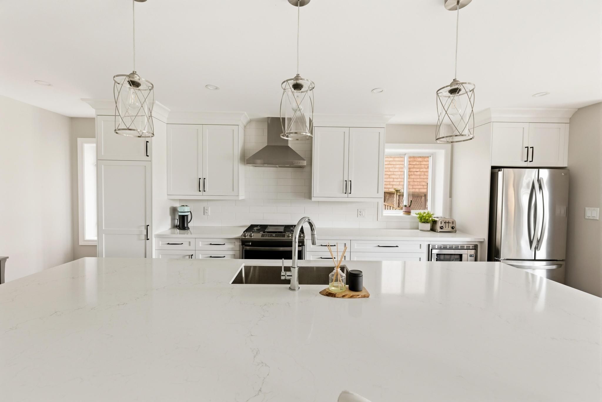 A perfect blend of style, comfort, and modern living-welcome to this beautifully updated detached home in the highly sought-after westmount, oakville. Offering approximately 2,082 above grade square feet, this thoughtfully designed residence showcases a bright and airy open-concept main floor, ideal for both everyday living and entertaining. The stunning chef-inspired eat-in kitchen features a large centre island, perfect for hosting, cooking, and gathering, and flows seamlessly into the inviting living room with a stylish shiplap gas fireplace. This space overlooks the spacious, pool-sized backyard-ready for your dream outdoor retreat. A convenient powder room and main floor laundry with direct garage access complete this level. Upstairs, you'll find three generously sized bedrooms, including a spacious primary suite with a walk-in closet and beautifully renovated ensuite featuring a large glass shower. The second bedroom offers semi-ensuite access to an additional full bathroom, providing comfort and functionality for family or guests. The finished basement extends your living space with cozy carpeting, a second fireplace, and a versatile den that can easily be converted into a fourth bedroom, along with a 2-piece bathroom. Ideally located in a family-friendly neighbourhood close to top-rated schools, parks, shopping, monestary bakery and oakville trafalgar memorial hospital, with easy access to major highways and dundas street. A truly turnkey home offering space, style, and an unbeatable location.*** 2 basement photos are virtually staged***