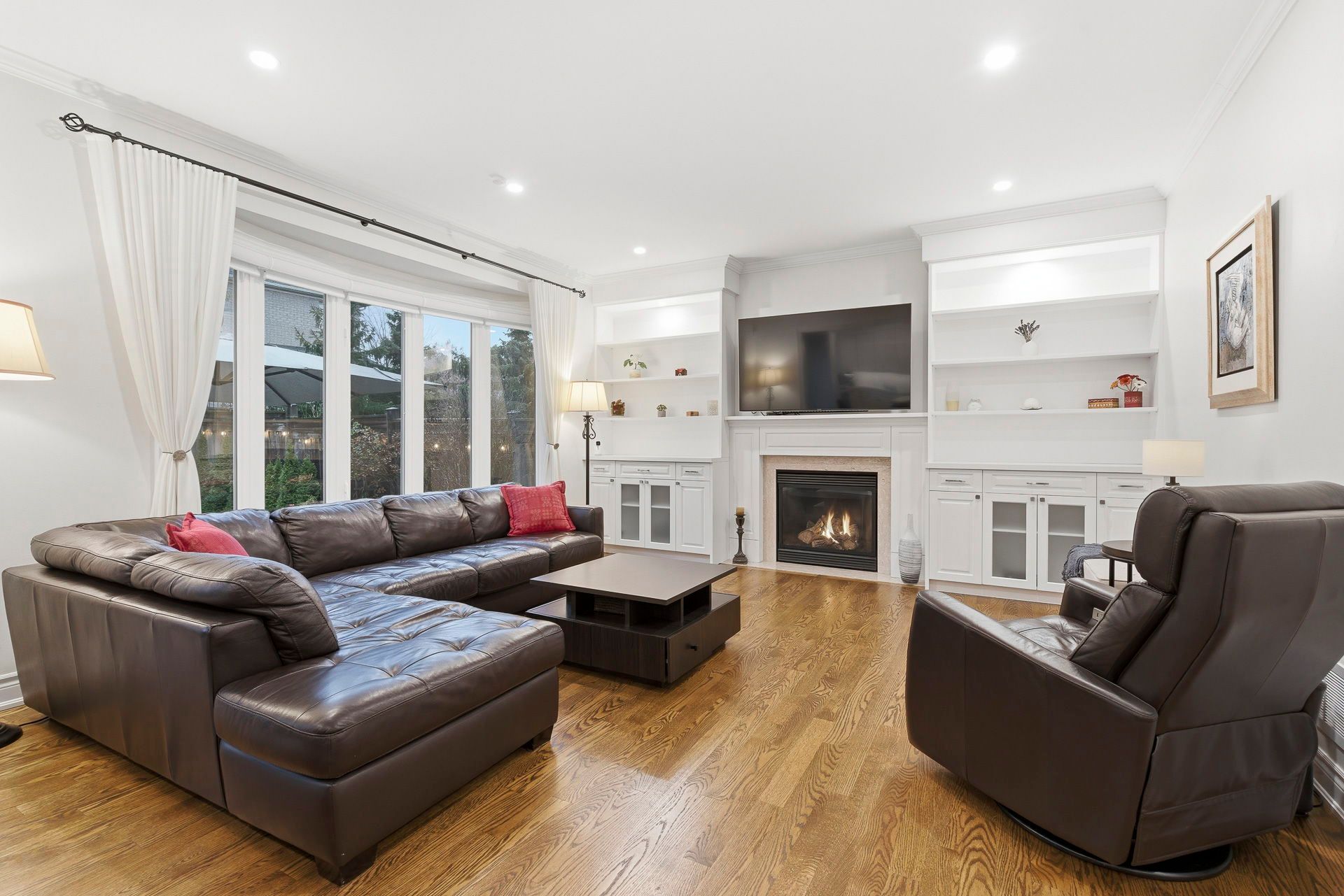 • Bright family room with gas fireplace and custom built-ins for cozy gatherings.