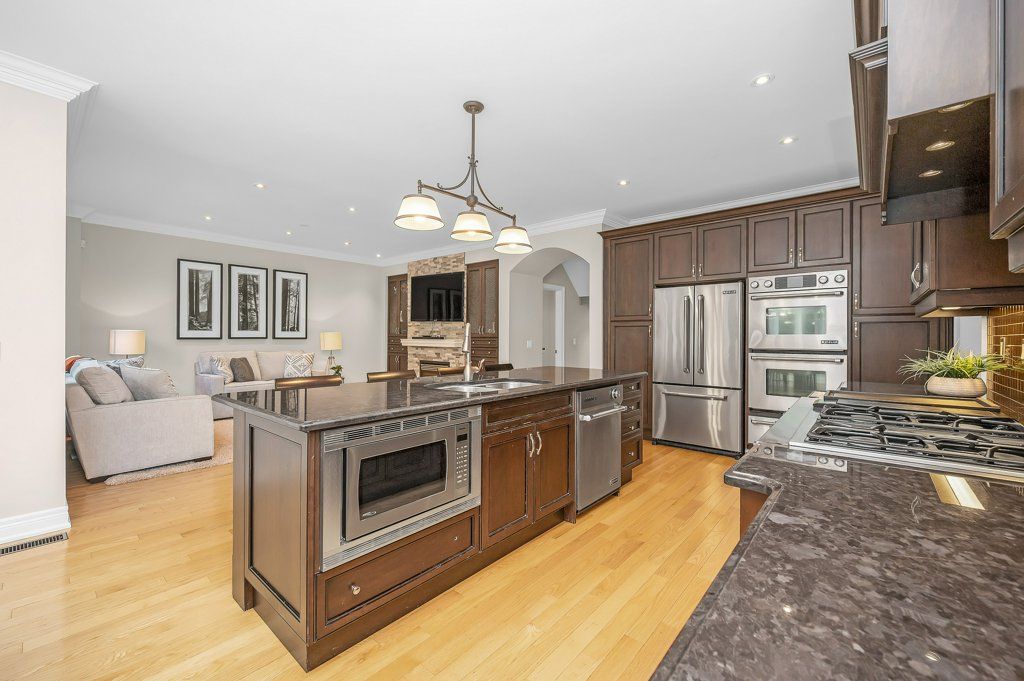 Rare find! Prime joshua creek executive home with premium extra deep private lot nestled on a quiet family friendly street. A truly bright and airy home with soaring cathedral ceilings, light hardwood, loads of windows, open concept layout, spacious separate living & dining rooms, and the perfect home office complete with built-ins & extra high ceilings. The heart of this home is the chef inspired eat-in kitchen with high end jenn air stainless steel appliances overlooking the garden oasis with salt water pool. Upstairs, all 4 generous bedrooms have ensuite privileges. The carpet free lower level boasts a cozy rec room with gas fireplace, exercise area, and 5th bedroom with ensuite & walk-in closet. Located in frazier top ranked iroquois ridge high school & joshua creek public school school districts. Recent improvements include furnace & a/c '25, roof '19, pool heater '23, pool pump & salt system '22, pool safety cover '17. Close to superb walking trails, parks, shops, and highways. A fantastic place to raise your family!