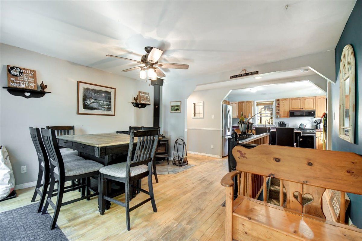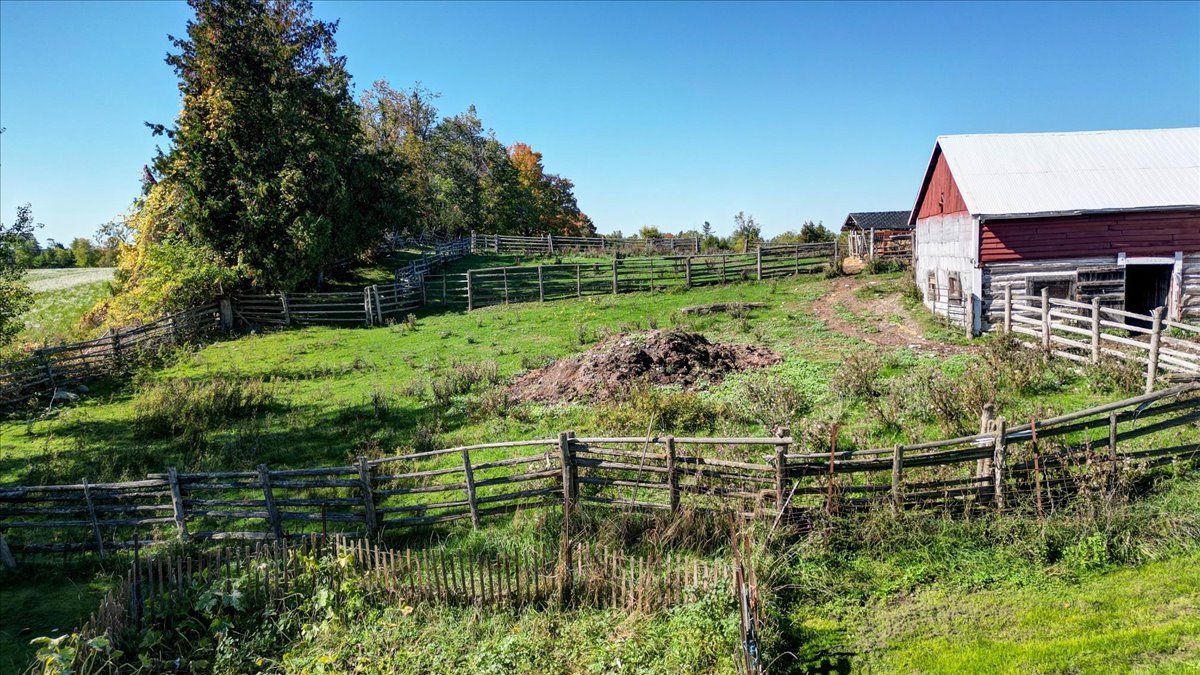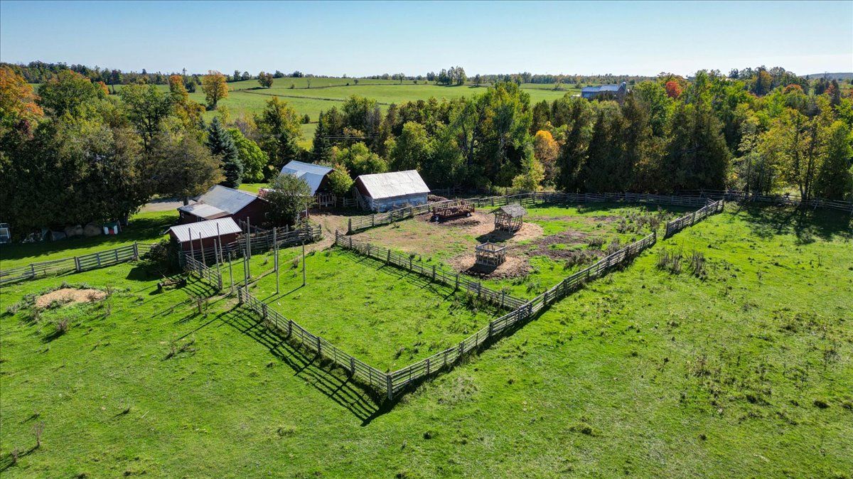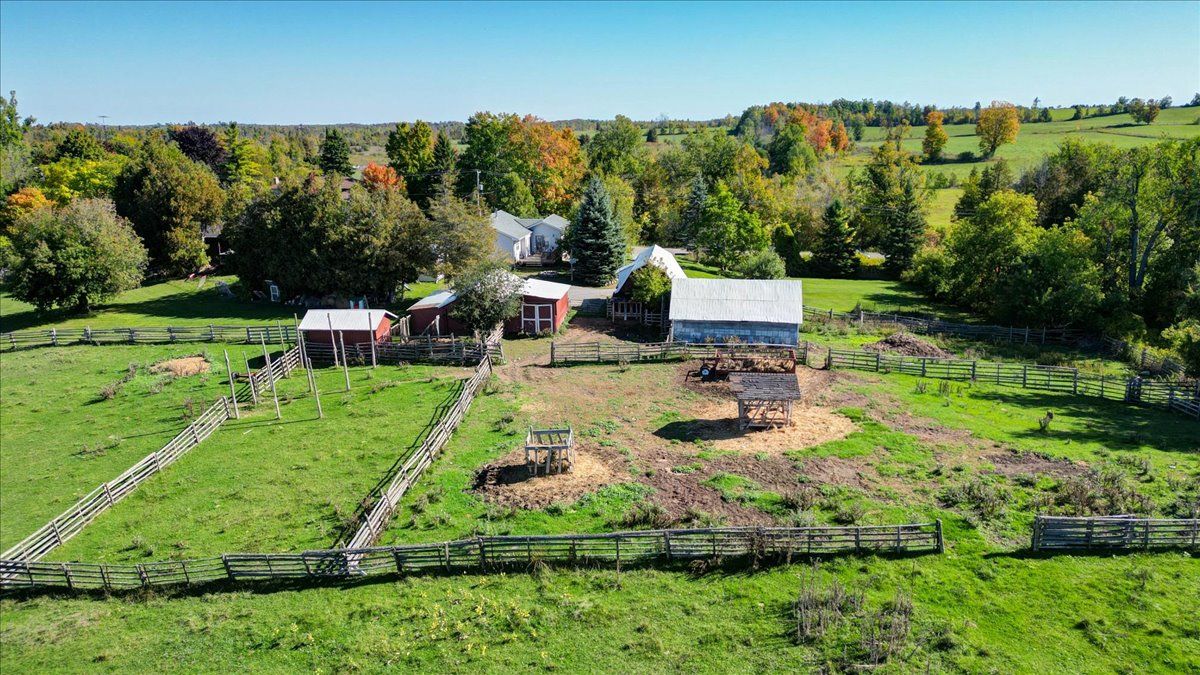 Enjoy the perfect blend of comfort, privacy, and country living on this picturesque 41-acre hobby farm, conveniently located just minutes from peterborough. Set at the end of a private laneway, the well-maintained bungalow is surrounded by open pastures, a scenic pond, mature trees, and peaceful natural beauty. The spacious open-concept main level features hardwood floors throughout, a bright living room with deck access, and a custom kitchen offering ample cabinetry, generous counter space, and stainless steel appliances. Garden doors off the dining area lead to a large sun deck, ideal for entertaining or enjoying the serene views. Renovated modern bathrooms include a main-level bath with soaker tub and separate shower. The lower level offers a spacious three-piece bathroom with laundry and closet space, along with a large walkout primary bedroom that could also function as a comfortable family room. Additional highlights include abundant storage, a newer propane furnace, central air conditioning, and a cozy wood stove for winter evenings. The property is well equipped for hobby farming or self-sufficient living, featuring well-maintained barns with hydro, fenced paddocks, and stalls. The upper barn provides clean, versatile storage, while additional outbuildings and a chicken coop are in excellent condition. Forest trails offer access for firewood, and there is plenty of space for gardens and outdoor enjoyment. A rare opportunity to enjoy peace, and rural charm without sacrificing convenience - this inviting property delivers a lifestyle of comfort, serenity, and connection to nature.