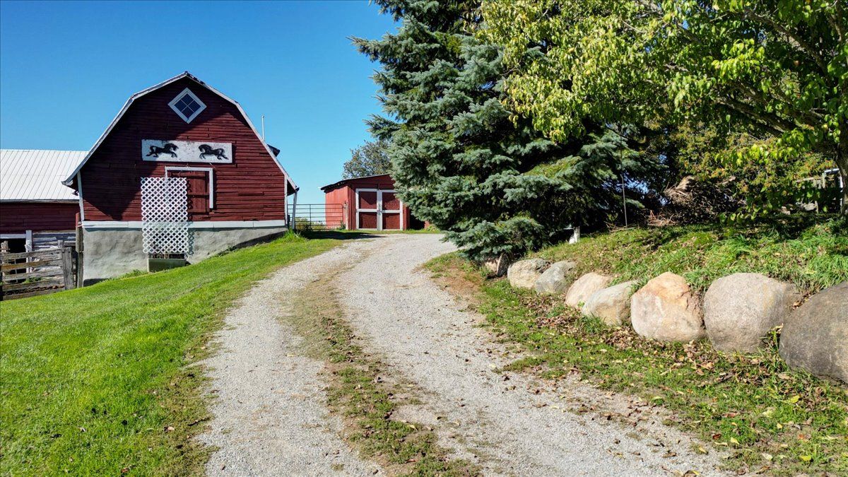 • Equipped for hobby farming with barns, paddocks, and trails.