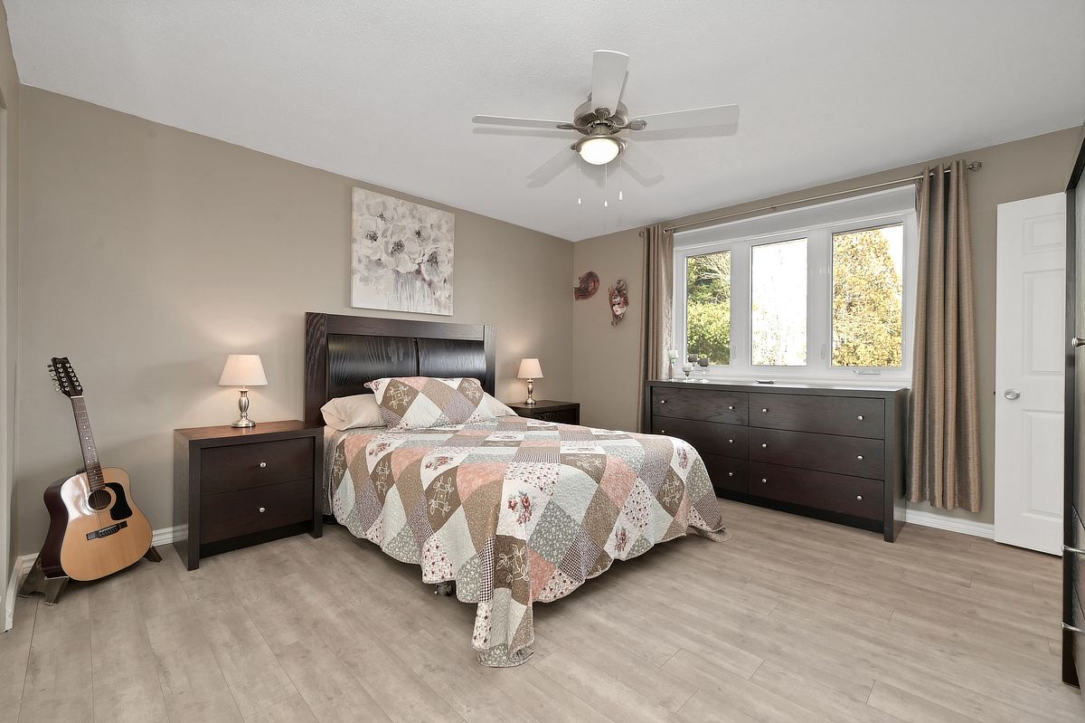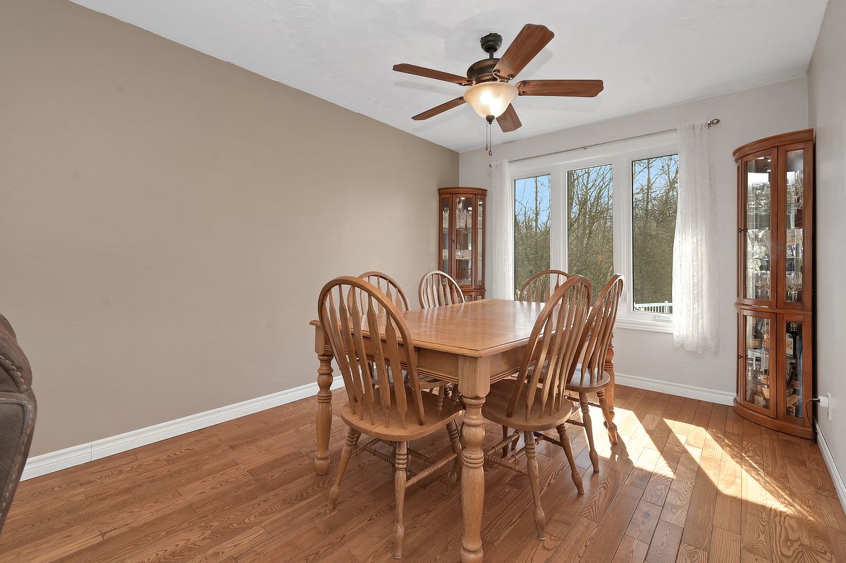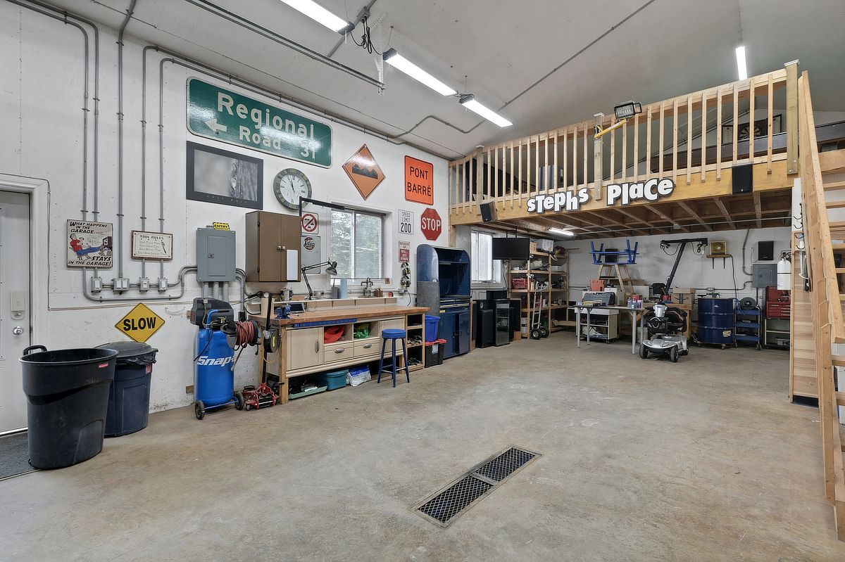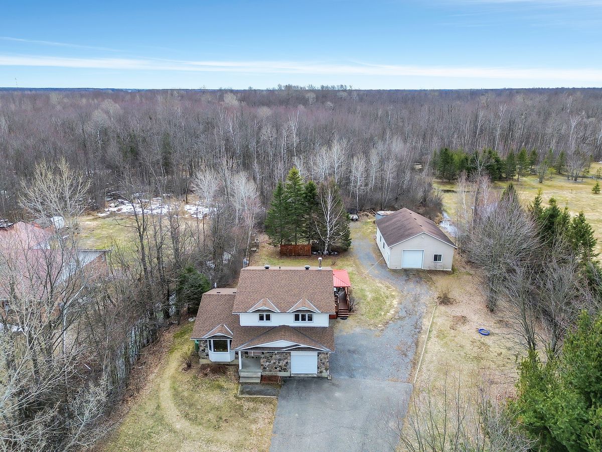 Set on a picturesque 1. 83-acre lot, this beautifully maintained two-storey home with a heated 30x40 detached garage/workshop (icf built in 2012) offers the perfect blend of comfort, space, and serenity. Step inside to discover a thoughtfully updated interior featuring a stunning renovated kitchen with a large island and breakfast bar-ideal for gathering and entertaining. The adjacent eating area, currently enjoyed as a cozy reading nook, is anchored by a charming wood-burning fireplace and features a patio door that leads directly to the backyard-perfect for seamless indoor-outdoor living. A formal living and dining room with a large bay window fills the space with natural light, while a convenient main floor laundry closet adds everyday practicality. Upstairs, you'll find three spacious bedrooms, including a primary suite with an updated ensuite, along with a fully renovated main bathroom. The fully finished basement expands your living space with a generous rec room and abundant storage options. Outside, the lifestyle truly shines. Enjoy summer days on the expansive deck with an above-ground pool, unwind in the gazebo, or gather around the fire pit under the stars. The property also features a garden area complete with a rainwater watering tower, as well as private trails perfect for four-wheeling, walking, or snowshoeing. Car enthusiasts, hobbyists, or those seeking extra space will love the heated, two-storey detached garage, complete with radiant flooring, a finished upper level currently set up as a games room with a pool table and darts with motorized staircase lift. A large driveway provides easy access to both the home and garage, with 200 amp service in the house and 100 amp in the garage. Surrounded by nature and offering a peaceful, tranquil setting, this exceptional property is the perfect place to call home. Kitchen (2022), furnace (2025), hwt (2020), roof (2020), windows & patio door (2012), ac (2009), pool (2015), pool liner (2025), pool heater (2021).