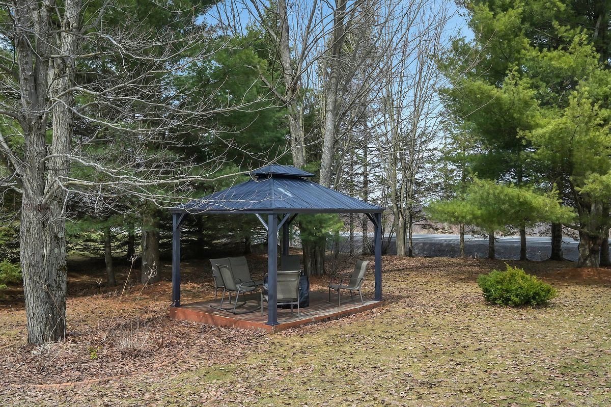 • Expansive outdoor deck with an above-ground pool and gazebo for relaxation.