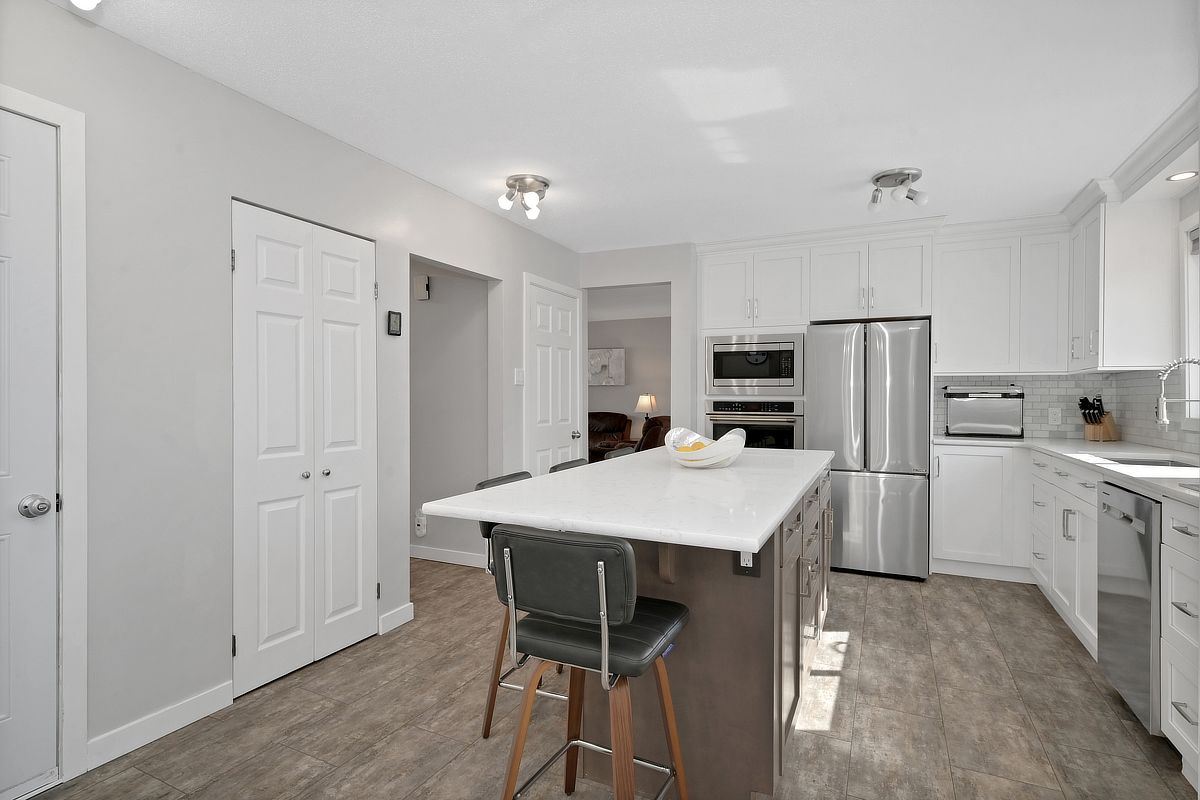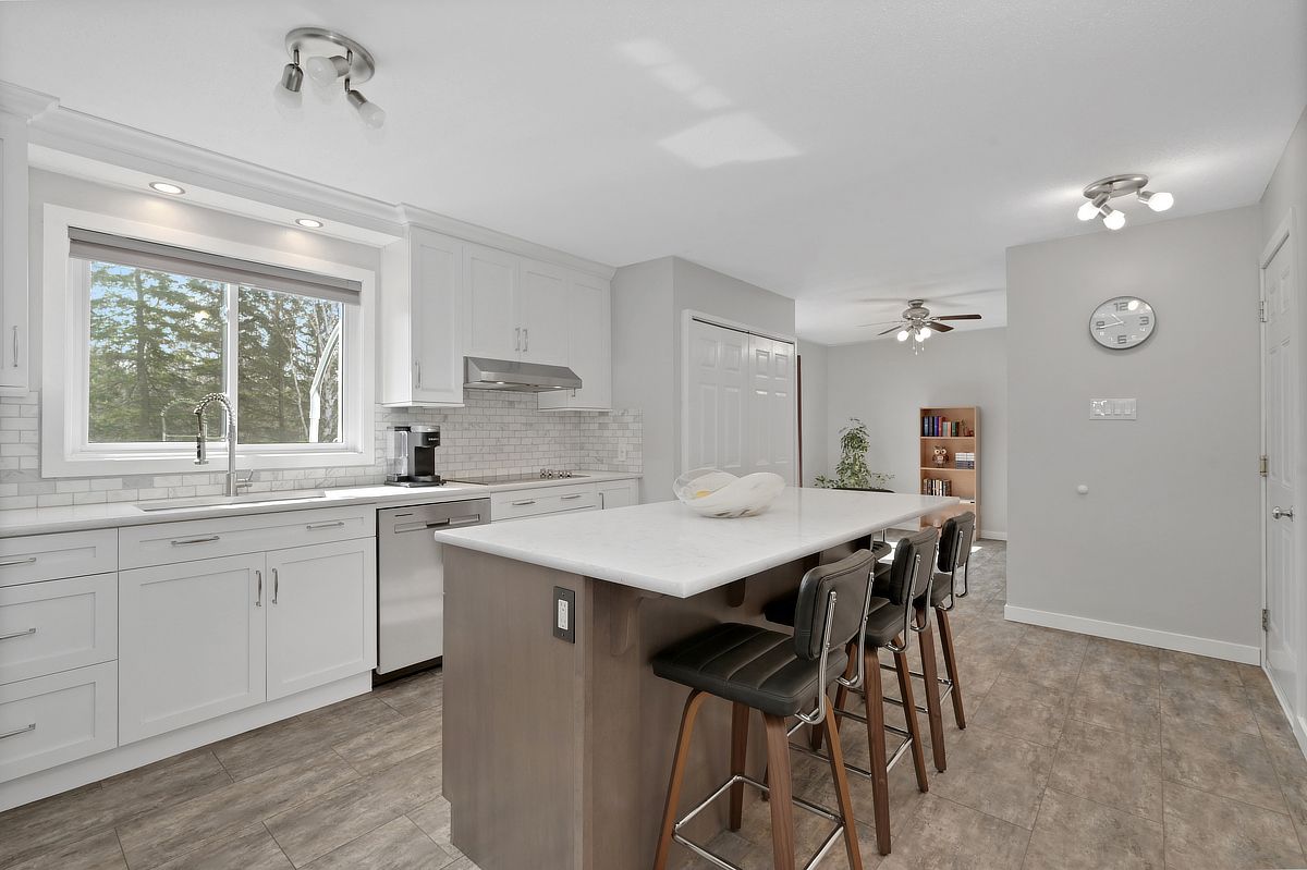 • Updated interior featuring a renovated kitchen with a large gathering island.