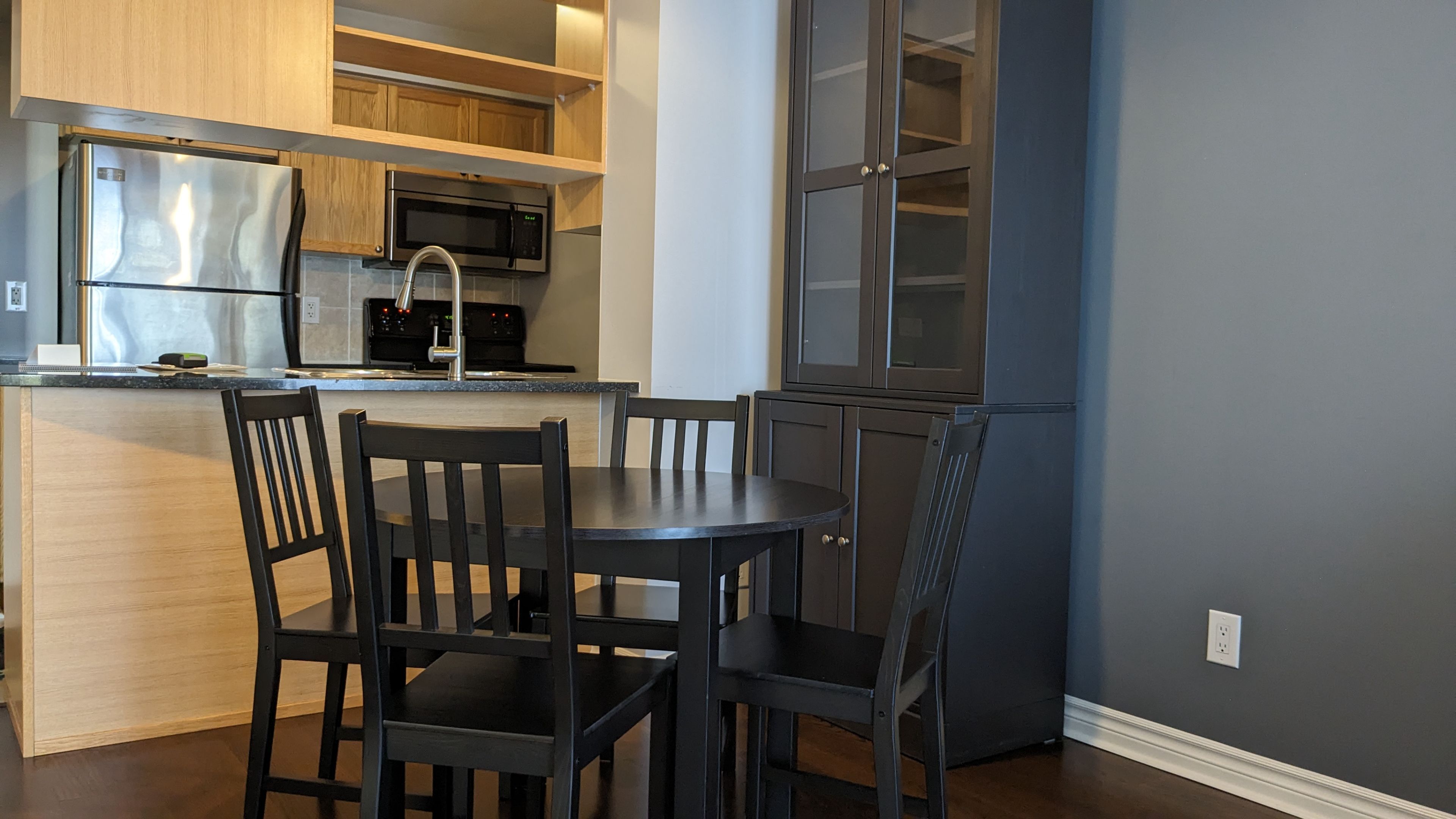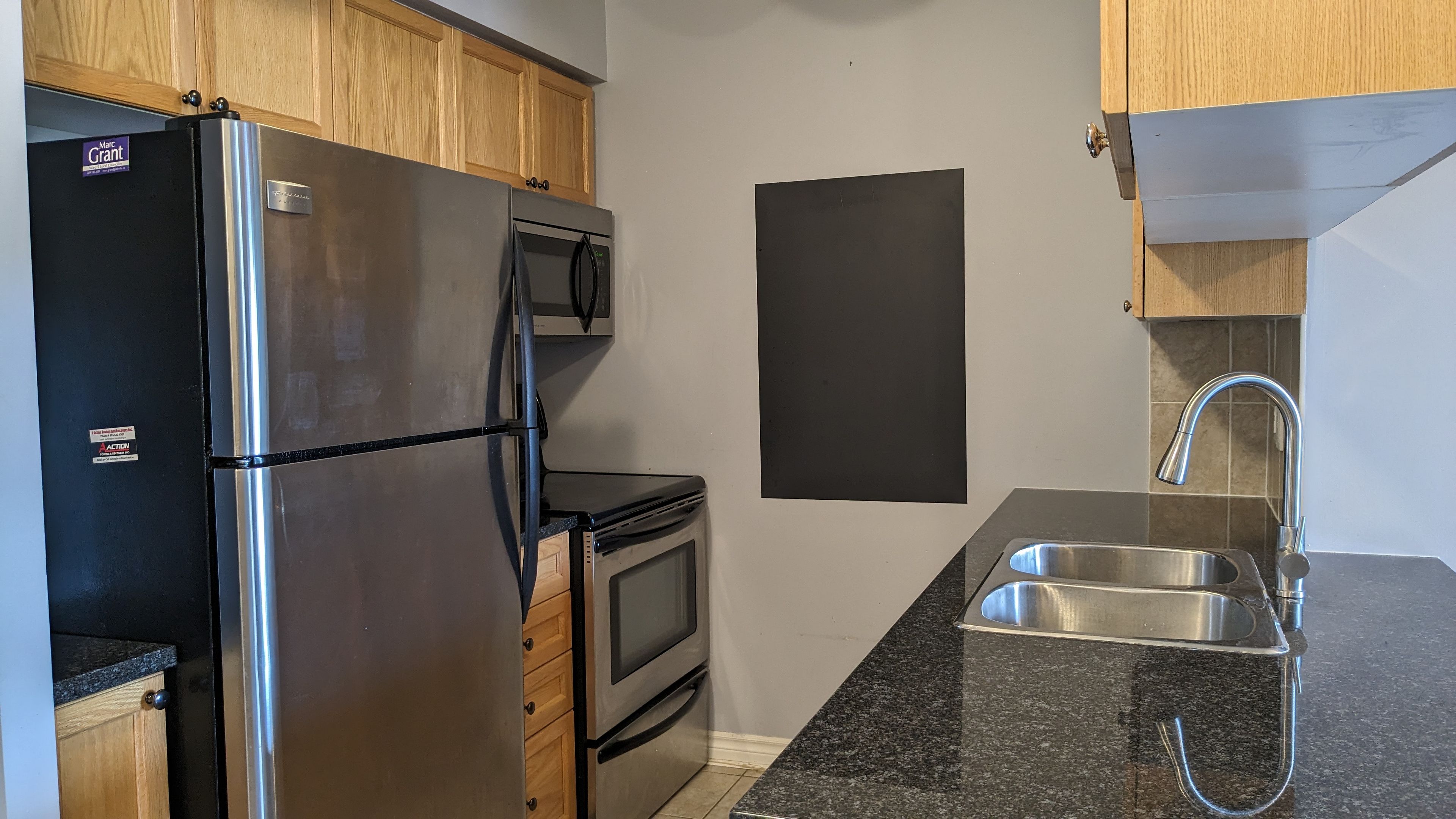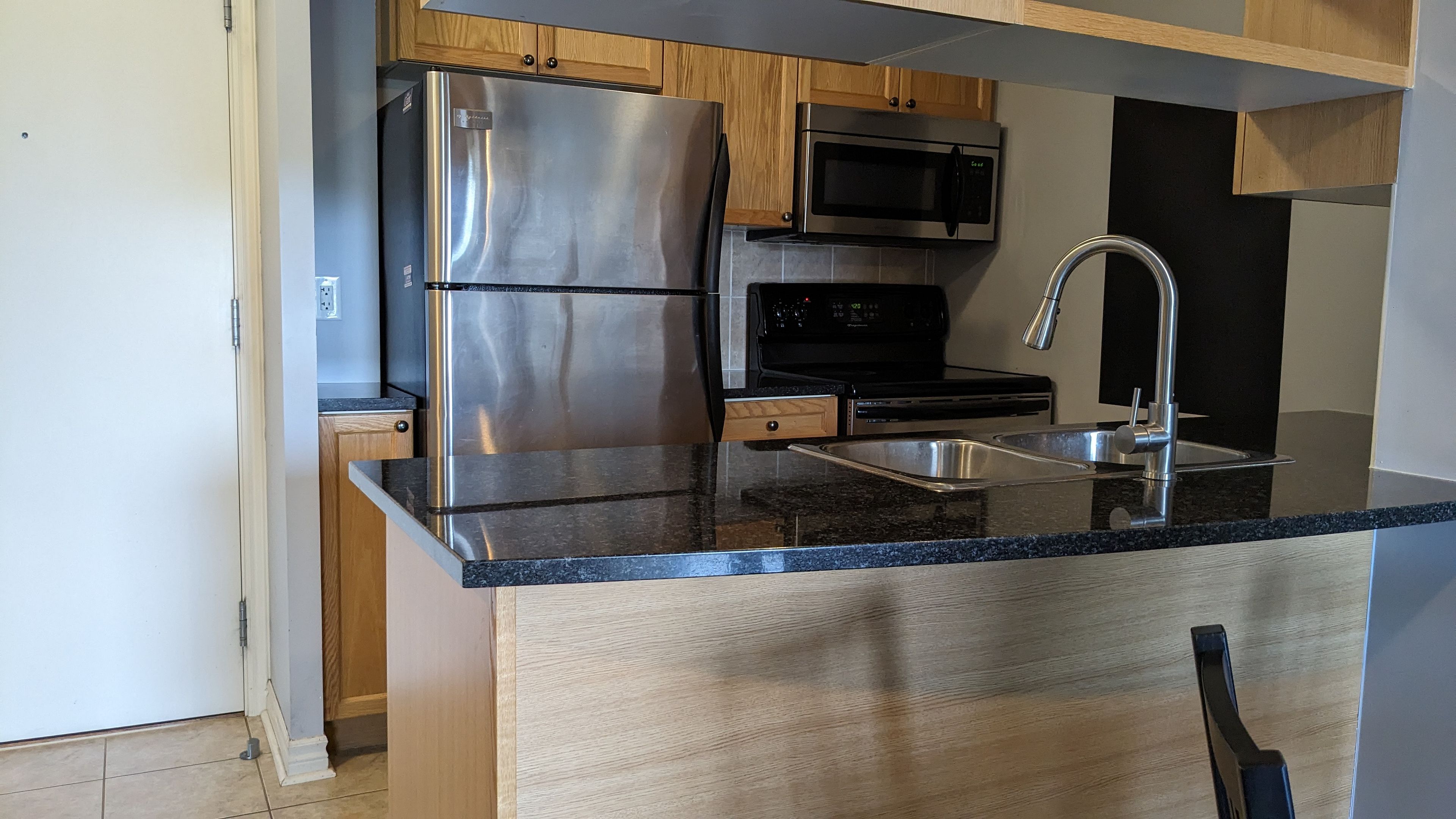 A welcoming cozy 1-bedroom apartment on the third floor in central park, featuring 9-foot ceilings, laminate flooring, and a kitchen with granite counters and stainless steel appliances; it boasts a private, south-facing balcony. Finally, it includes laminate flooring, quartz countertops, and a tiled backsplash. This unit offers a private balcony with serene views and grants access to exceptional amenities (pool, gym, sauna, etc.). Its location is highly convenient, offering a vibrant, walkable community feel with quick access to major highways (403, 407, qew) and local necessities.