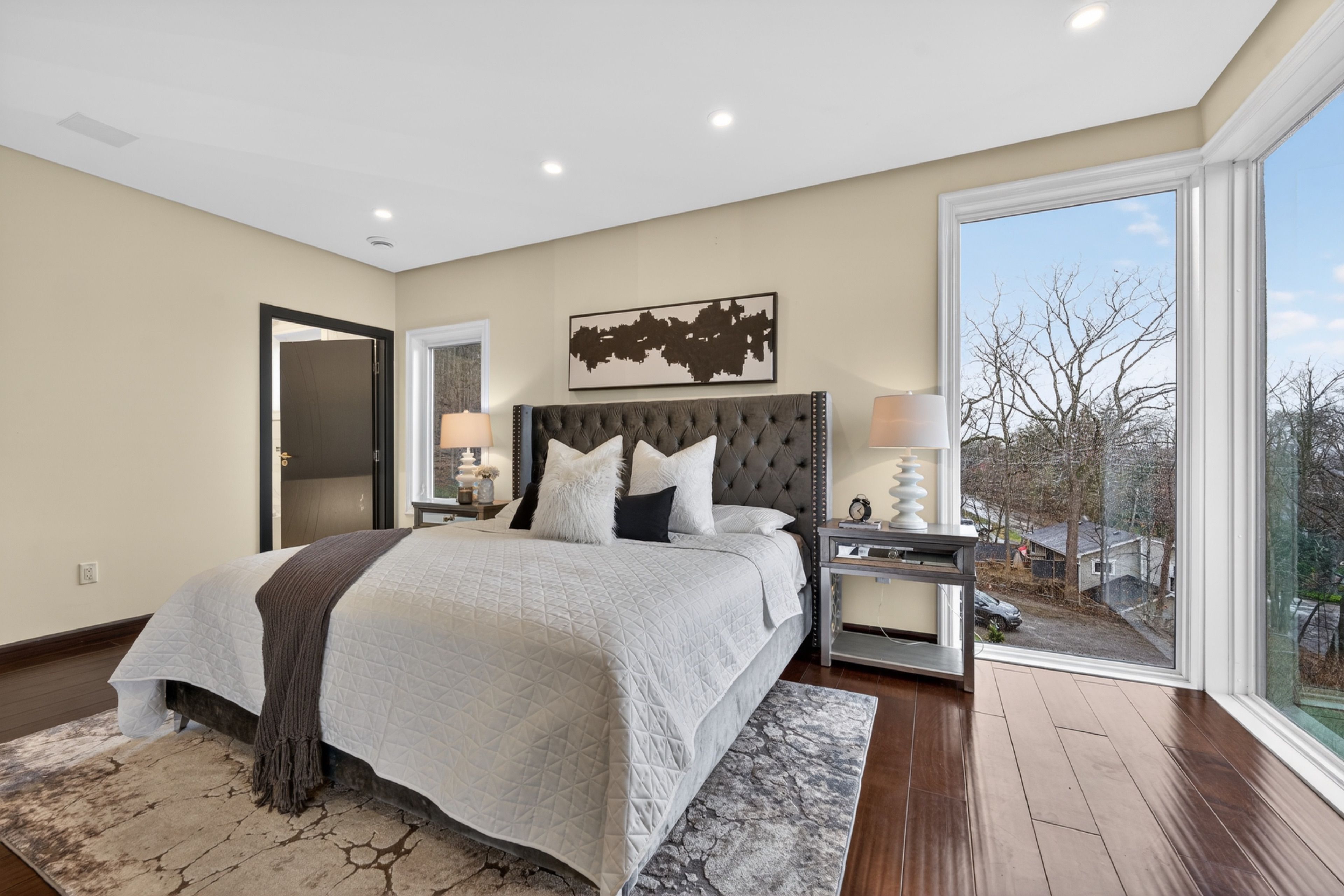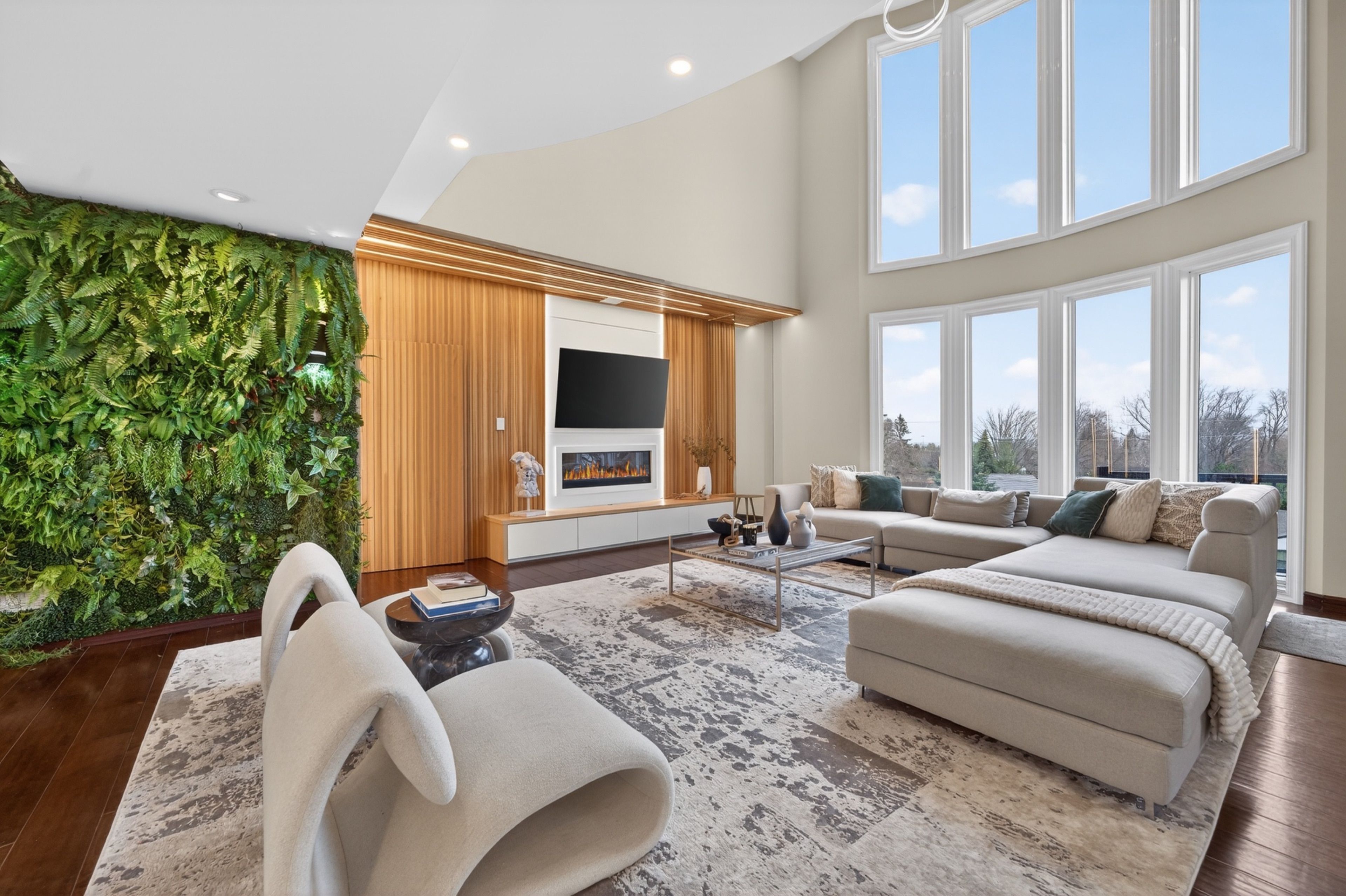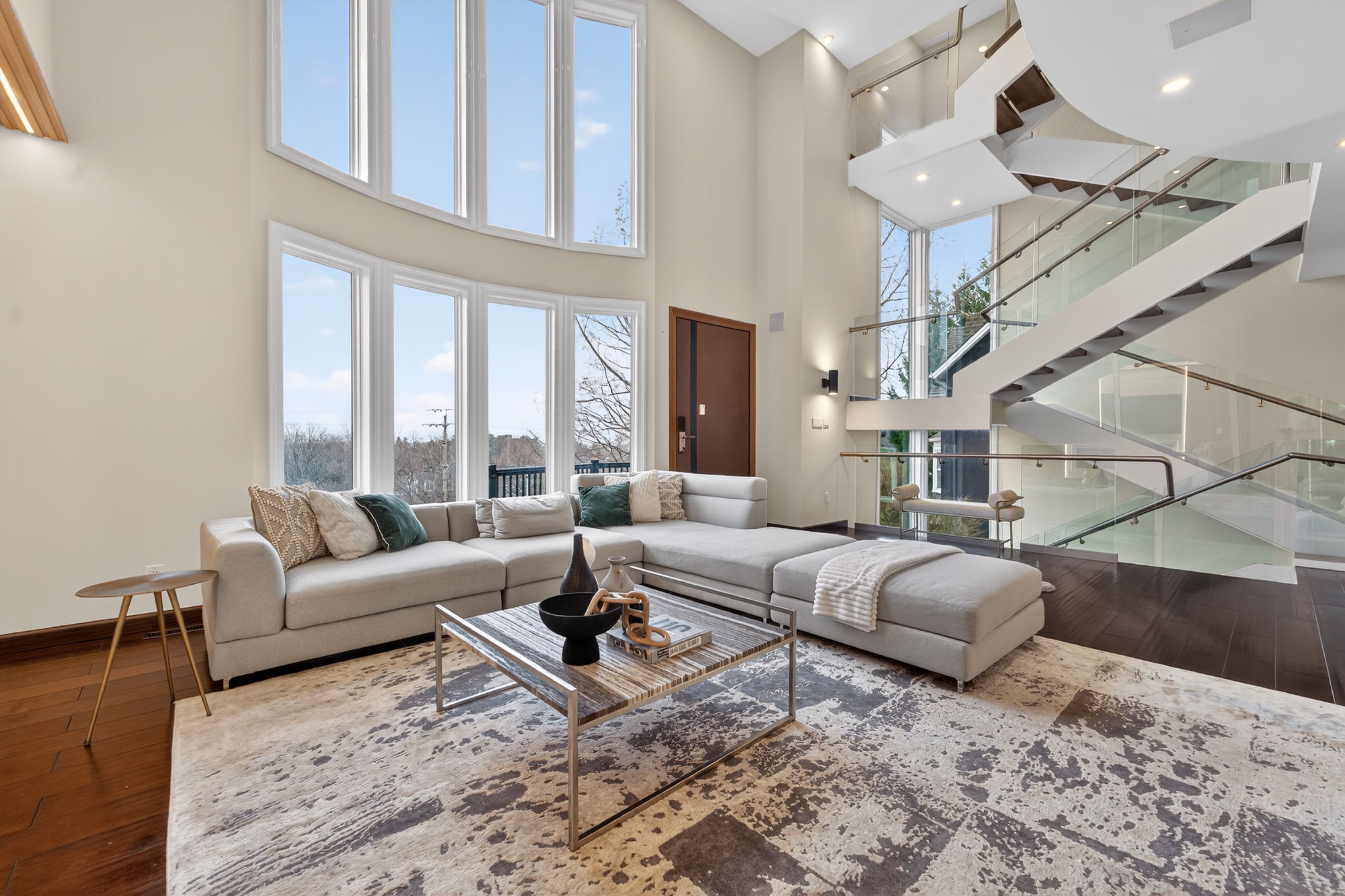 • Soaring ceilings and large glass walls allow for plenty of natural light.