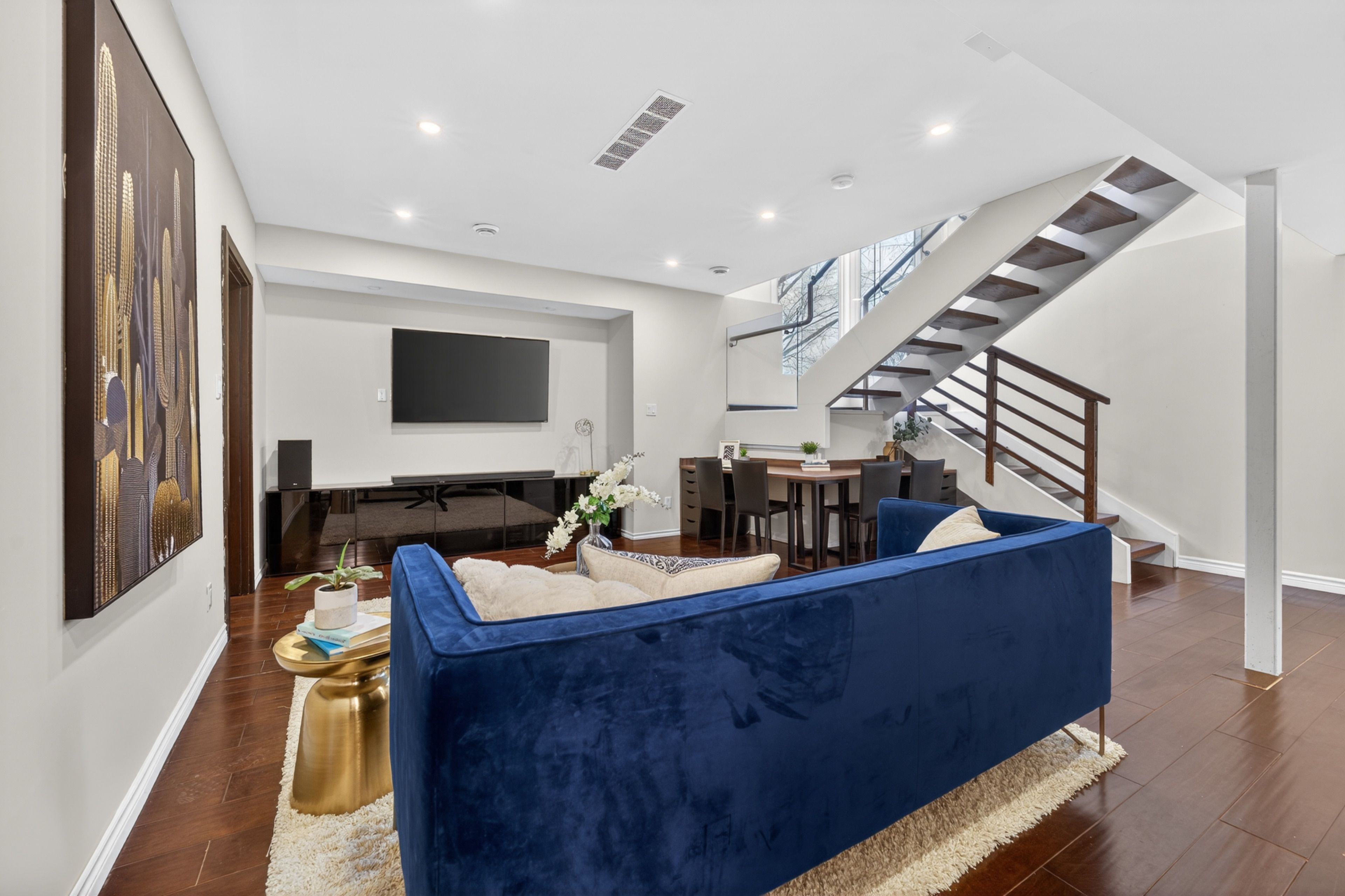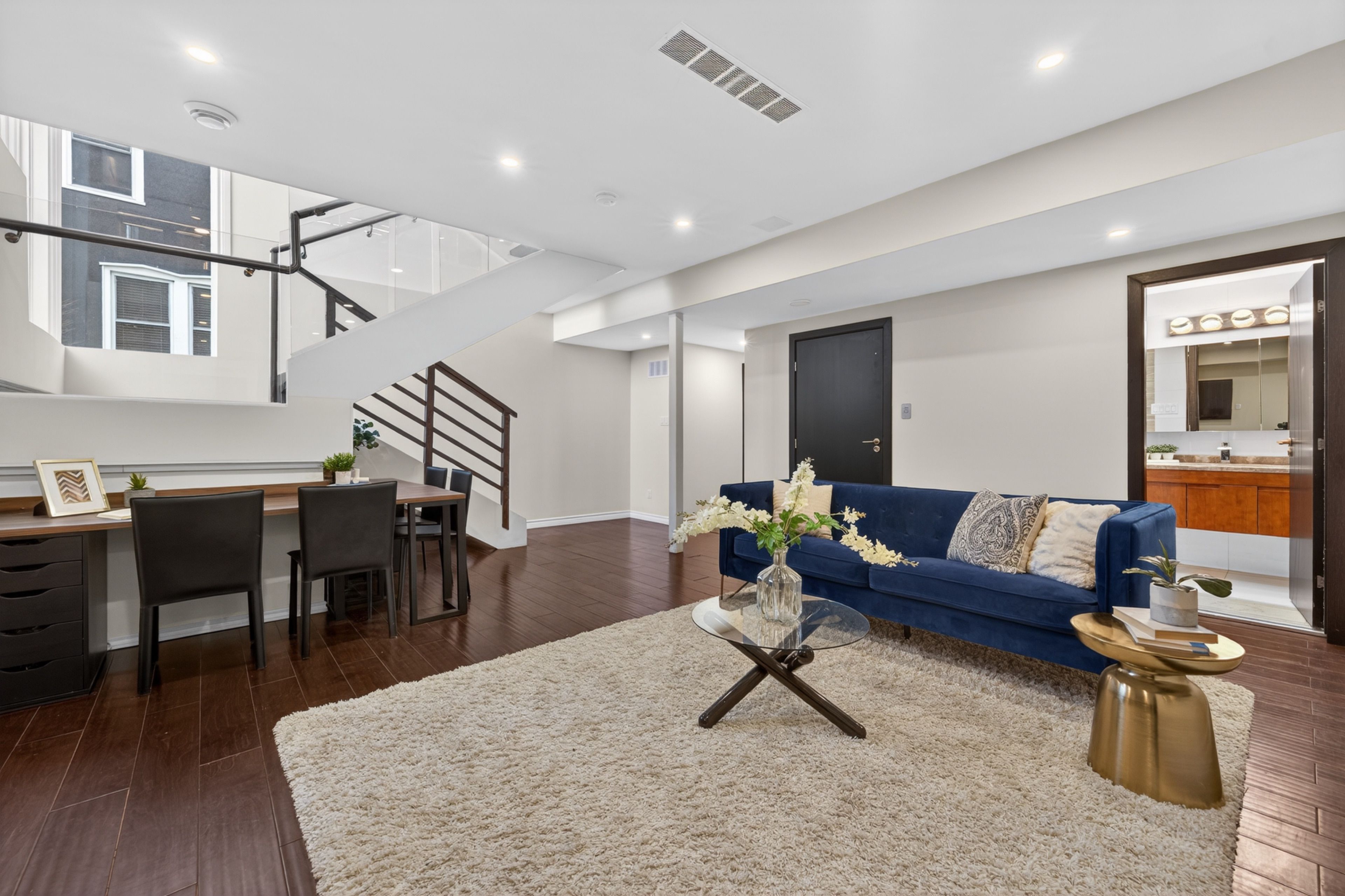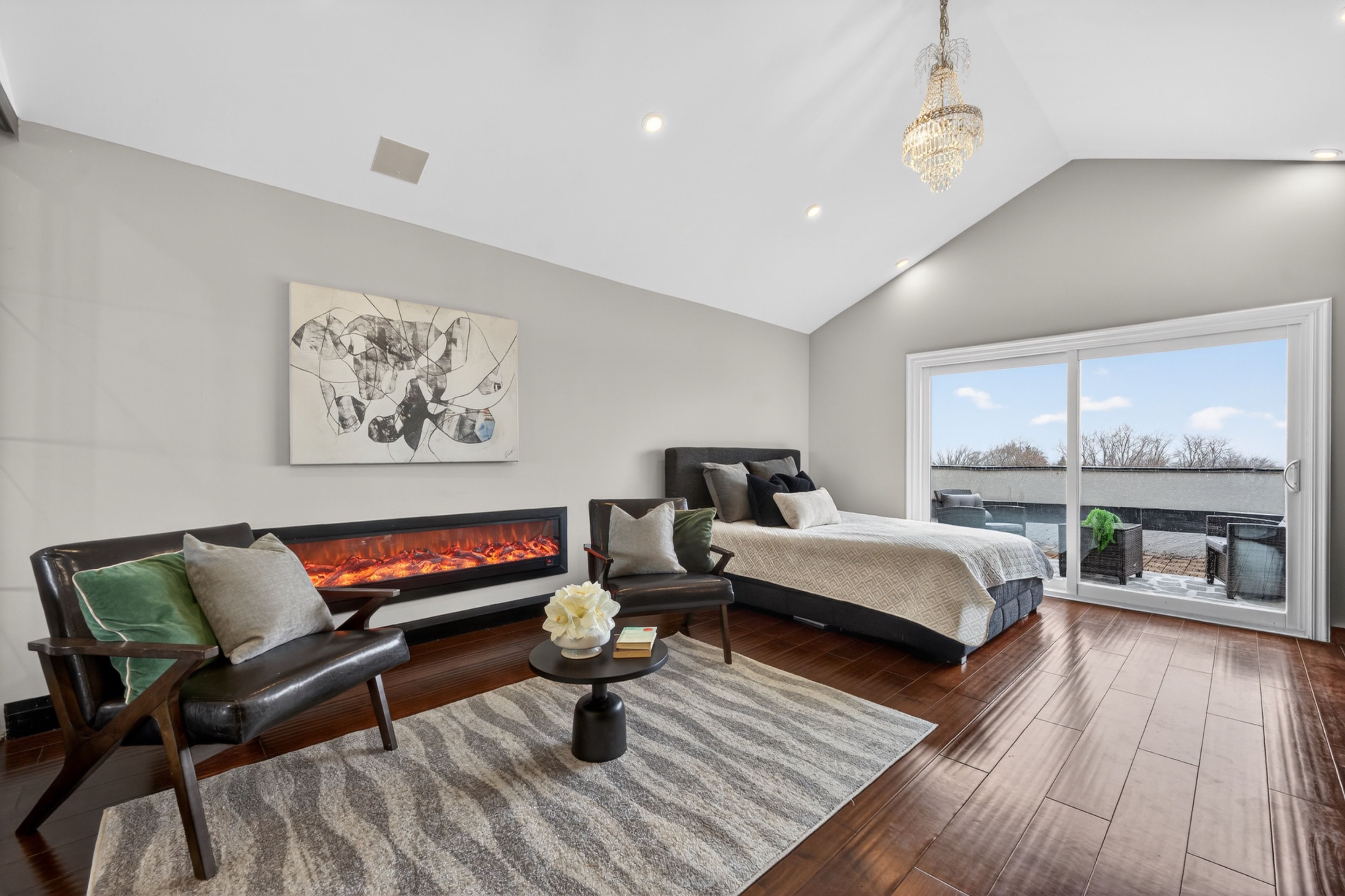 • Soaring ceilings and large glass walls allow for plenty of natural light.