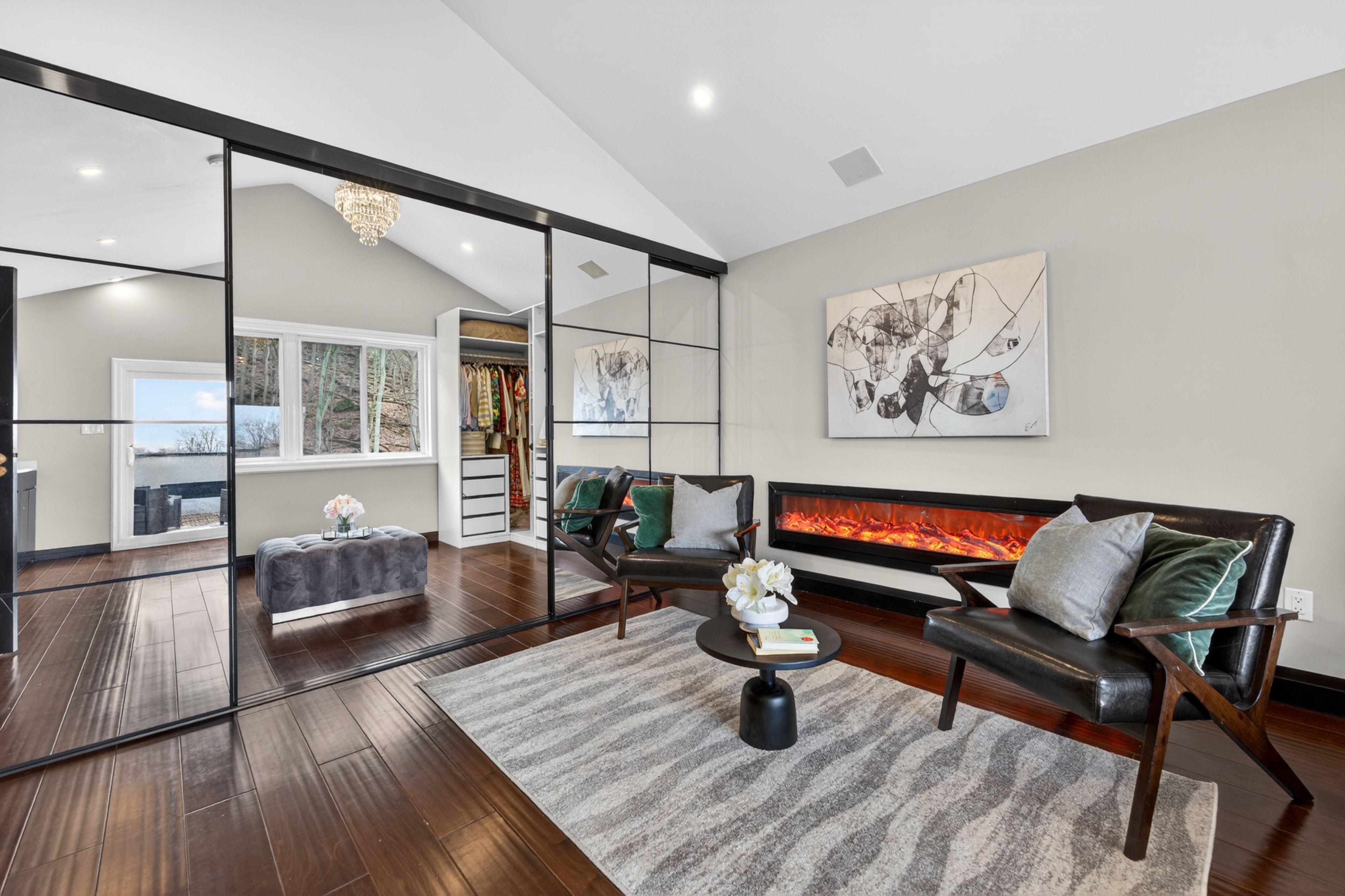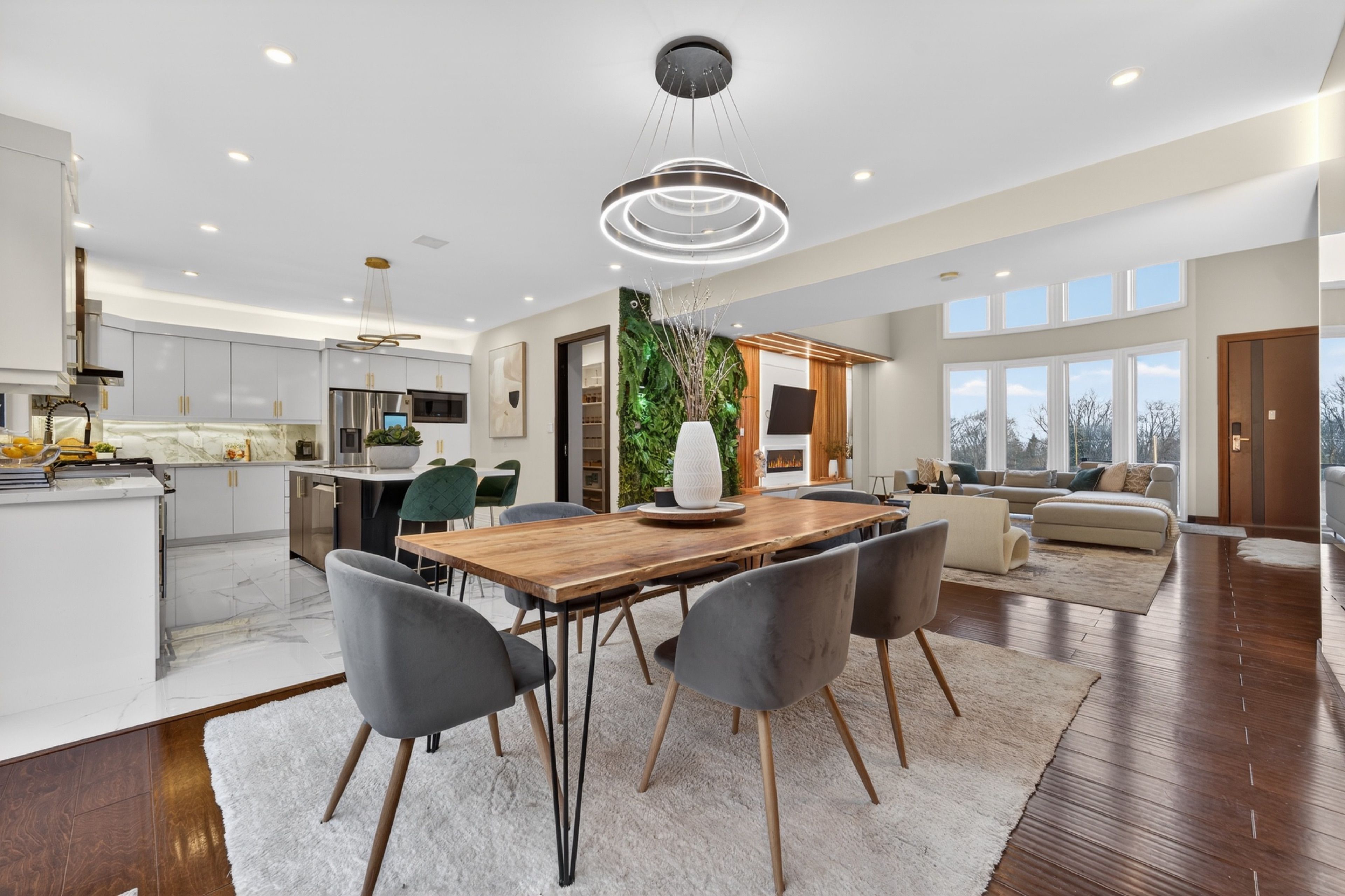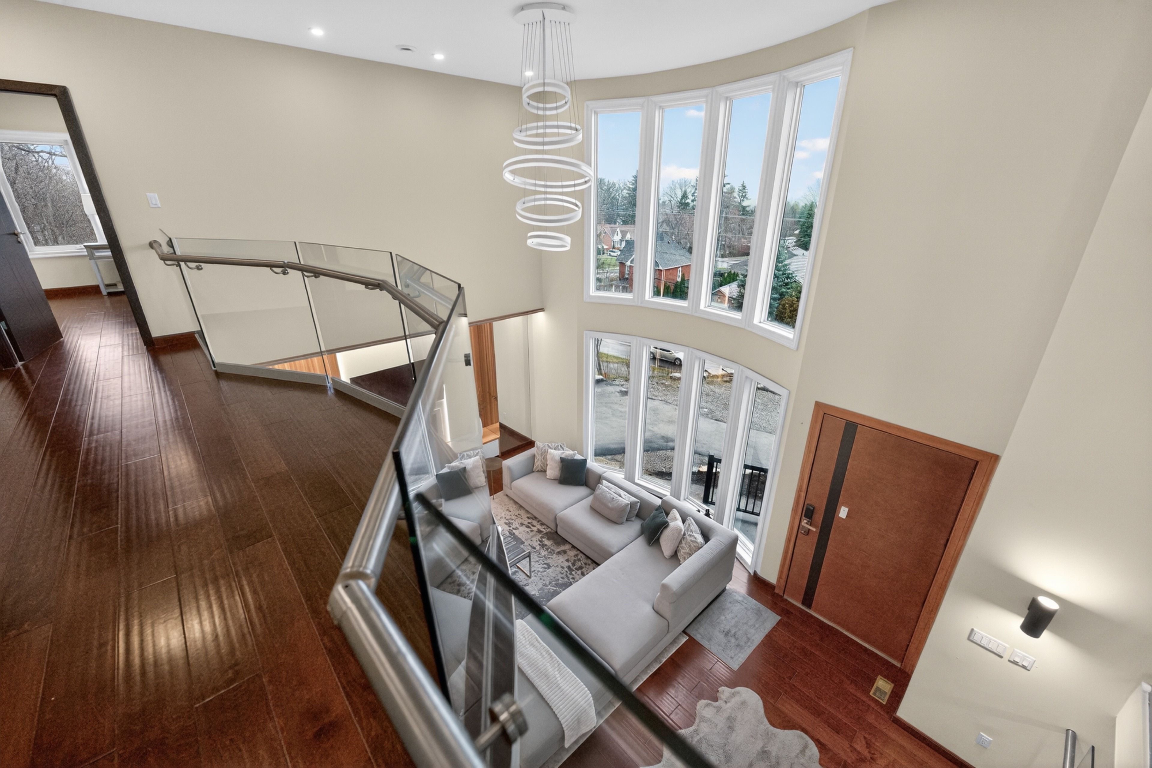 • Soaring ceilings and large windows fill the home with natural light.