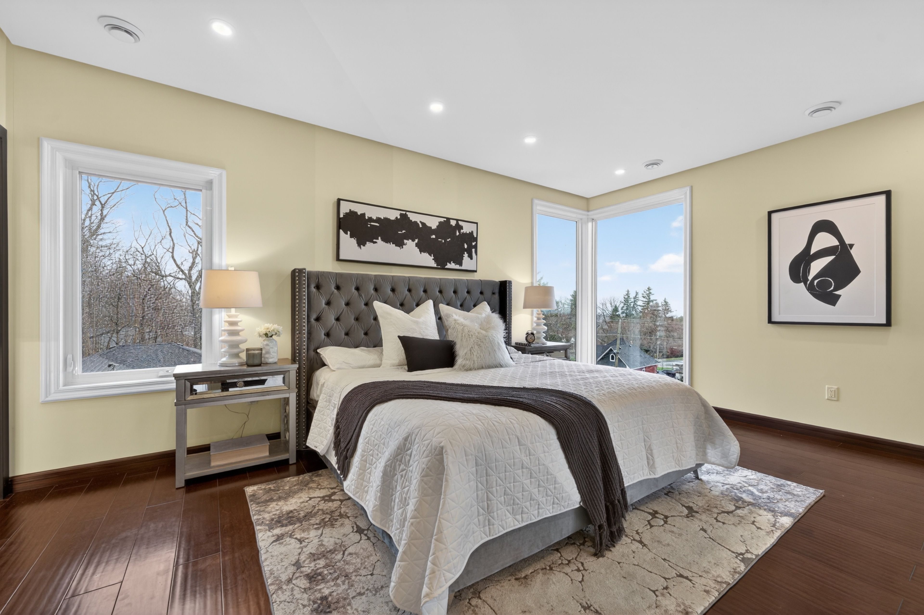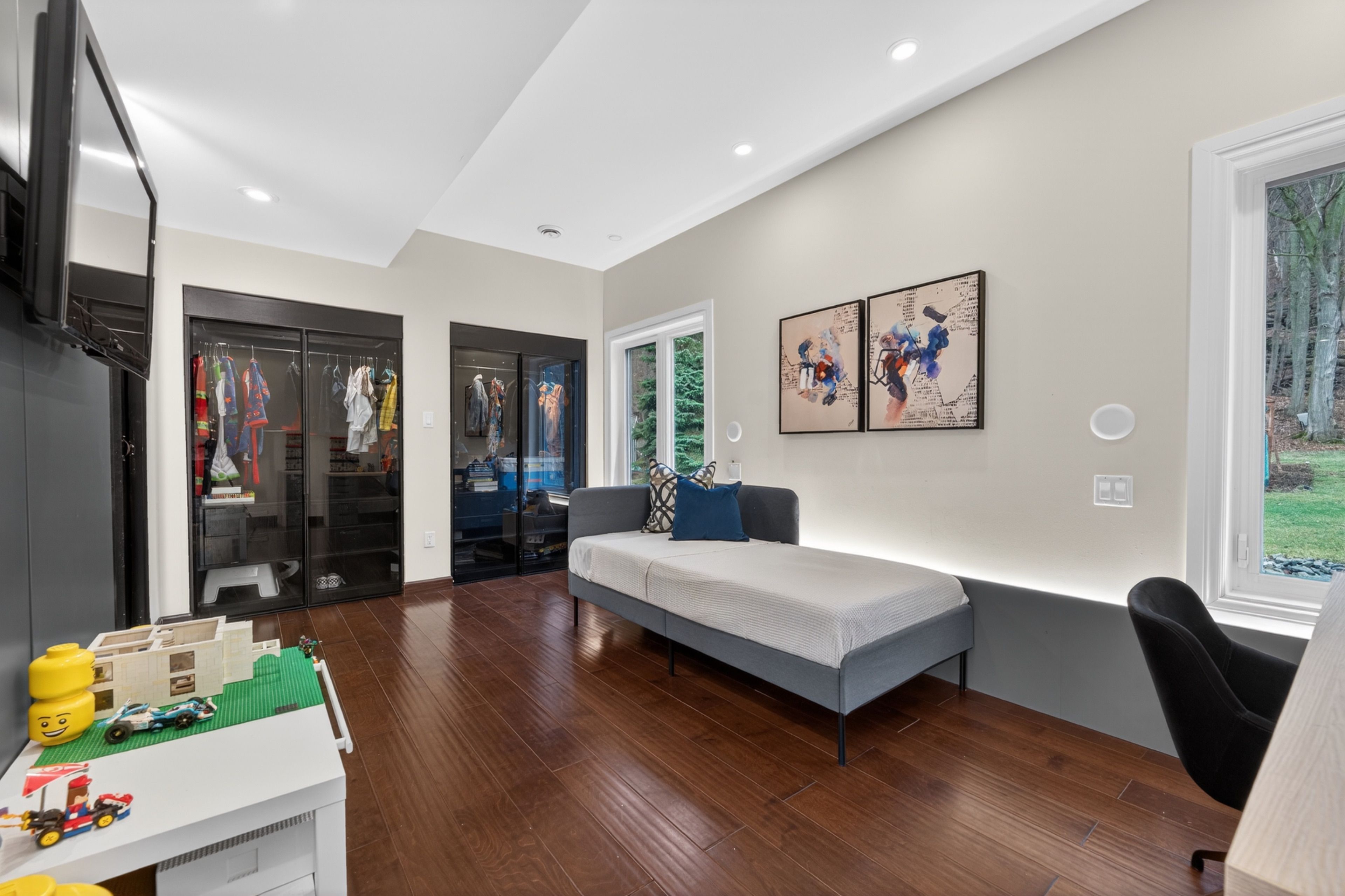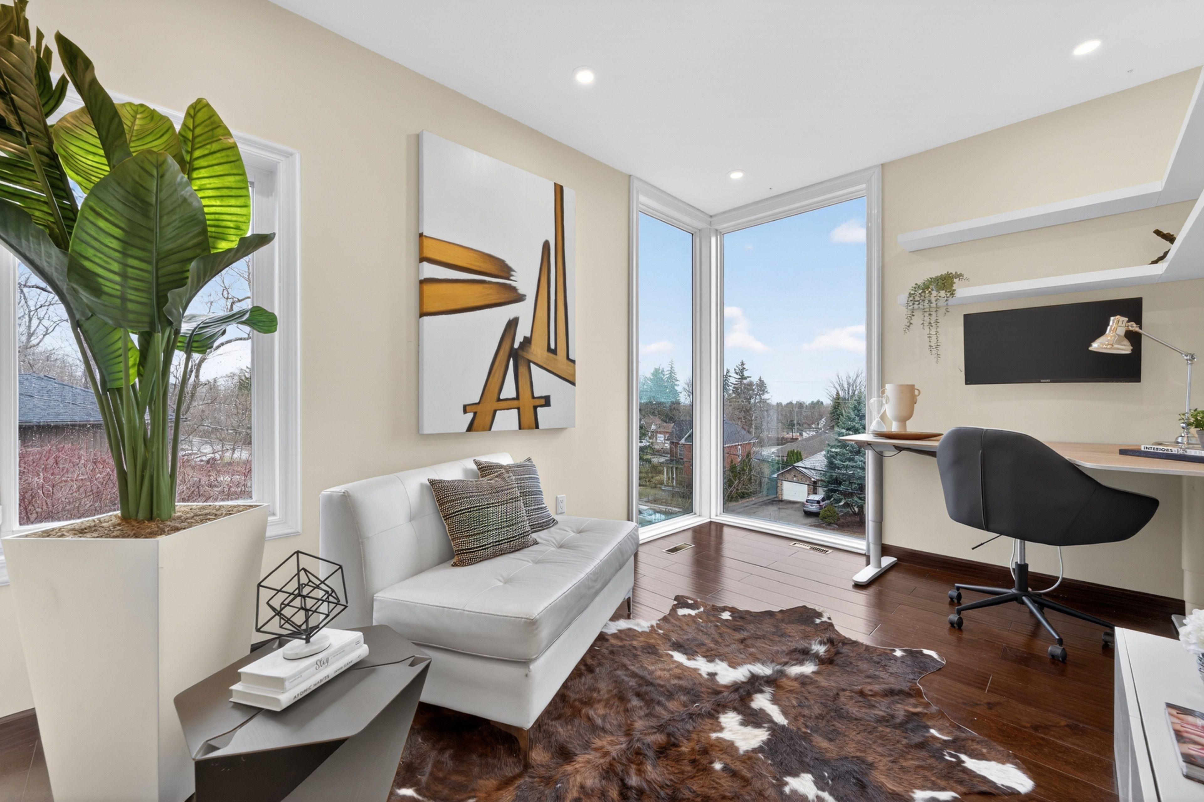 • Soaring ceilings and large windows fill the home with natural light.