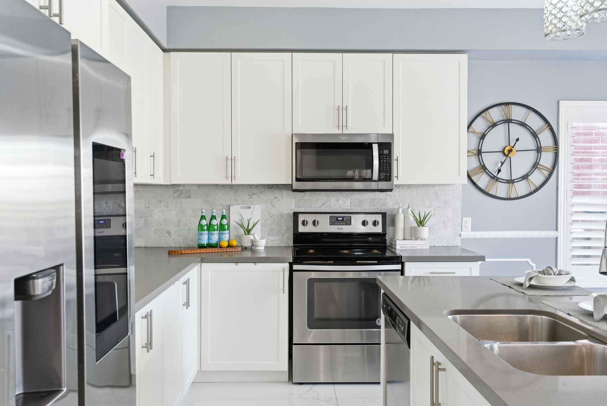 • Bright open-concept design and modern kitchen with quartz counters.