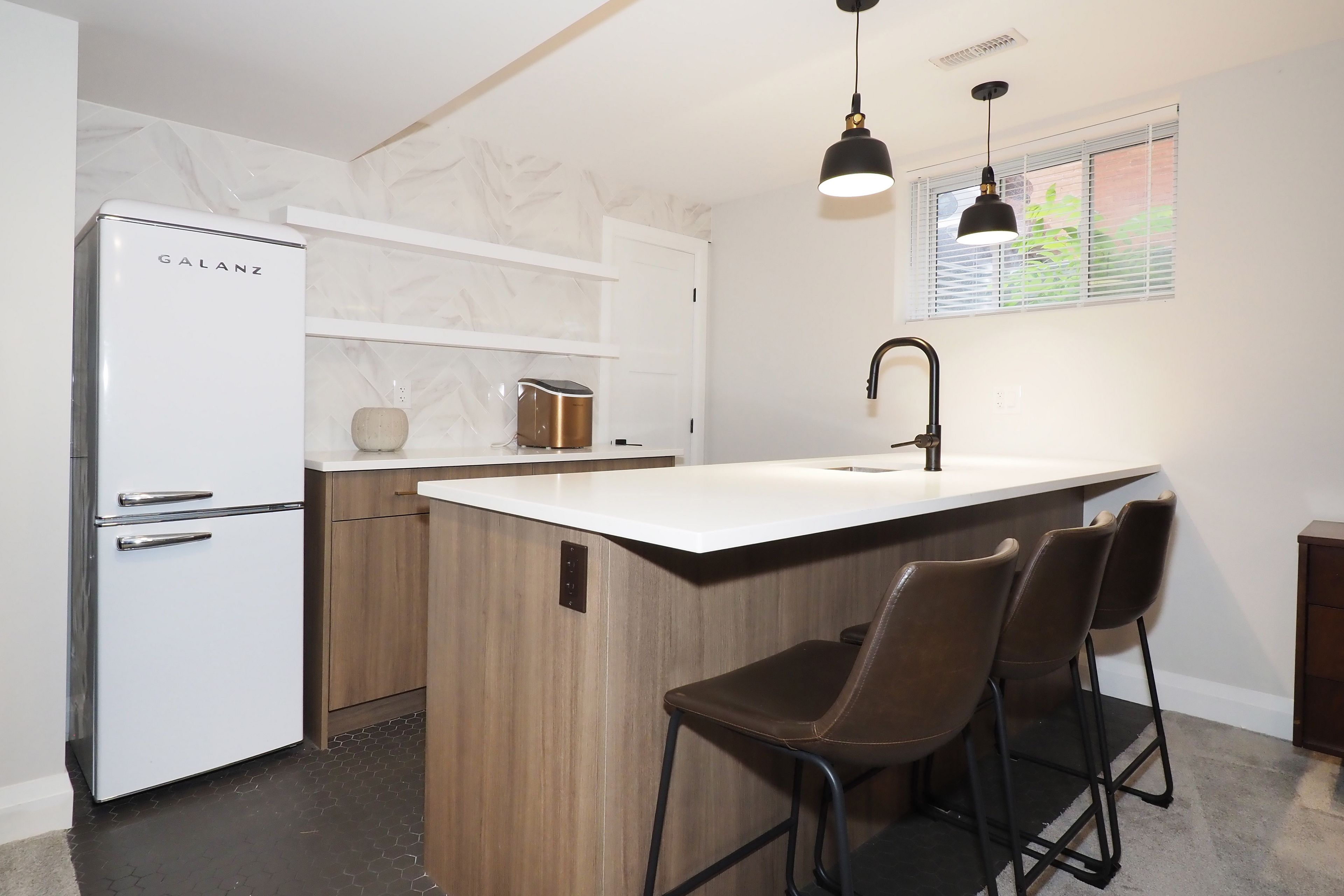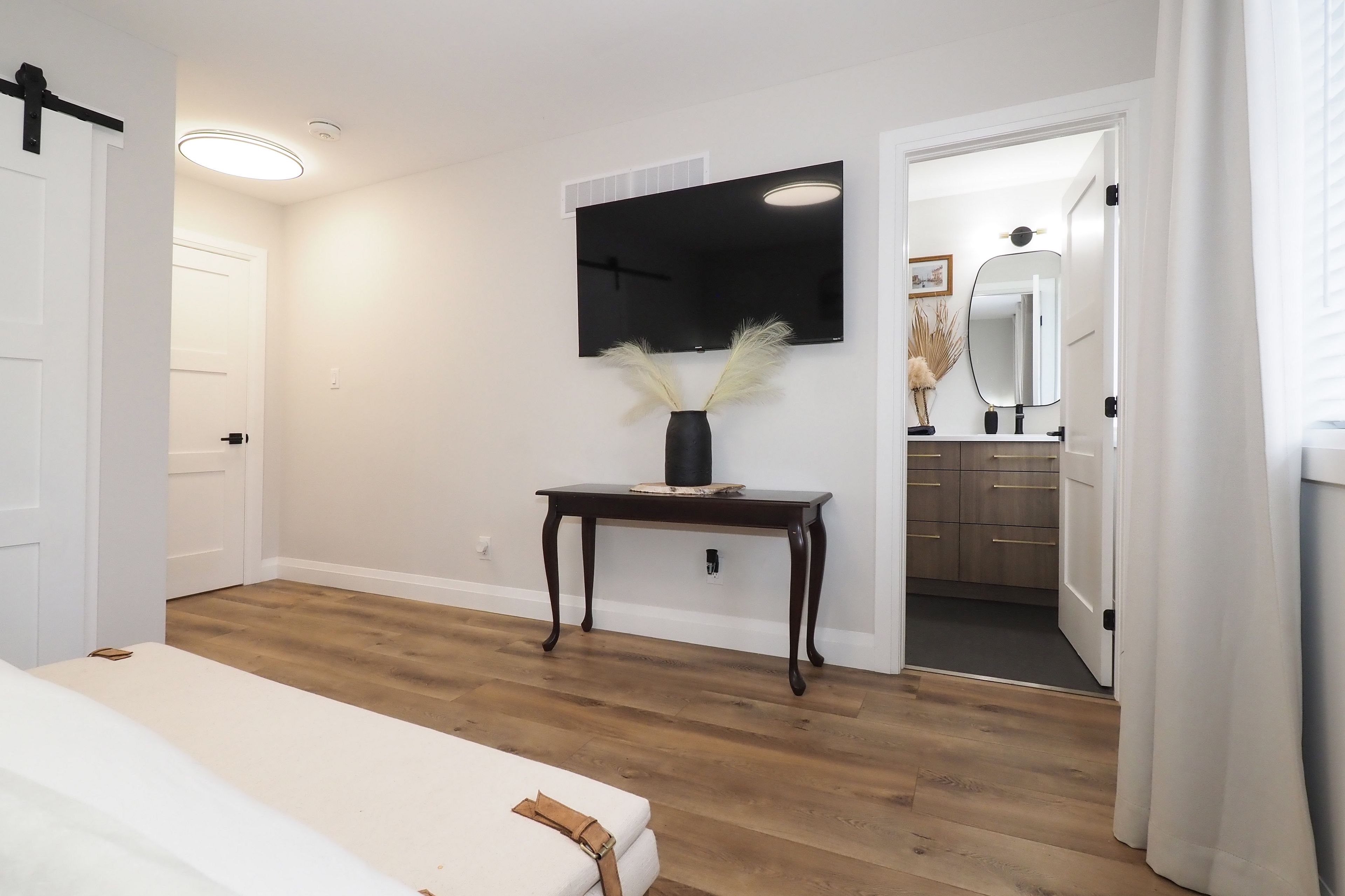 • Upper level includes three bedrooms and a luxurious primary suite with heated floors.