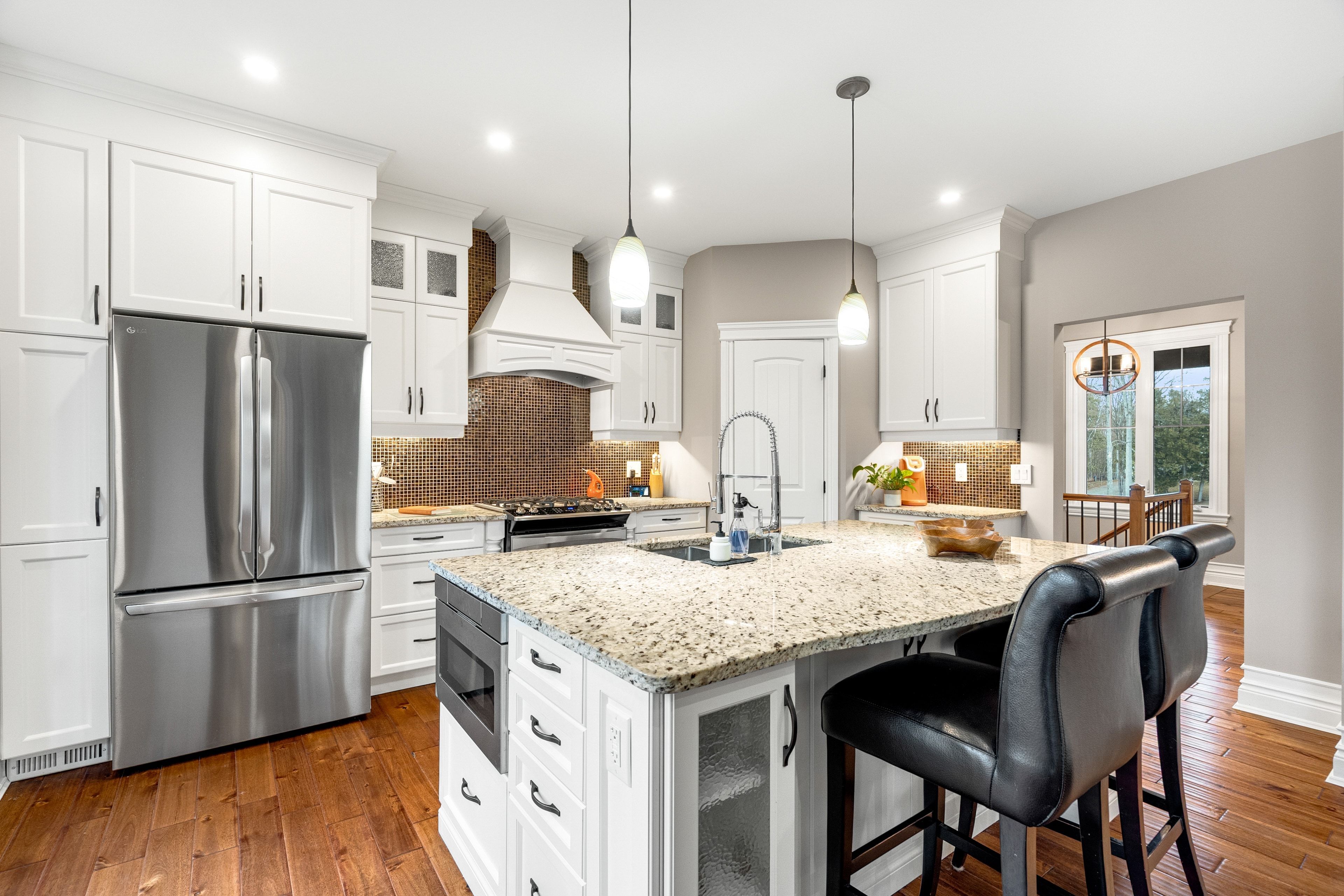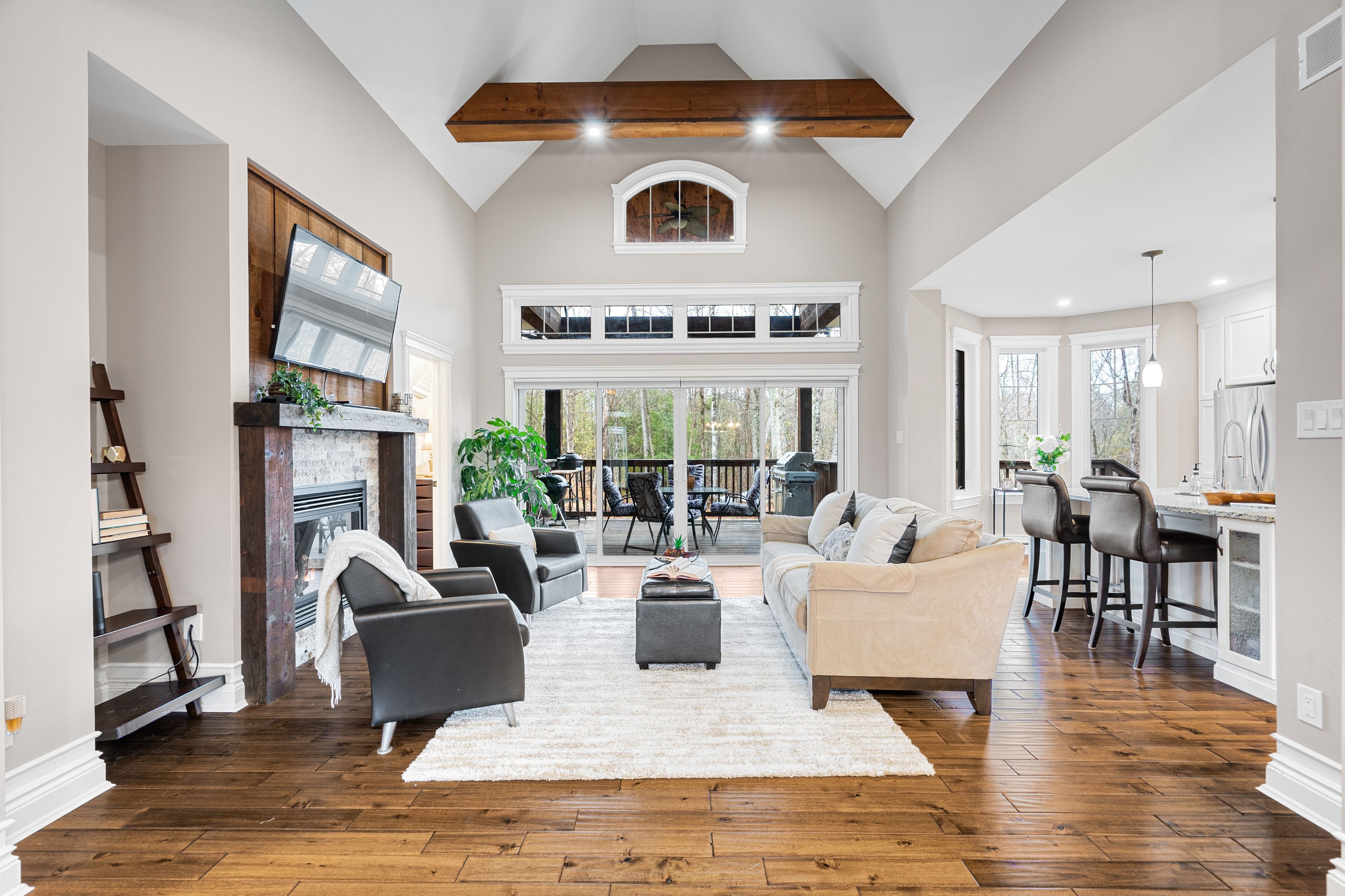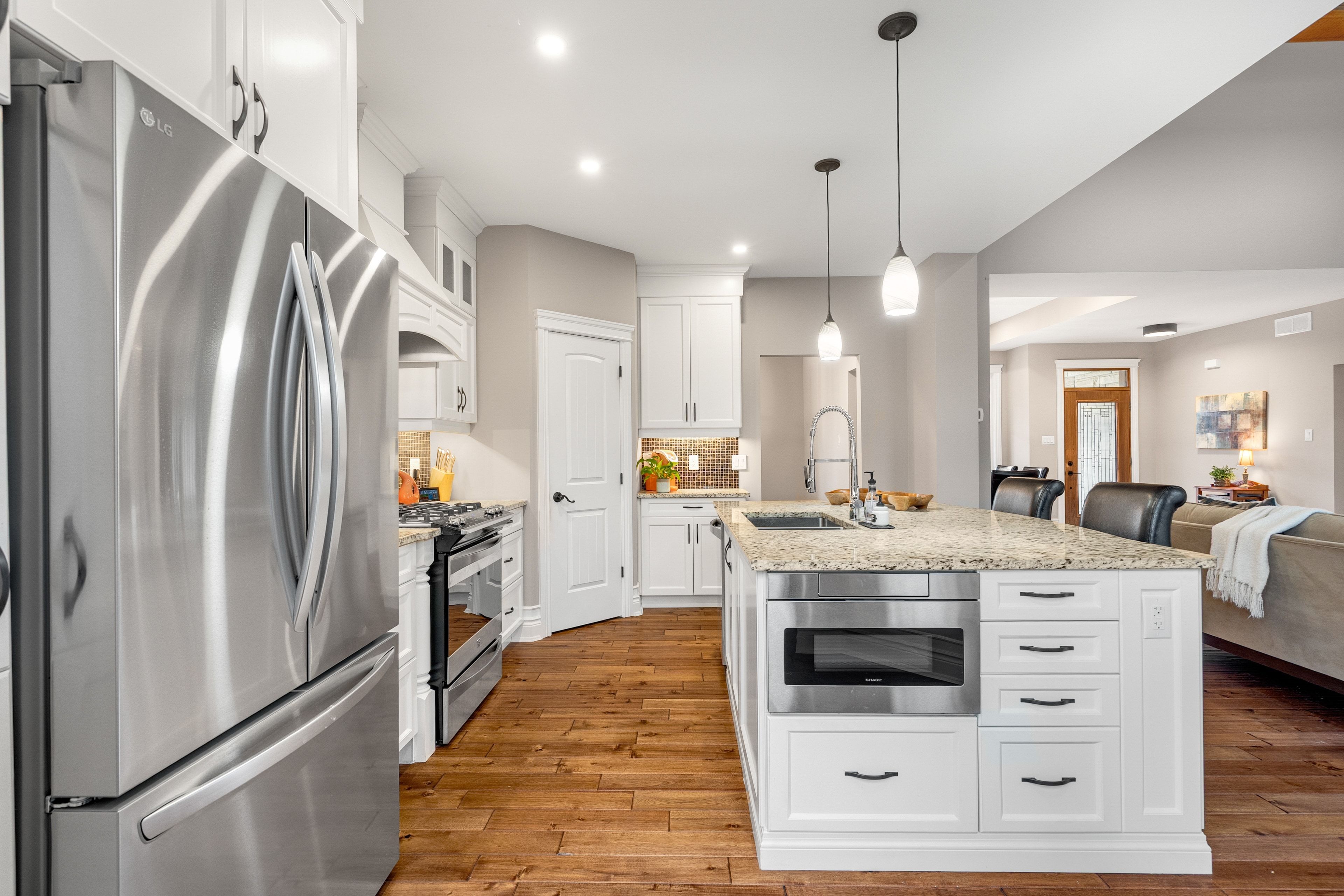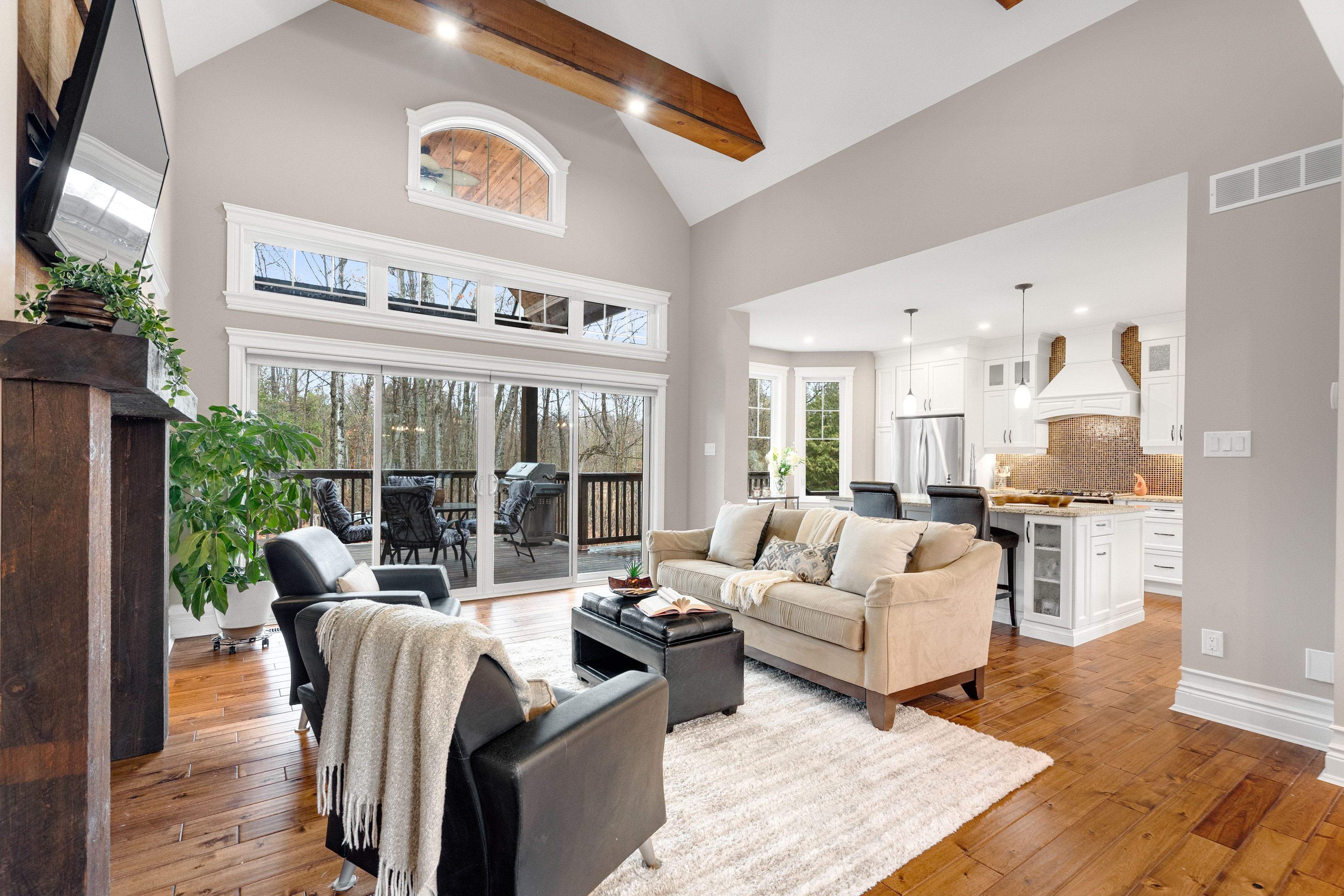 • Functional kitchen with large island, pantry, and seamless flow to outdoor deck.