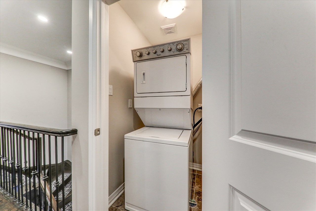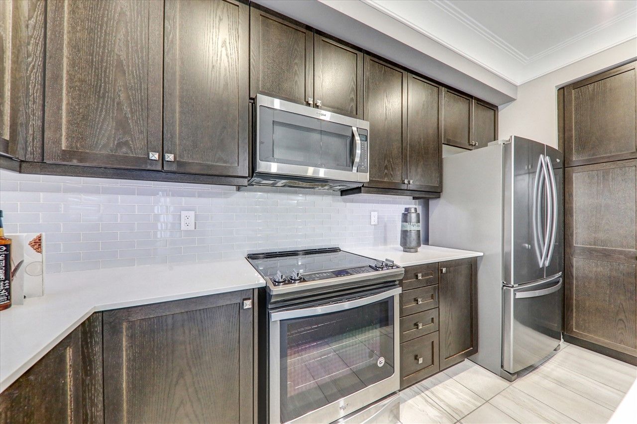 Great opportunity to own a 4 bedroom, 3. 5 bathrooms townhome on a premium lot with lots of upgrades: engineered hardwood floors on main and second floor, ss appliances, washer dryer, quartz kitchen counter top, upgraded deck, smooth ceiling, crown moulding, pot lights, frameless glass shower in master, central ac, central humidifier, glass backsplash, and more. Excellent location, close to school, parks, transit and grocery.