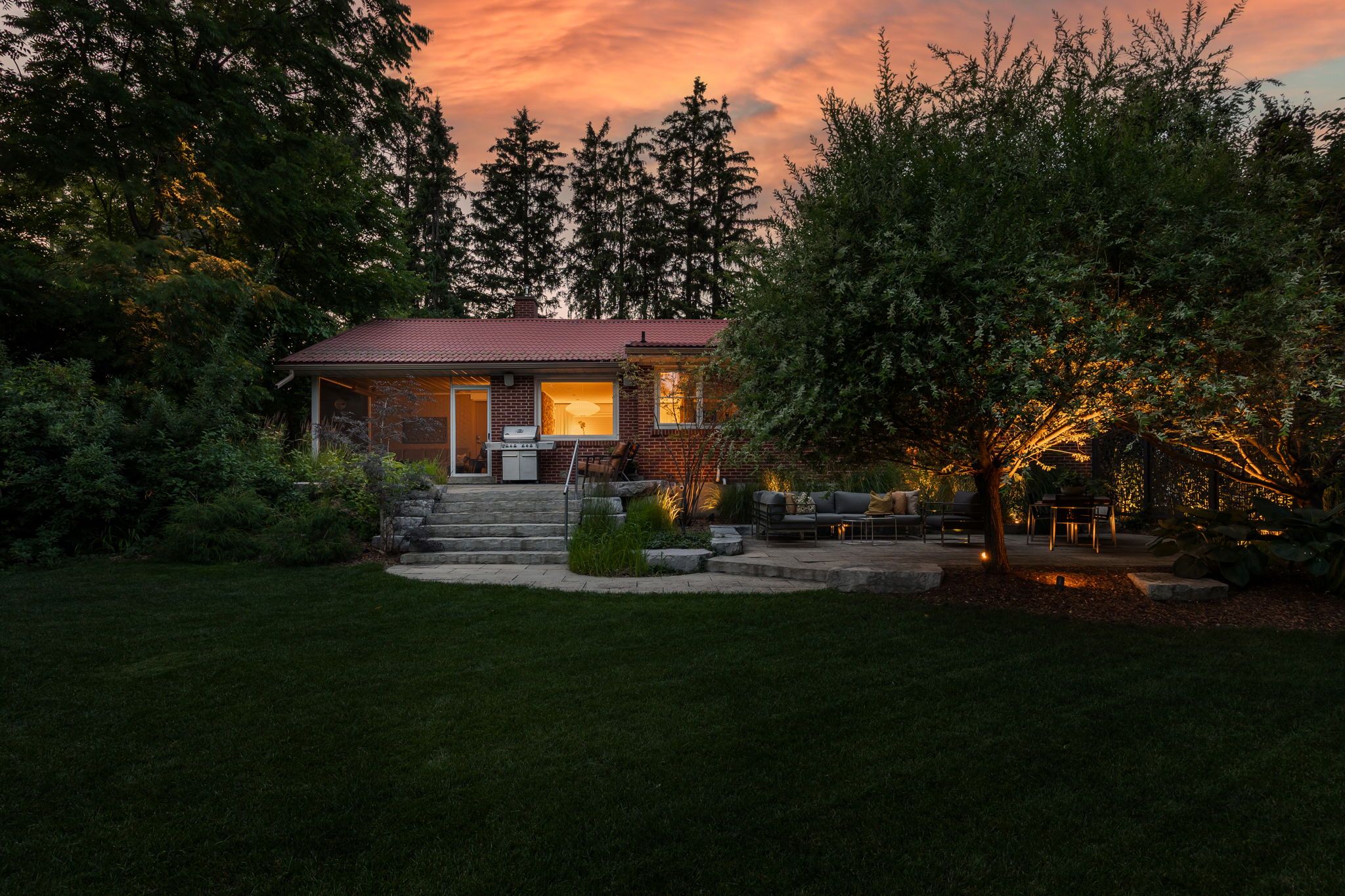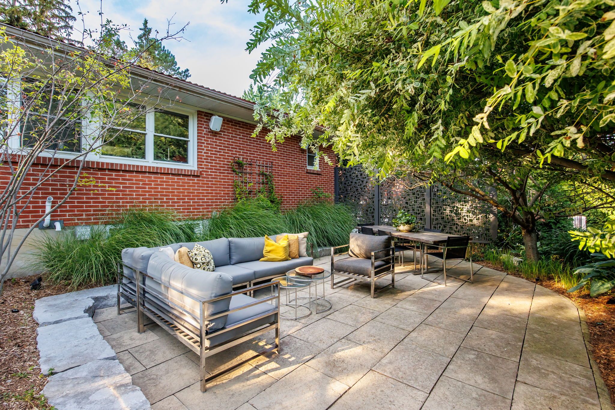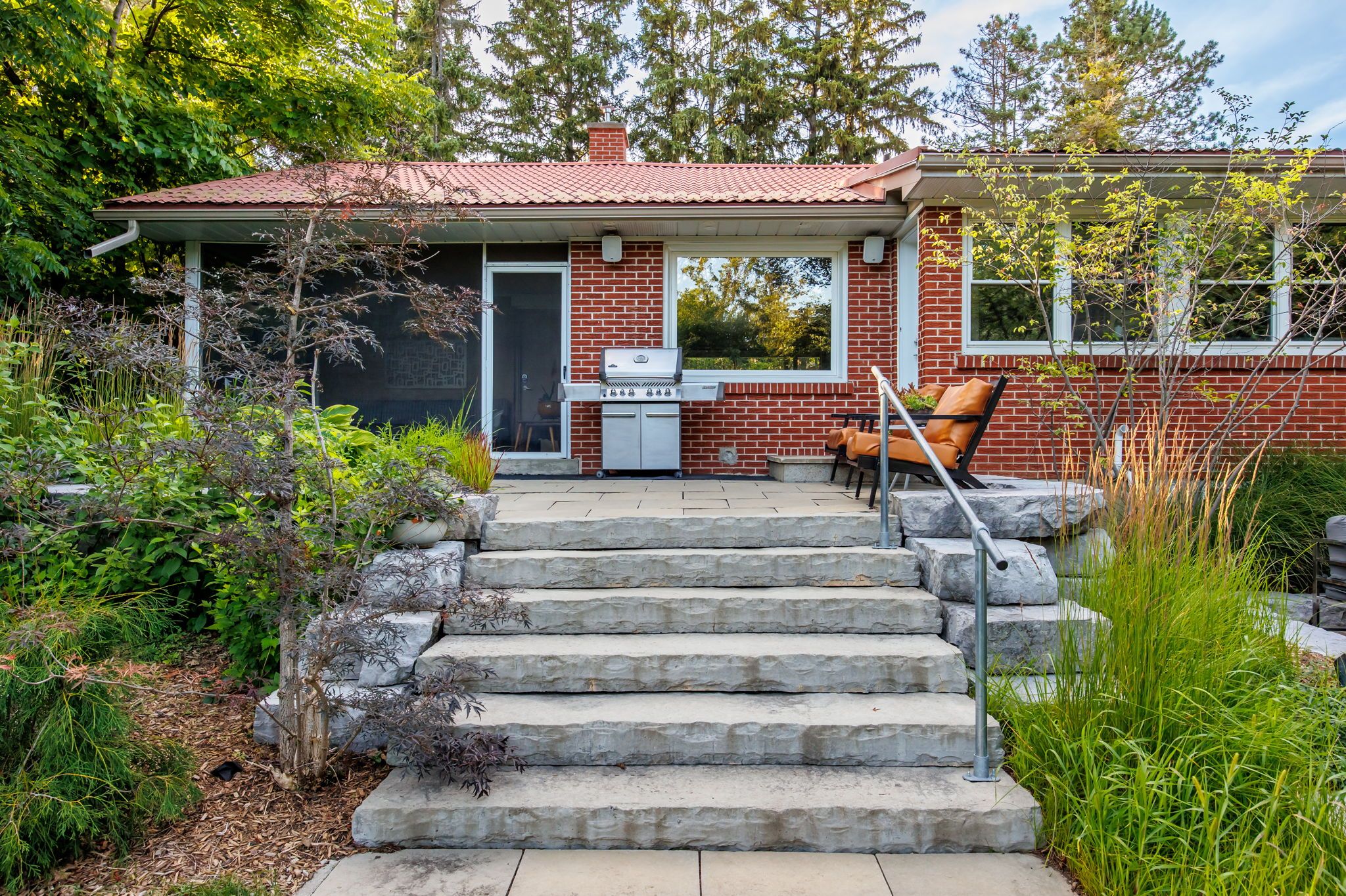 • Thoughtfully designed outdoor space with two stone patios and a screened sunroom.
