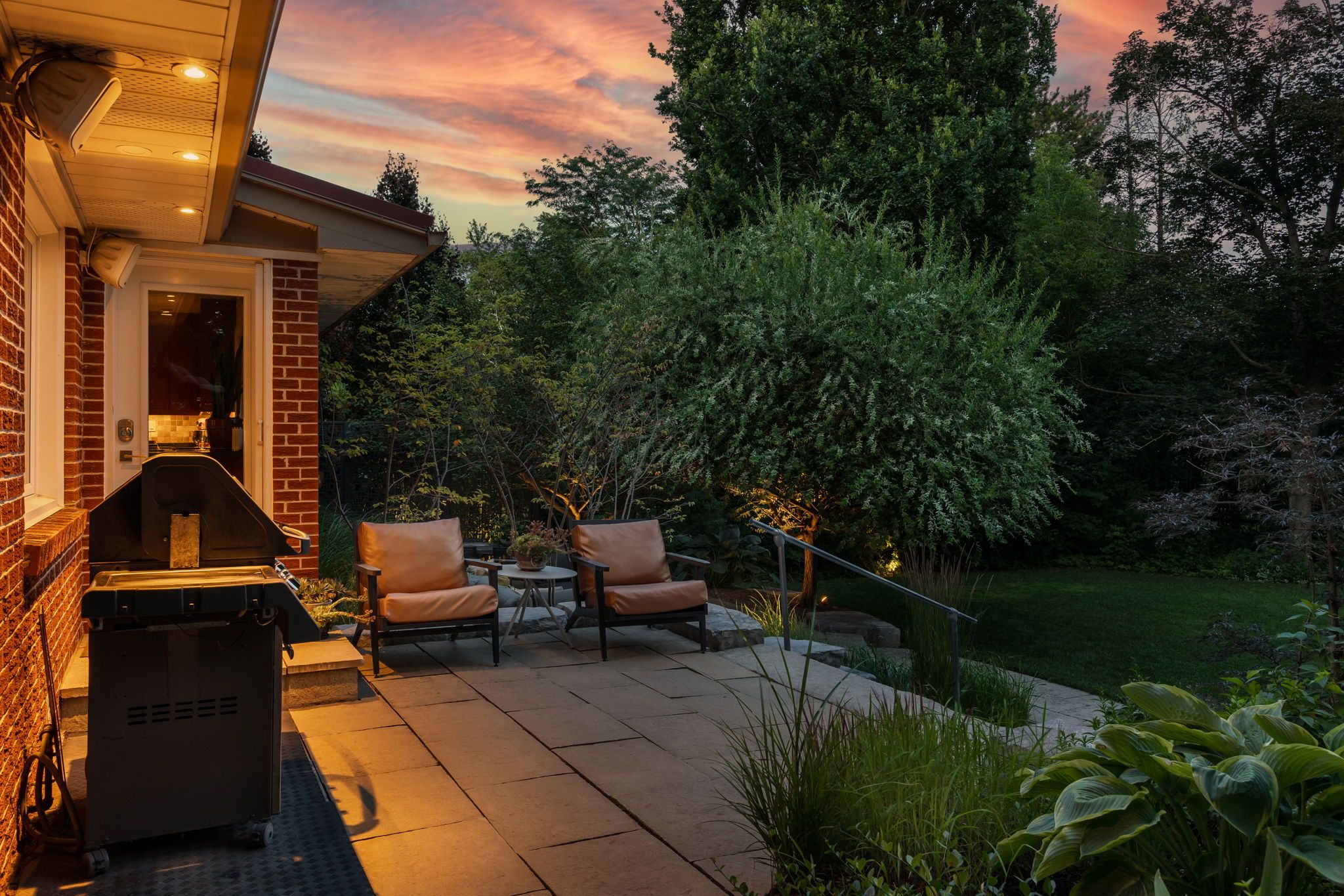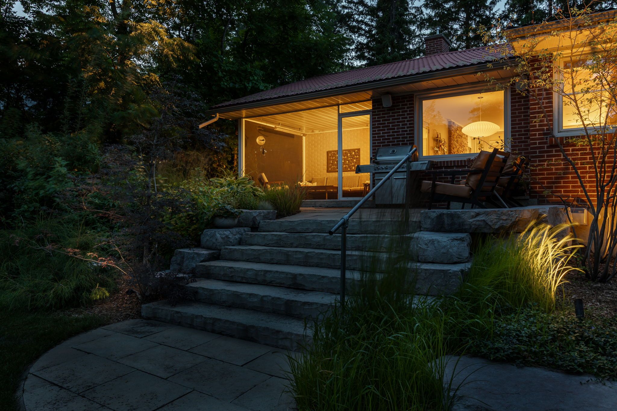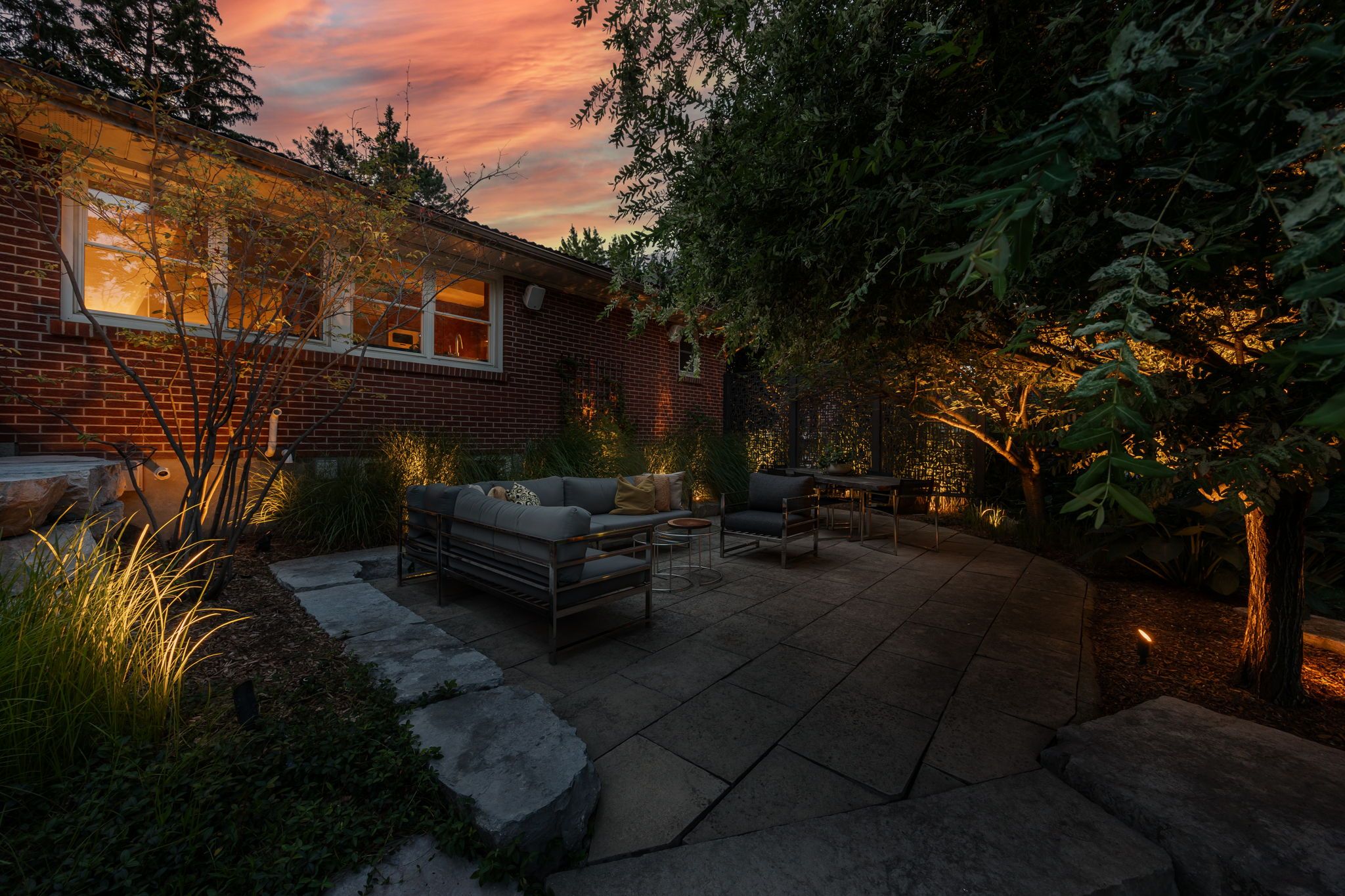 • Thoughtfully designed outdoor space with two stone patios and a screened sunroom.