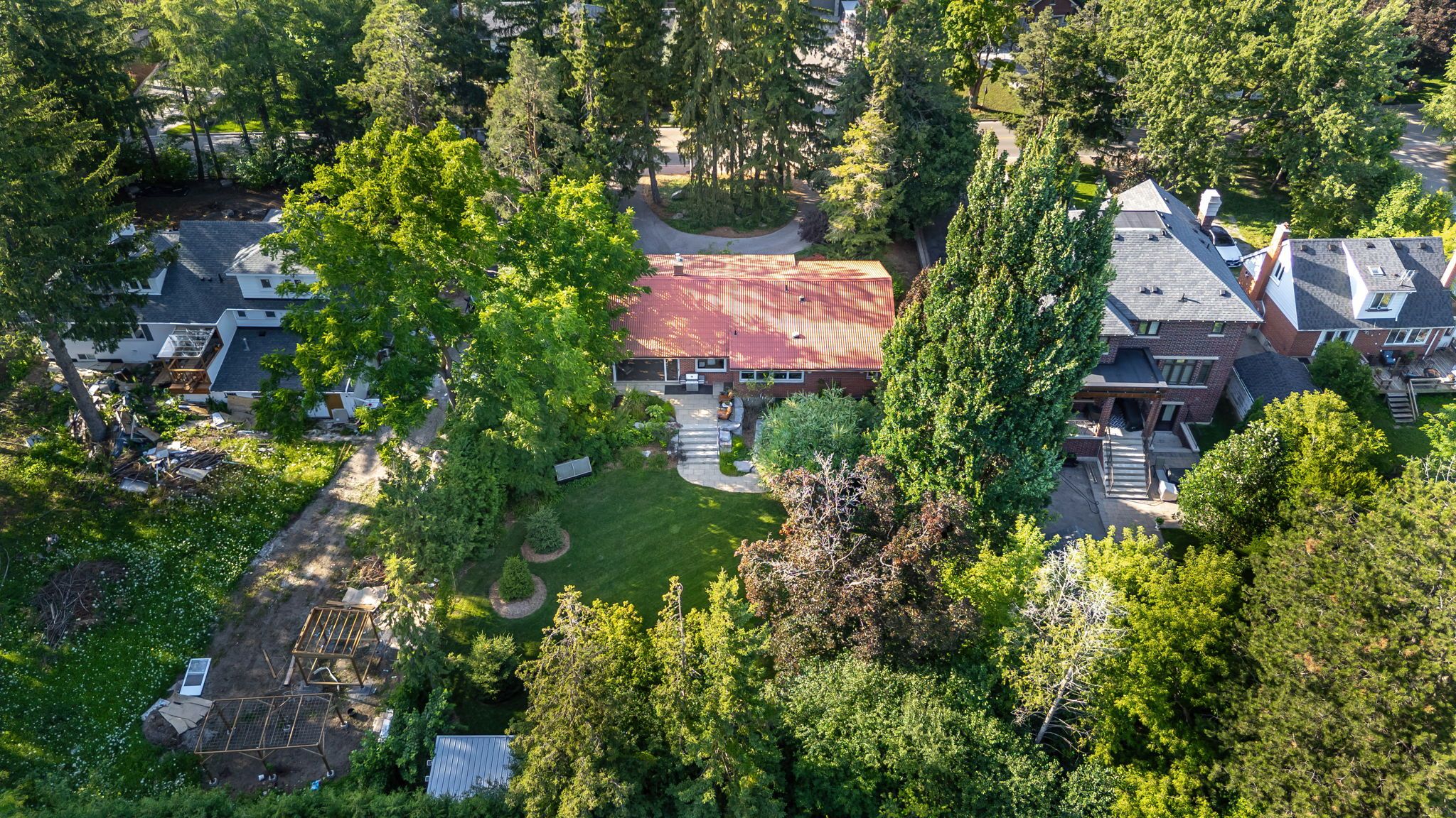 A rare opportunity in the highly sought-after mill pond community. This exquisite, fully renovated mid-century modern bungalow is situated on one of the largest lots in the area, just steps from the prestigious mill pond. The expansive south-facing backyard is surrounded by mature trees, creating a private oasis with a muskoka-like setting in the city. One of the few homes in the neighbourhood featuring a circular driveway, this charming and unique property offers both character and convenience. The home has been completely renovated with quality craftsmanship and meticulous attention to detail. Mature trees at the front provide additional privacy and enhance the exceptional curb appeal. The outdoor space is thoughtfully designed with two stone patios, and a fully screened sunroom creating an inviting outdoor space. The property also has two custom-built sheds on concrete pads (front and back). Located within the boundaries of top-rated schools, including alexander mackenzie secondary school (renowned for its ib and arts programs) and st. Therese of lisieux catholic high school, ranked #1 in the province based on the 2025 fraser institute ranking. Walking distance to richmond hill centre for the performing arts, mackenzie health hospital, and richmond hill central library. Convenient access to highways 400, 404, 407 and highway 7, as well as public transit via yrt and go train service at richmond hill and maple stations. **please see attachments for a full, comprehensive list of features.