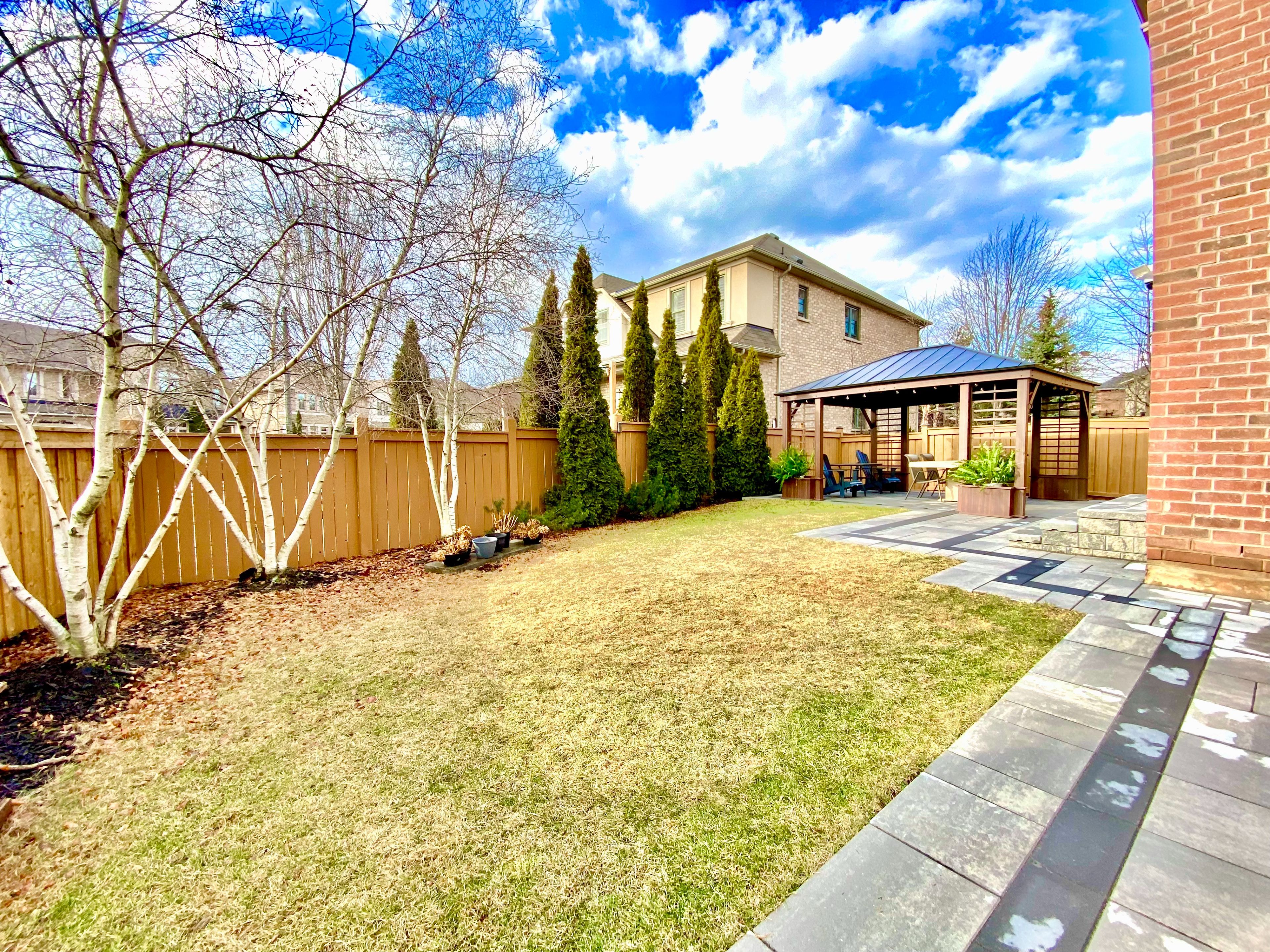 • Large outdoor space with trees, gazebo, and room for more features.