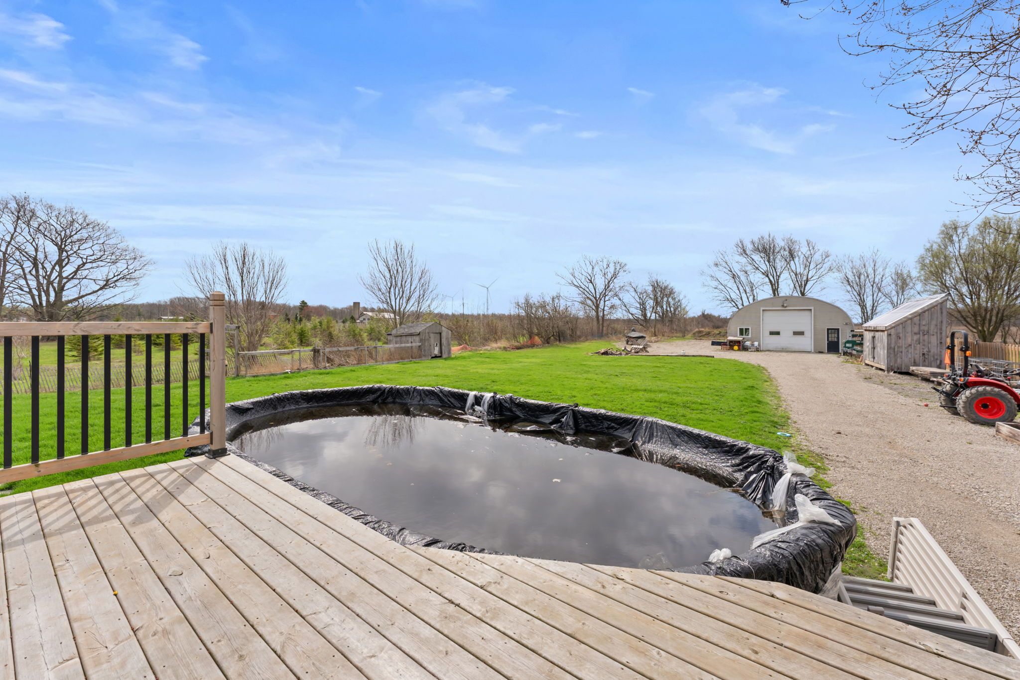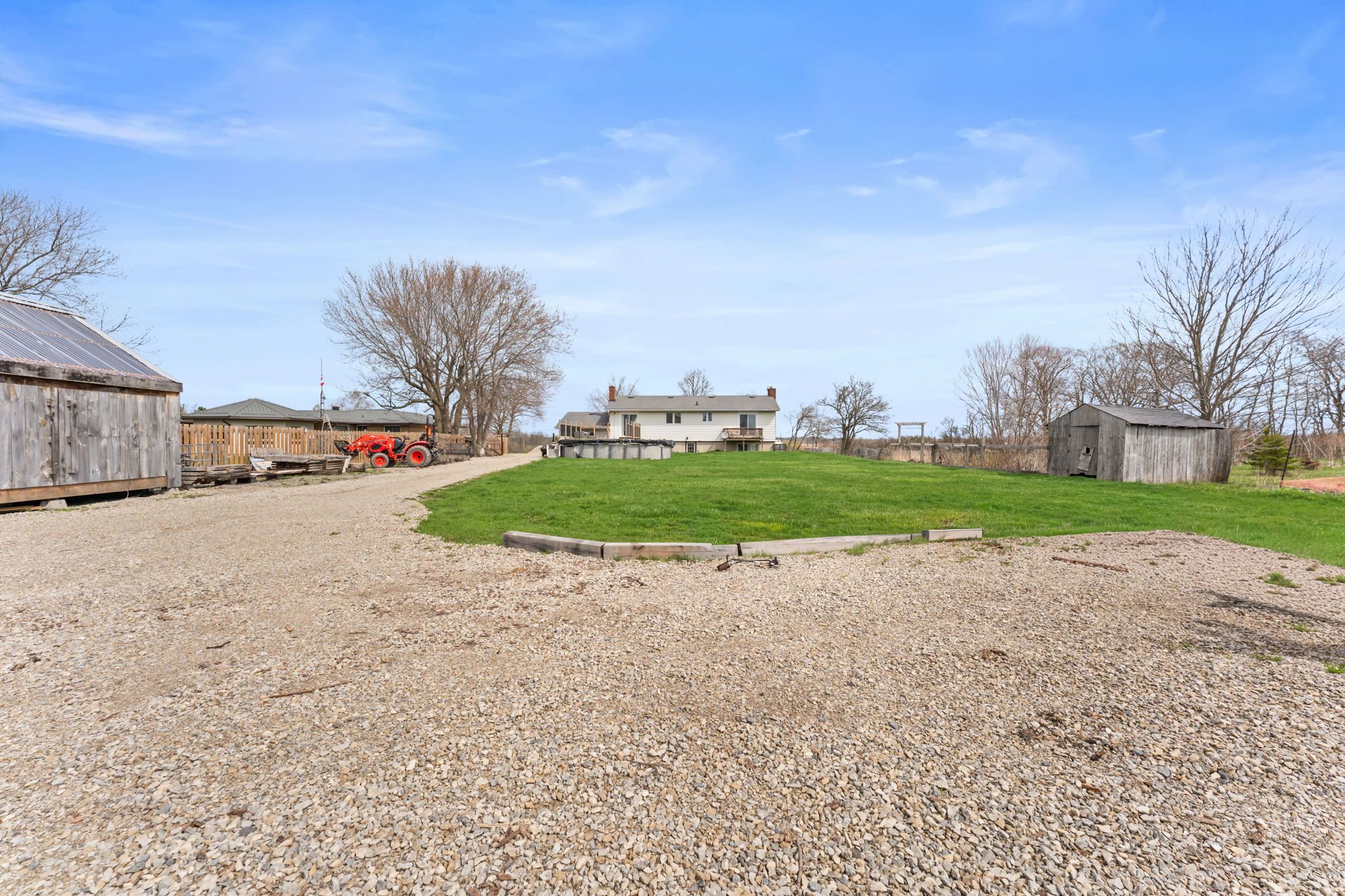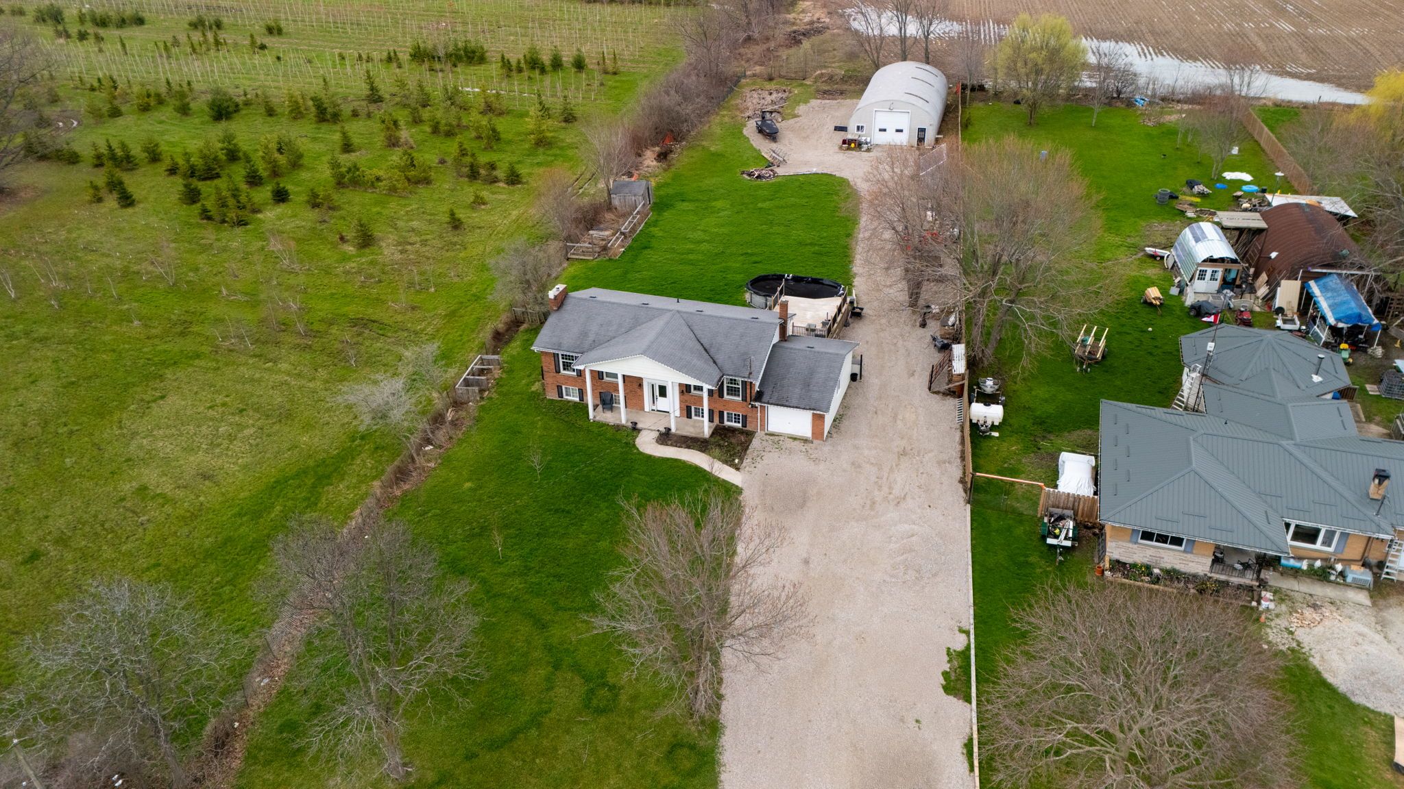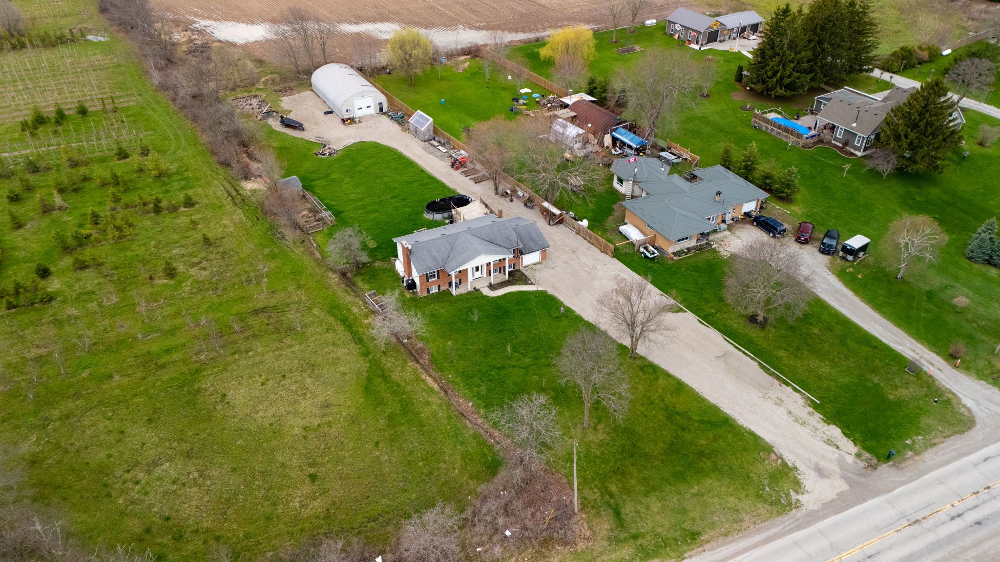 Escape to your own private retreat set on approximately 1 acre beside a peaceful tree farm, with glimpses of the grand river and wide-open country views. Enjoy the tranquility of rural living while being just minutes from the charming town of dunnville, known for its local shops, restaurants, and easy access to fishing along the grand. The home features a bright open-concept main level with sliding doors leading to a spacious deck and a heated saltwater above ground pool-perfect for entertaining or relaxing. With 3+2 bedrooms, 2 kitchens, 2 bathrooms, and 2 laundry areas, there's plenty of space for a growing or multi-generational family. The primary bedroom includes a private balcony to take in the surrounding views. The fully finished lower level offers a separate walk-up entrance and functions as a complete in-law suite, featuring a modern kitchen, full bathroom, and its own laundry room. Recent updates include a new furnace and a/c (2021) and fencing (2020). A standout feature is the impressive 30' x 60' detached garage/workshop-fully insulated, equipped with hydro, heating, a/c, 220-volt service, and roughed-in for water-ideal for hobbyists, contractors, or extra storage.