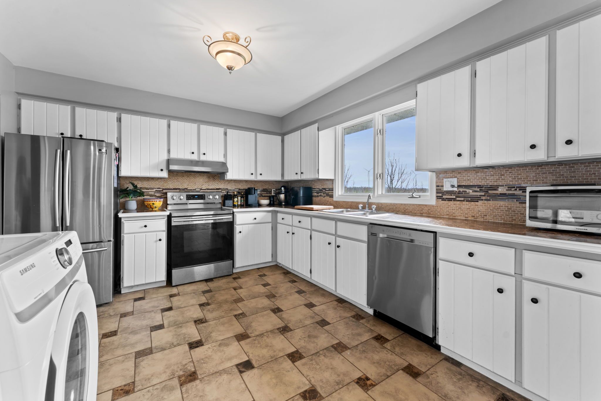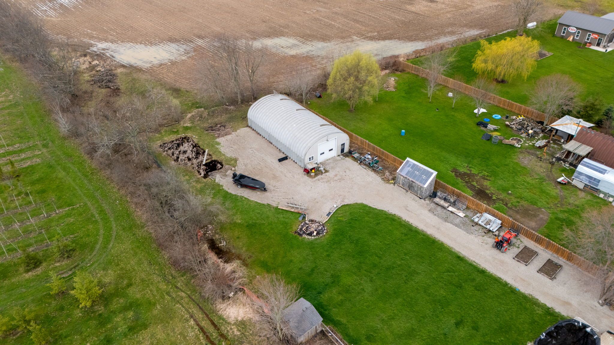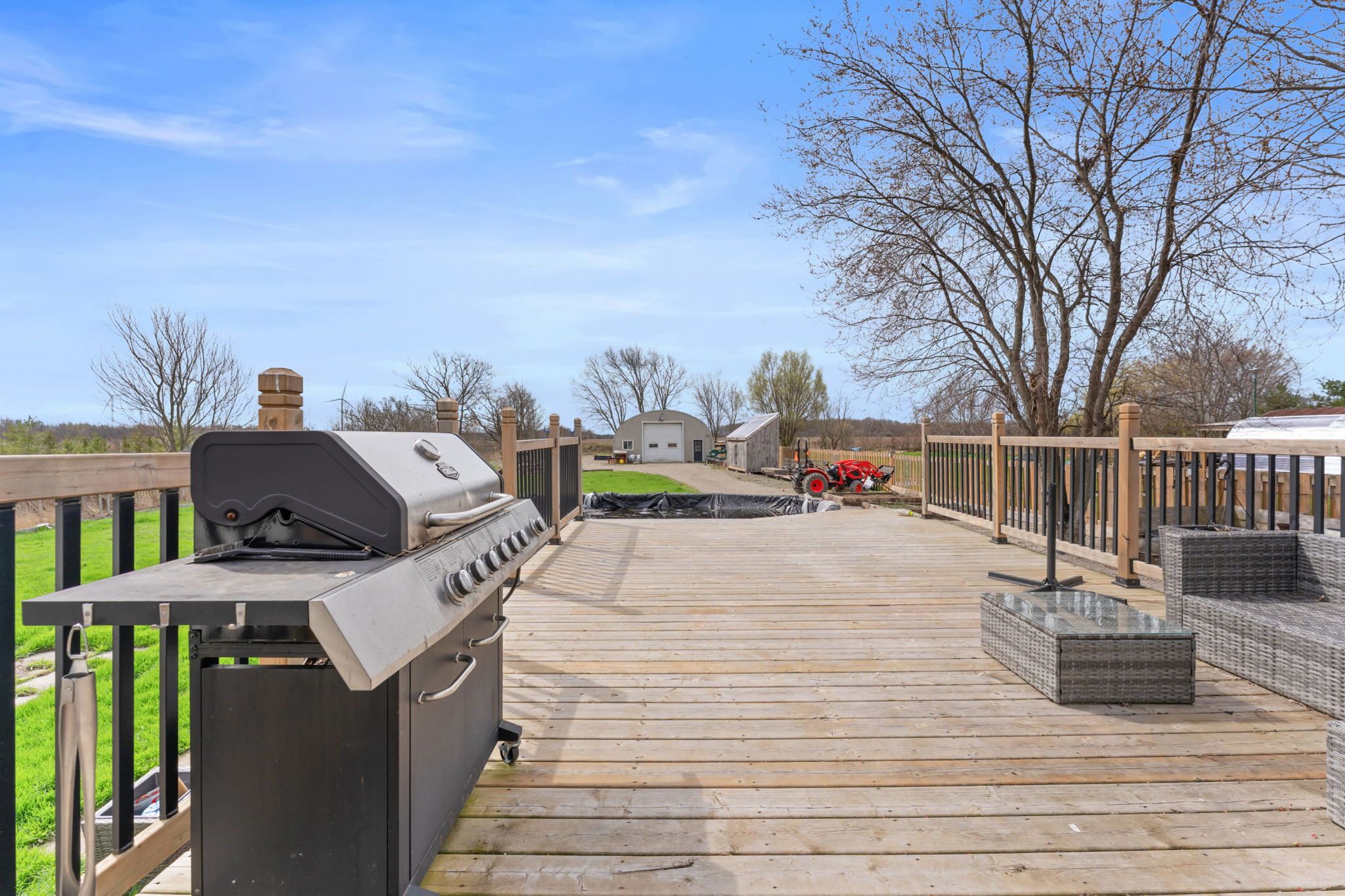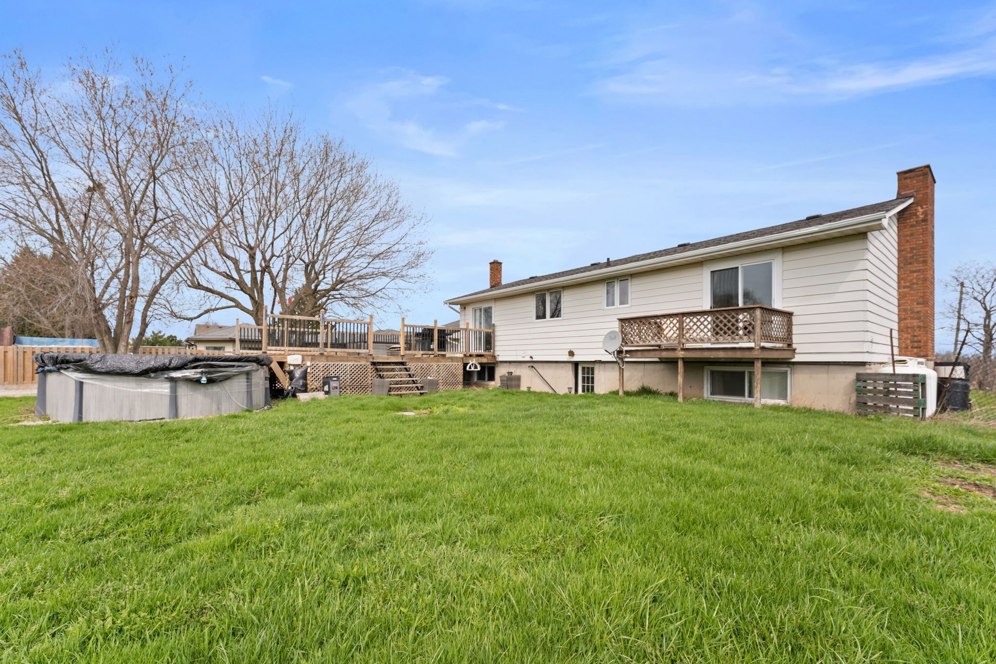 Escape to your own private retreat set on approximately 1 acre beside a peaceful tree farm, with glimpses of the grand river and wide-open country views. Enjoy the tranquility of rural living while being just minutes from the charming town of dunnville, known for its local shops, restaurants, and easy access to fishing along the grand. The home features a bright open-concept main level with sliding doors leading to a spacious deck and a heated saltwater above ground pool-perfect for entertaining or relaxing. With 3+2 bedrooms, 2 kitchens, 2 bathrooms, and 2 laundry areas, there's plenty of space for a growing or multi-generational family. The primary bedroom includes a private balcony to take in the surrounding views. The fully finished lower level offers a separate walk-up entrance and functions as a complete in-law suite, featuring a modern kitchen, full bathroom, and its own laundry room. Recent updates include a new furnace and a/c (2021) and fencing (2020). A standout feature is the impressive 30' x 60' detached garage/workshop-fully insulated, equipped with hydro, heating, a/c, 220-volt service, and roughed-in for water-ideal for hobbyists, contractors, or extra storage.