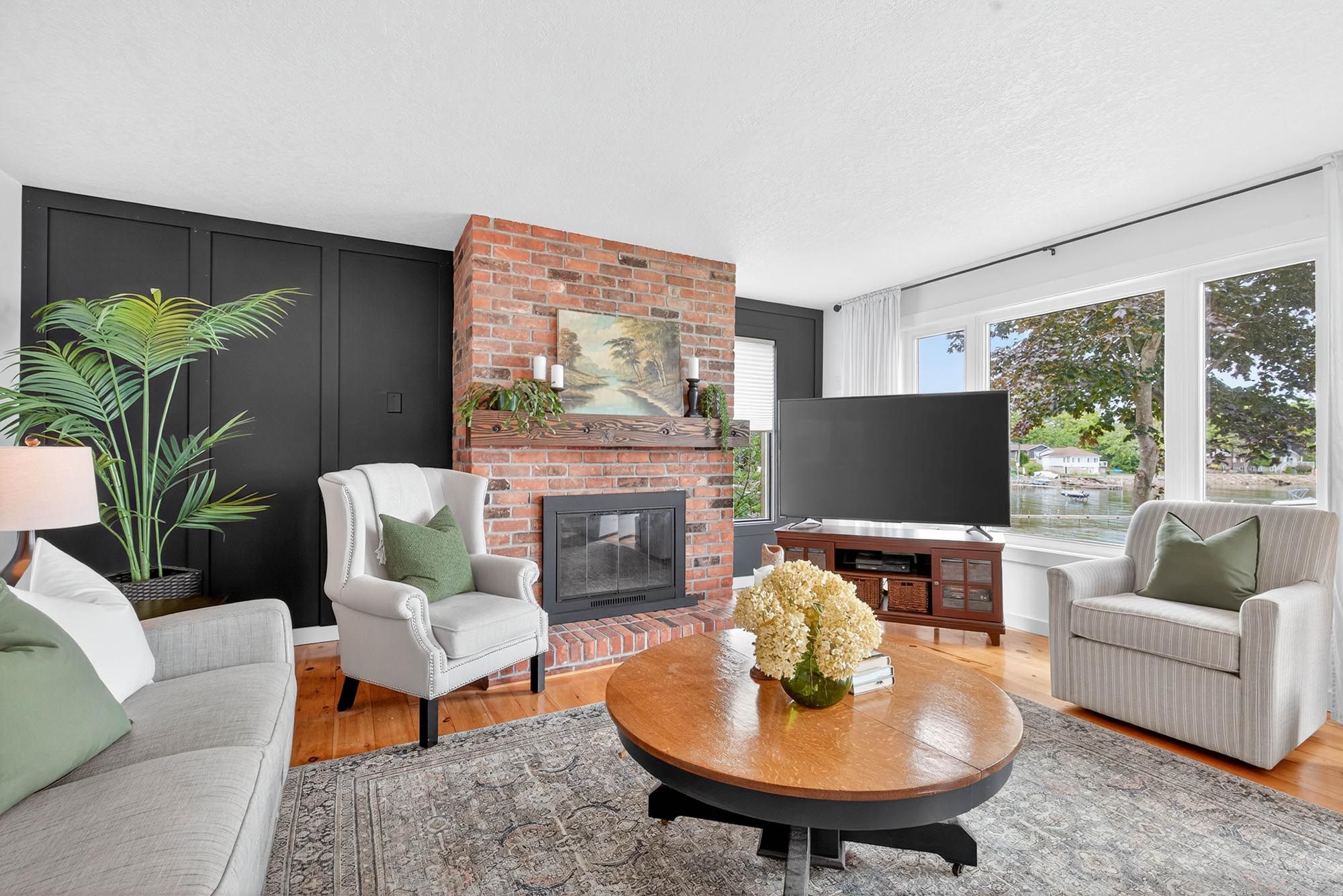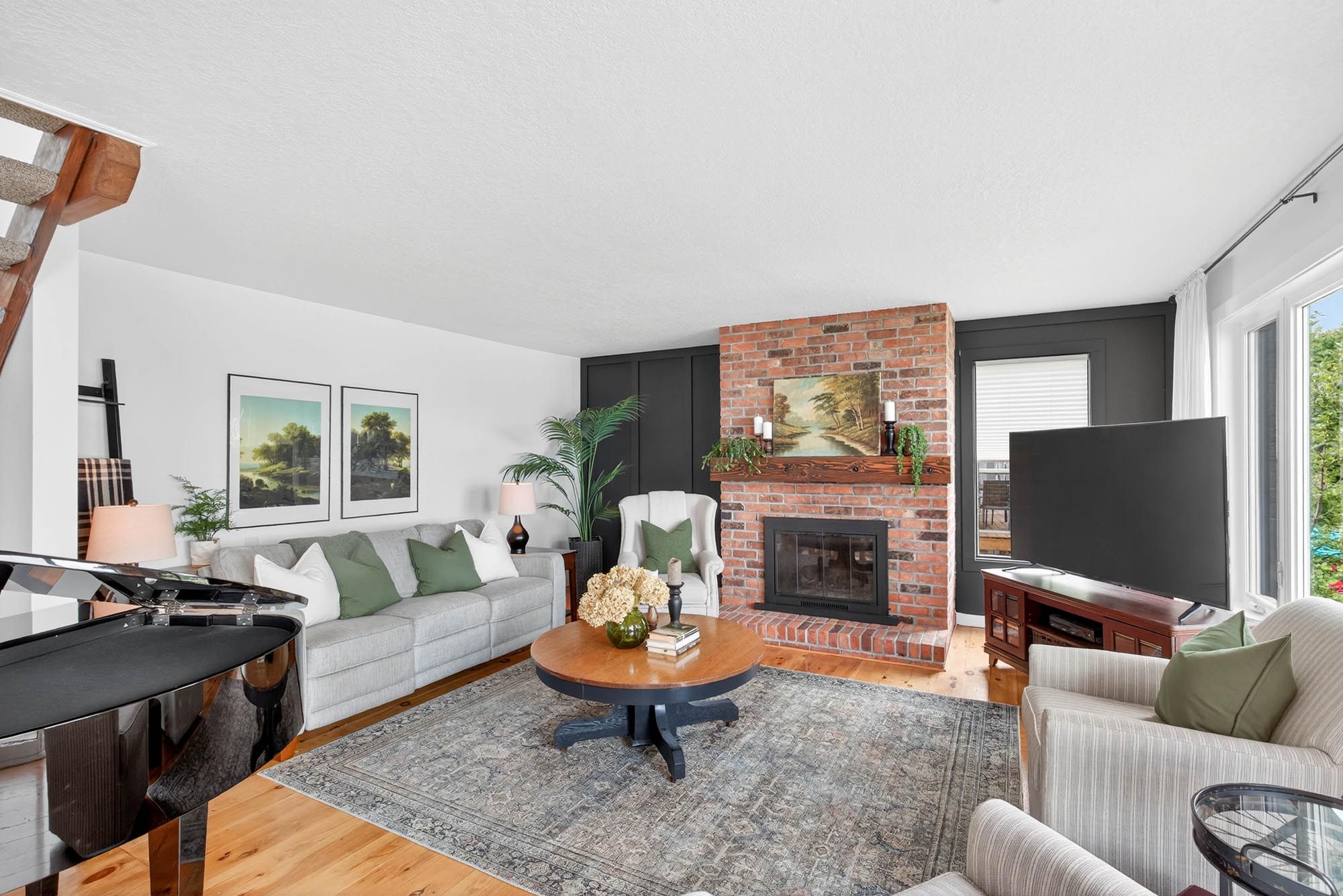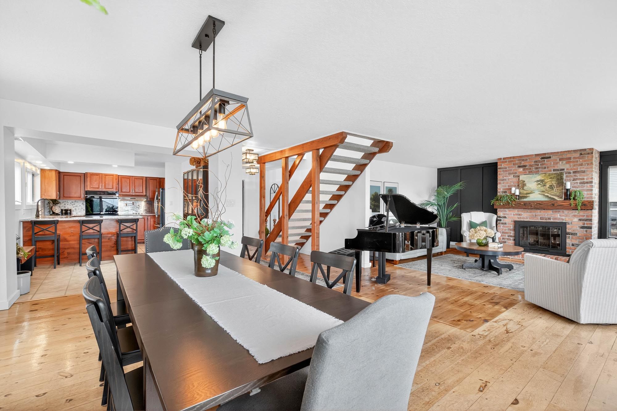 • Spacious main level with open design, fireplace, and gourmet kitchen.