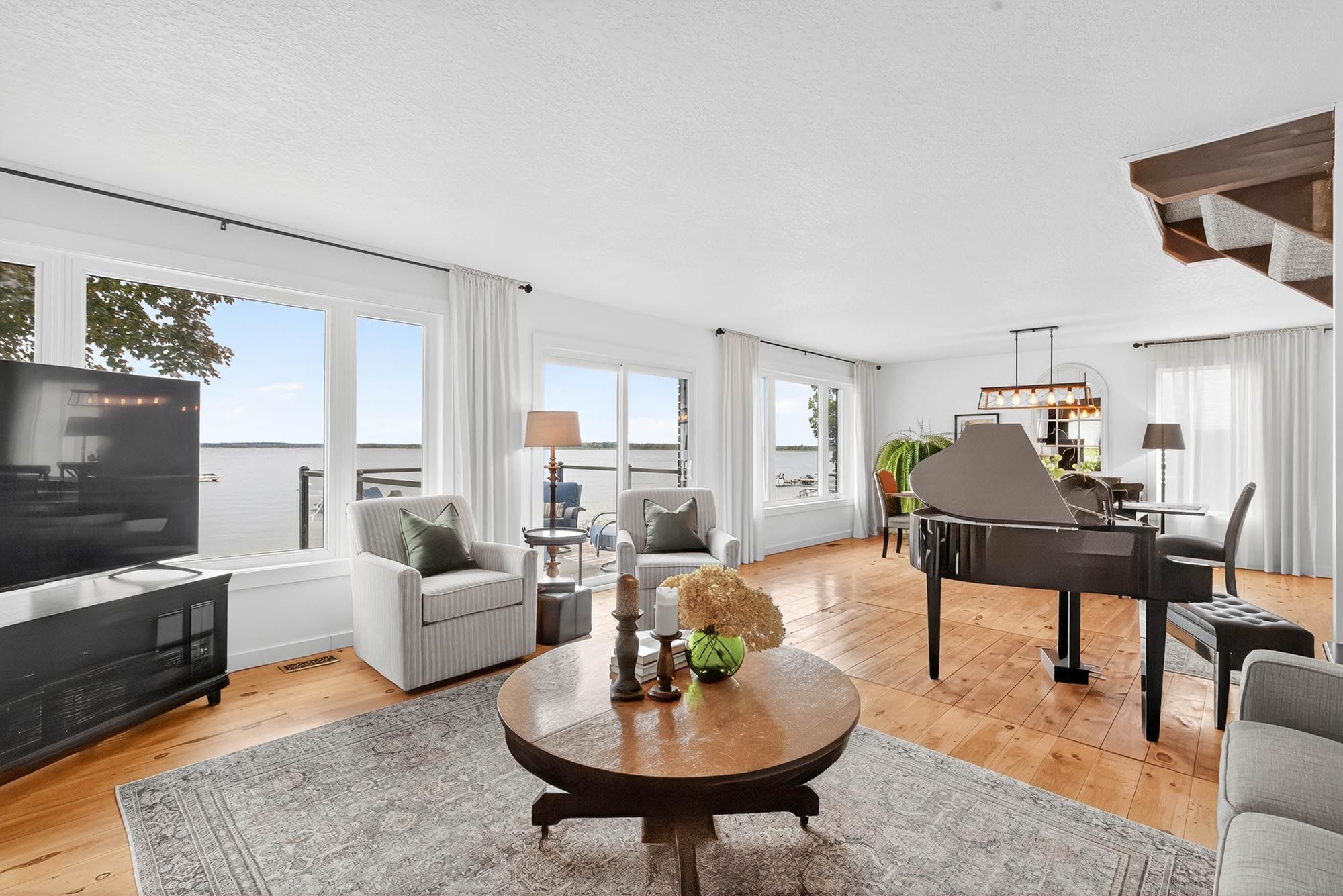 Top 5 reasons you will love this home: 1) enjoy stunning waterfront living with over 50' of georgian bay frontage, offering expansive views and a layout that easily adapts to your needs 2) featuring three distinct private living areas, including a fully finished lower level with its own kitchen, living space, bedroom, and bathroom, as well as an upper-level suite with a bedroom, bathroom, family room, and kitchenette, perfect for guests or rental opportunities 3) the spacious main level offers an open, flowing design with a cozy fireplace, a gourmet kitchen equipped with granite countertops and built-in appliances, as well as a quiet sitting room ideal for a home office, and a conveniently located laundry area 4) thoughtfully updated between 2020 and 2024 with new heating and cooling systems, updated windows and patio doors, a refreshed roof complete with skylights, modern siding, and newly built decks 5) located in the heart of victoria harbour with quick access to everyday amenities and highway 400, making travel to midland, orillia, barrie, and toronto fast and convenient. 3,147 square feet plus a finished basement.