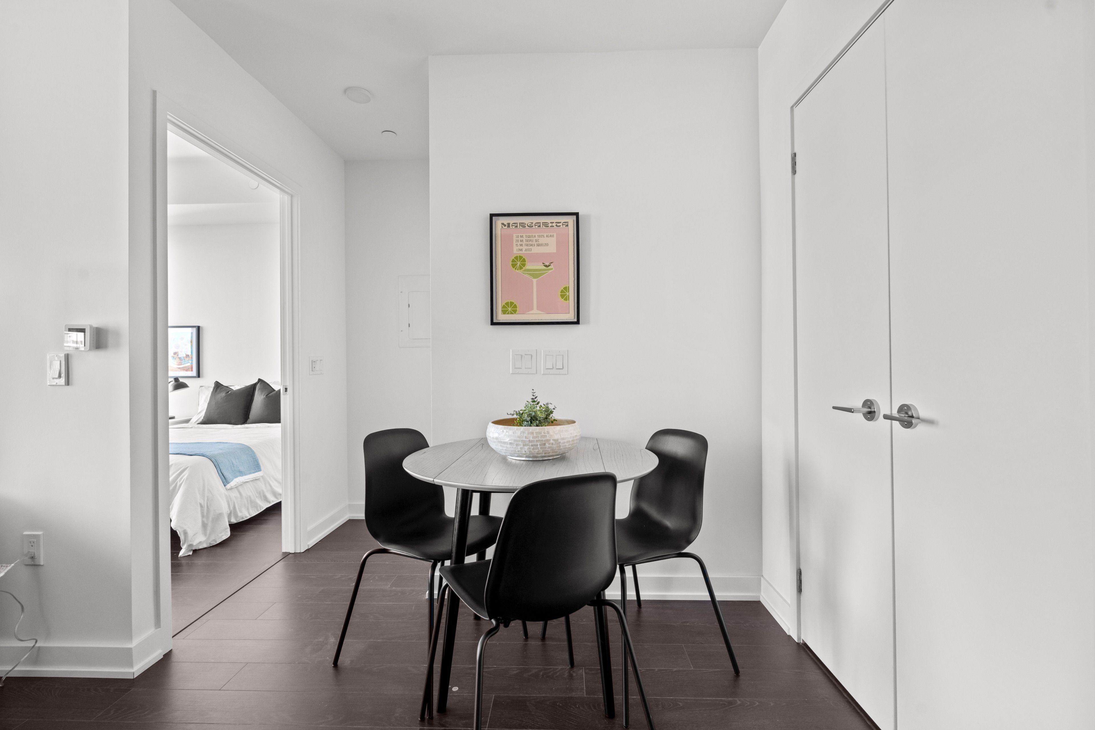 This nearly new fully furnished 1-bedroom condo on the 14th floor offers bright, spacious living with 9 ft ceilings and floor-to-ceiling windows. The modern kitchen boasts quartz countertops, a ceramic backsplash, and built-in appliances, all complemented by sleek laminate flooring throughout. Enjoy an array of luxurious amenities, including 24/7 concierge service, a fitness centre, yoga studio, party and meeting rooms, billiard rooms, and a rooftop terrace featuring an outdoor pool, jacuzzi, barbecues, and dining areas. Ideally located steps from ttc, u of t, ocad, eaton centre, vibrant shops, restaurants, and the art gallery of ontario!