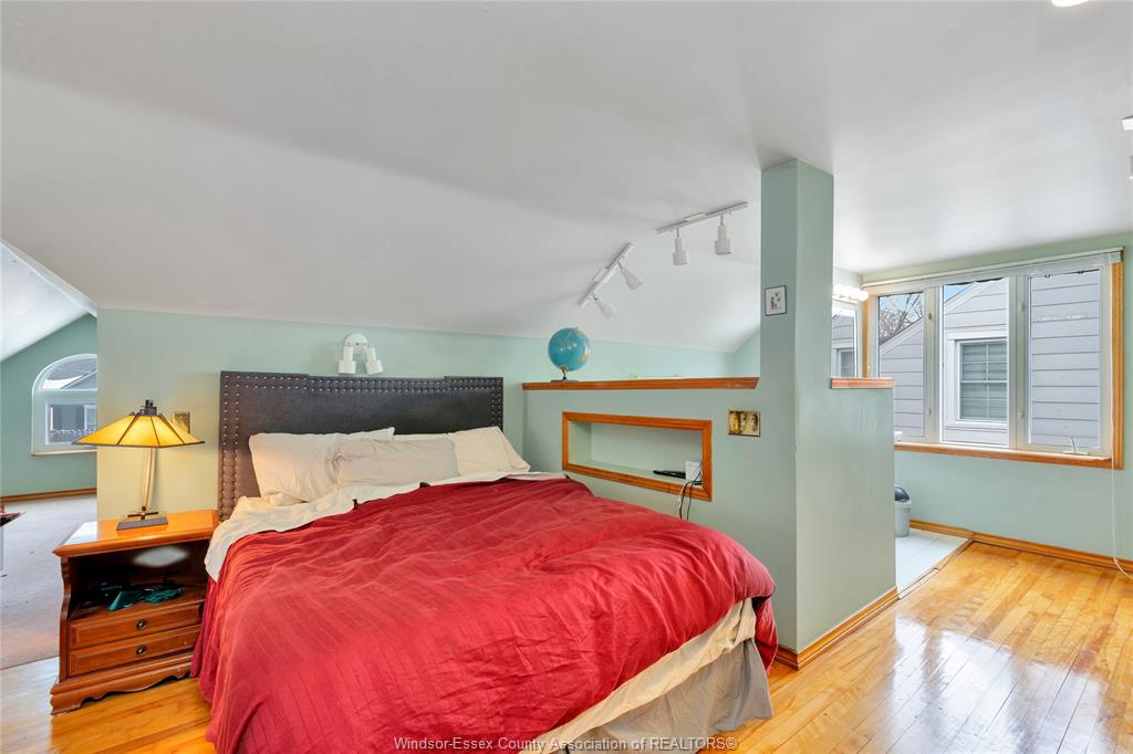 Nestled in the enviable location of 1 1/2 blocks from riverside drive, this brick storey & a half home awaits your own personalization. You can count on the modern assets of forced air, central air & a sunroom addition, while still having the original hardwood floors, cove ceilings, and a natural fireplace including its wooden mantle & surround. Conveniently, there is a main floor bedroom along with a separate area that can be restored to a second bedroom, or utilized as a dining area. Upstairs, the primary bedroom features an ensuite bath with jacuzzi, and an adjoining sitting area with circle top window that can serve as a nursery or future walk in closet. Private driveway located on right/south side.