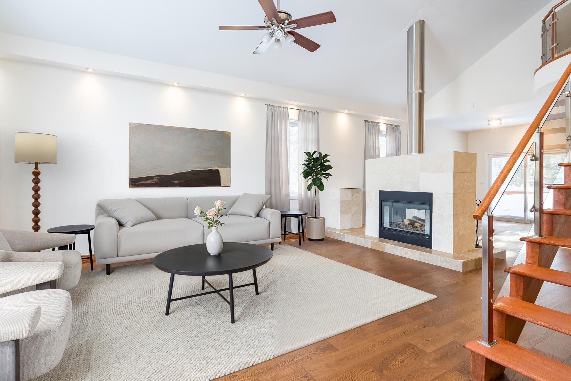 Top 5 reasons you will love this home: 1) custom-built and bathed in natural light, this welcoming four-season home offers a bright, open-concept design that invites easy living and effortless connection, all complemented by thoughtfully chosen, quality finishes throughout 2) the heart of the home features a beautifully appointed kitchen with premium stainless-steel appliances, recessed lights, a large window, and a breakfast bar, flowing seamlessly into the expansive living room highlighted by new engineered hardwood floors and a striking two-sided fireplace 3) everyday living is elevated through mindful details, from the convenience of main level laundry to the indulgence of a private sauna, while the spacious primary bedroom offers a peaceful retreat with a walkout to the balcony, the perfect place to relax, breathe in the fresh air, and take in the surrounding views 4) completely updated and truly turn-key, with a newer roof, furnace, flooring, interior doors, fresh paint, and refreshed outdoor spaces, including the deck, balcony, and porch 5) set in a highly desirable neighbourhood just a short stroll to the lake and minutes from awenda provincial park and several beautiful beaches. 1,853 fin. Sq. Ft. *please note some images have been virtually staged to show the potential of the home.