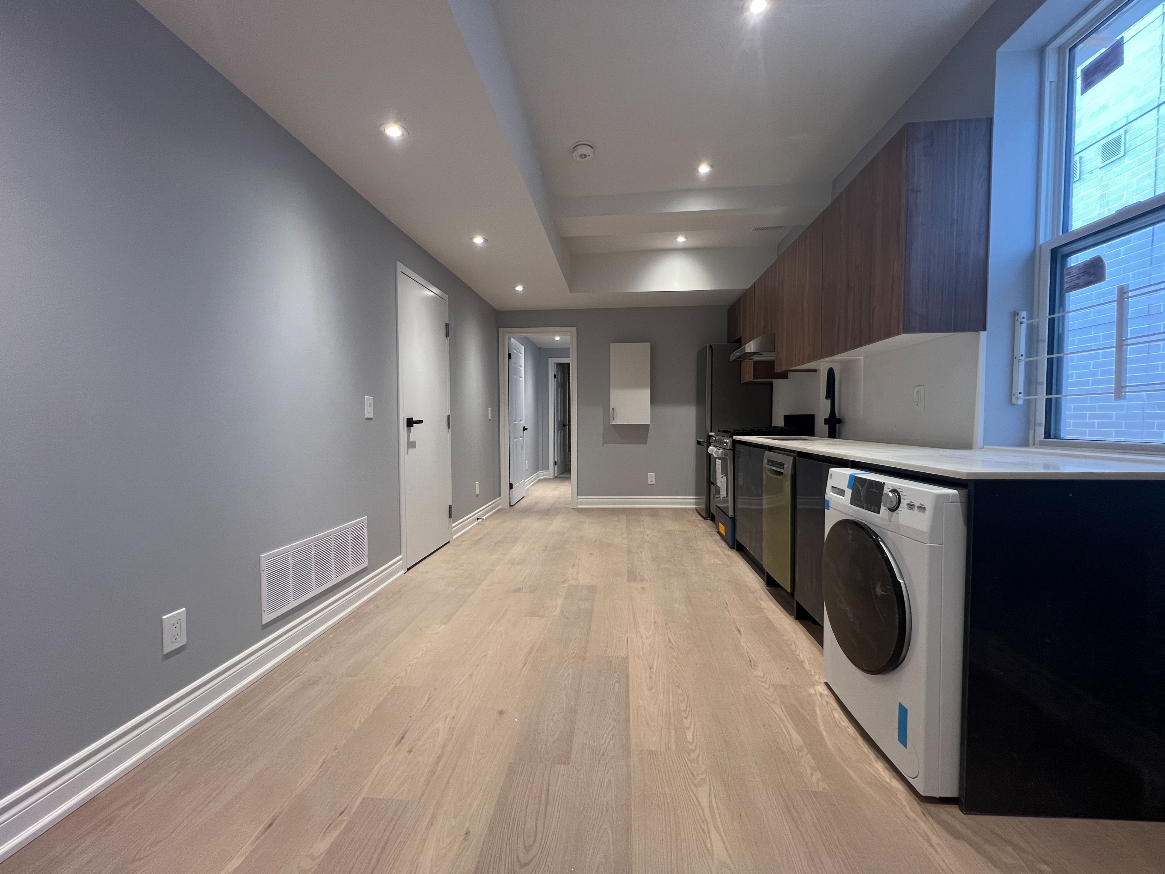 Experience modern living in this beautifully renovated unit featuring 2 spacious bedrooms and 2 full bathrooms. Ideally located in the vibrant heart of etobicoke, you're just steps away from public transit, grocery stores, restaurants, and a variety of everyday conveniences. Enjoy an abundance of natural light through extra-large windows, enhancing the open and airy feel of the home. The modern kitchen boasts built-in stainless steel appliances, sleek finishes, and ample storage perfect for both everyday use and entertaining. Don't miss the opportunity to live in a stylish, move-in-ready space in one of toronto's most connected neighborhoods!