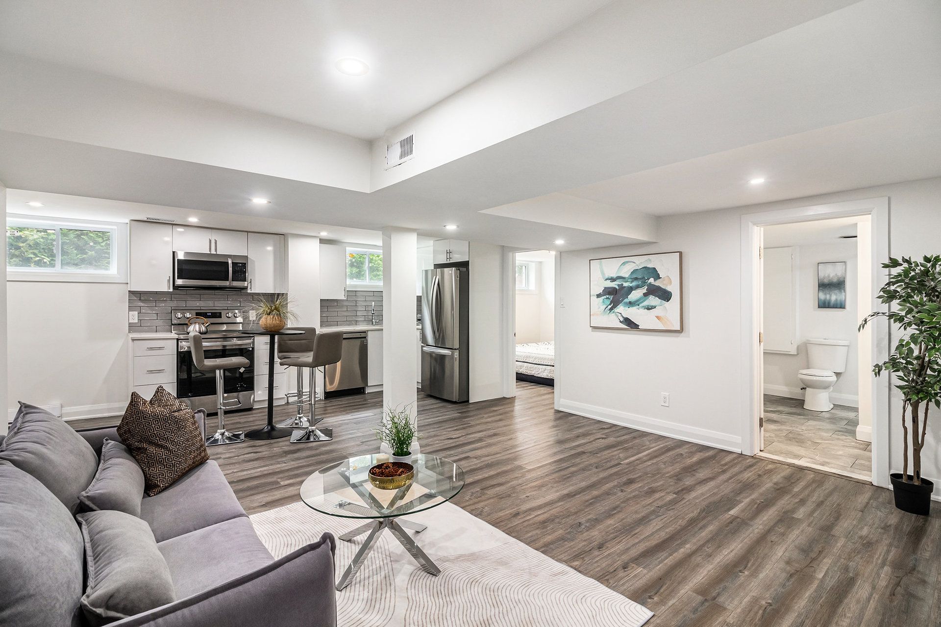 • Bright basement unit with large windows and separate entrance for privacy.