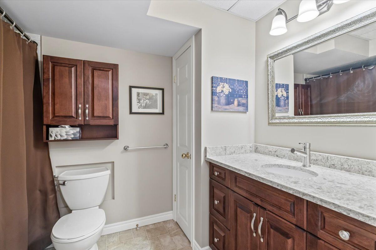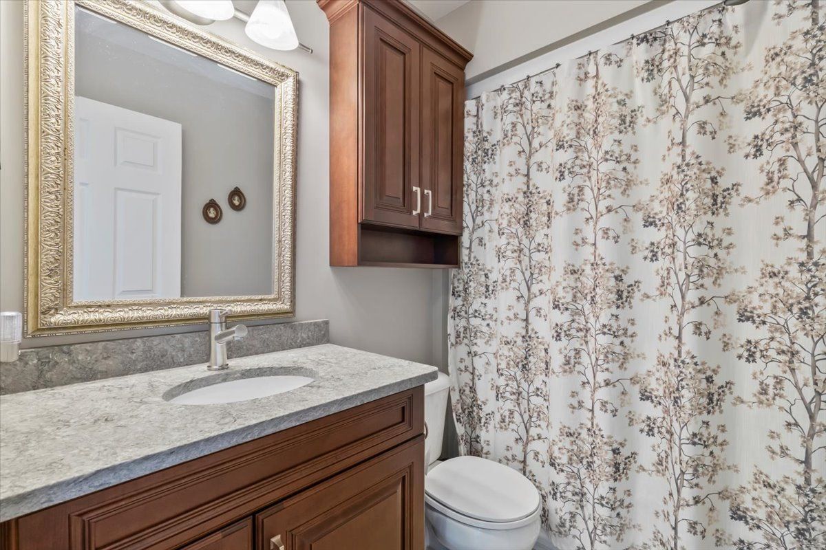 • Fully finished lower level with gas fireplace, extra bedroom, and office space.