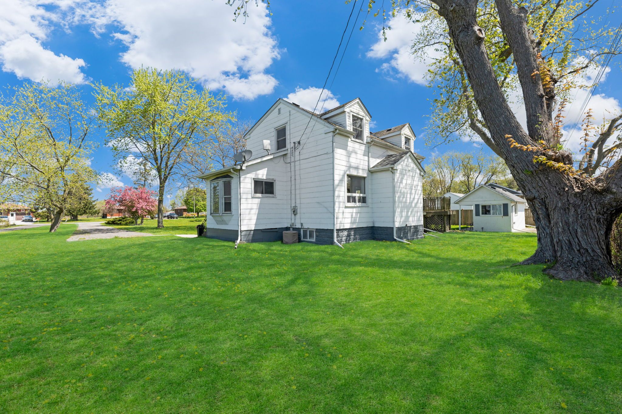 Welcome home to 239 becken crescent, a beautiful retreat tucked away just on the outskirts of welland! Sitting on just under 1/2 acre, this property truly captures the saying "country in the city." enjoy quick access to the highway and nearby amenities, convenience is truly at your doorstep. The extra-long, double-wide driveway offers ample parking for family and guests. This charming two storey home features three bedrooms and two bathrooms. Stepping inside to first, a spacious sunroom, then as you continue to enter into the foyer, you'll immediately notice the charm and character this home has. Thoughtful updates throughout add a modern touch while preserving the homes original charm. The main floor features an open concept family and dining room, the home's full bathroom and an eat-in kitchen - lined with tongue and groove pine boards that adds that warm feeling, complimented by the natural light that pours in. Sliding doors from the kitchen open to the side yard, leading onto a spacious deck with room for outdoor dining and your patio furniture. Just steps away, a cozy fire pit area. The property also features a large shed, fully equipped with gas and hydro. This versatile outbuilding provides tons of storage and includes a heated man cave with a fold-up window, an awesome place to kick back and cheer on the toronto maple leafs during their stanley cup run! Back inside, you'll find a full unfinished basement. Upstairs, the home features 3 generously sized bedrooms and a 1/2 bathroom. Each room offers ample space; perfect for a home office, nursery, or guest room. Whether you're enjoying a quiet evening by the fire pit, hosting friends on the deck, or settling into the warmth and charm inside, this home will not disappoint. With plenty of room to grow, entertain, and make memories, it's more than just a house it's a place to call home. Experience everything this unique country in the city escape has to offer!