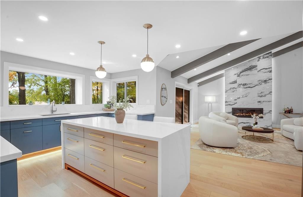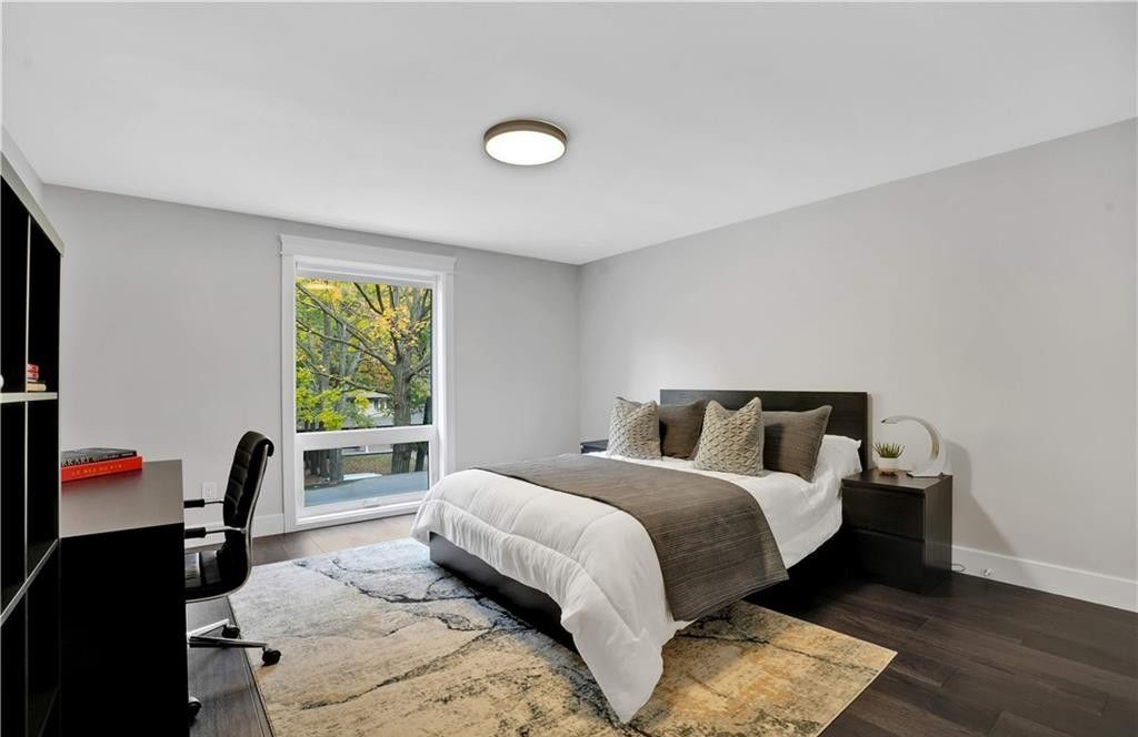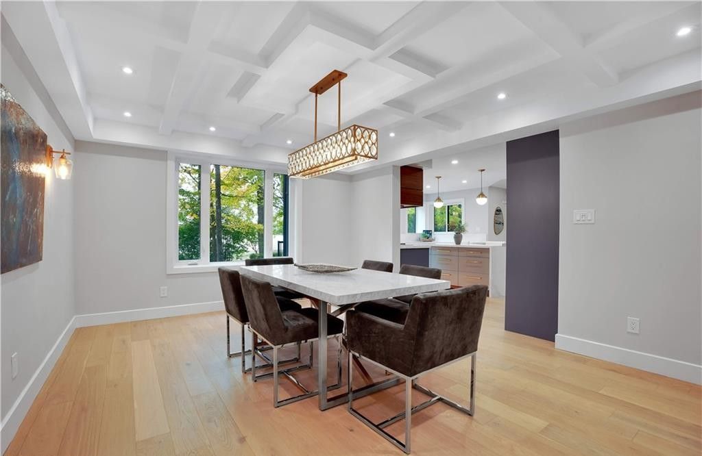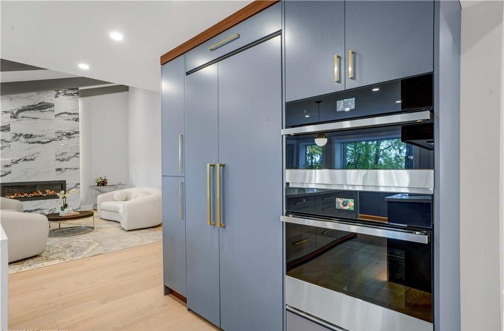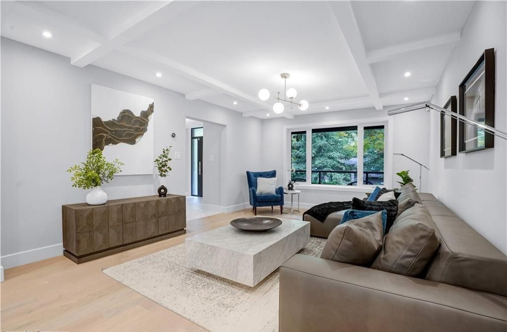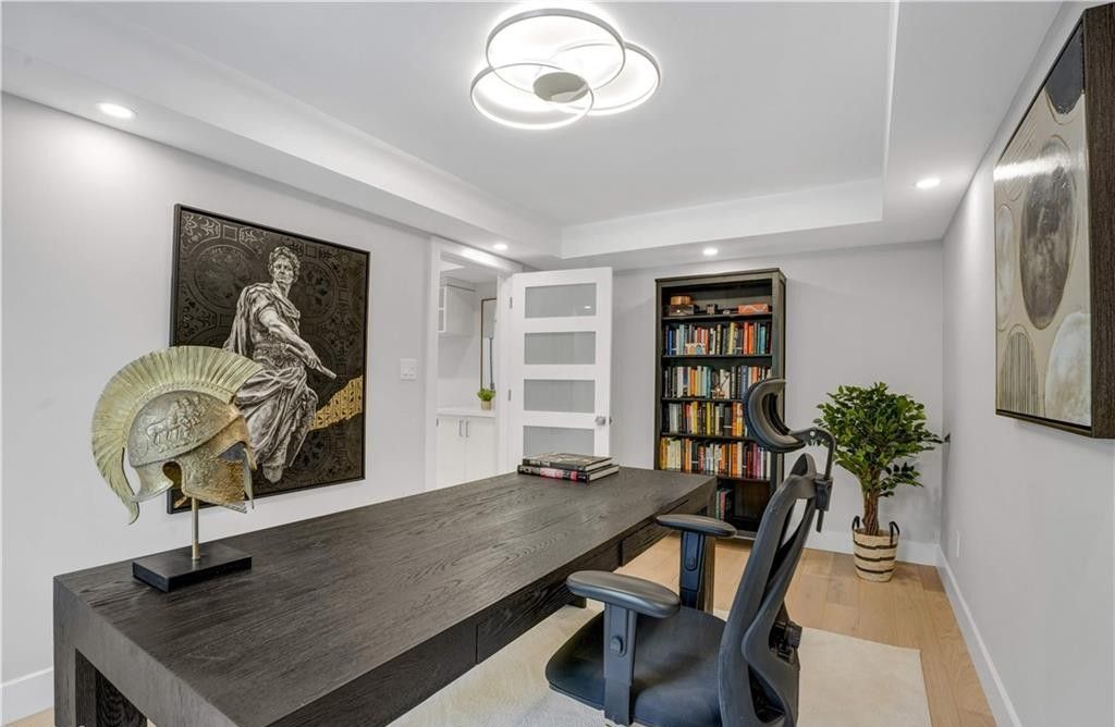 Welcome to a truly exceptional home on a quiet street in one of the area's most sought-after neighbourhoods. Extensively renovated, this residence offers a refined mix of modern design, quality finishes, and functional living space. From the striking exterior and landscaped approach to the dramatic curved staircase inside, every detail has been carefully considered. The main level is designed for both daily living and entertaining, featuring oversized windows, designer lighting, a formal living room, and a separate dining room. The chef's kitchen is a standout, with custom cabinetry, jennair appliances, a pot filler, waterfall island with seating, and integrated storage. The family room includes a floor-to-ceiling fireplace, while a dedicated home office, laundry room, and powder room complete the level. Upstairs, you'll find four spacious bedrooms with hardwood flooring, floor-to-ceiling windows, and large closets. The primary suite offers a custom walk-in closet and a spa-inspired ensuite with heated floors, glass shower, and freestanding soaker tub. A second ensuite and cheater bath add comfort and convenience for family and guests. The finished lower level adds excellent flexibility with a large rec room, bar, fifth bedroom, full bathroom, and separate entrance, making it ideal for guests, teens, or extended family. Outside, mature trees and well-planned outdoor living areas create a peaceful space to relax or entertain. This is a rare opportunity to own a turnkey luxury home in an established neighbourhood.