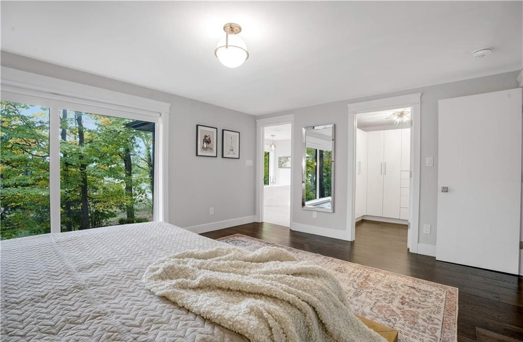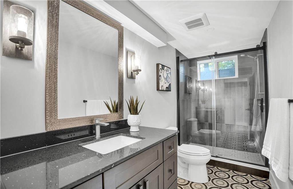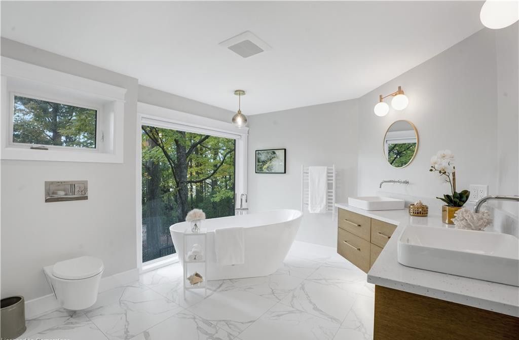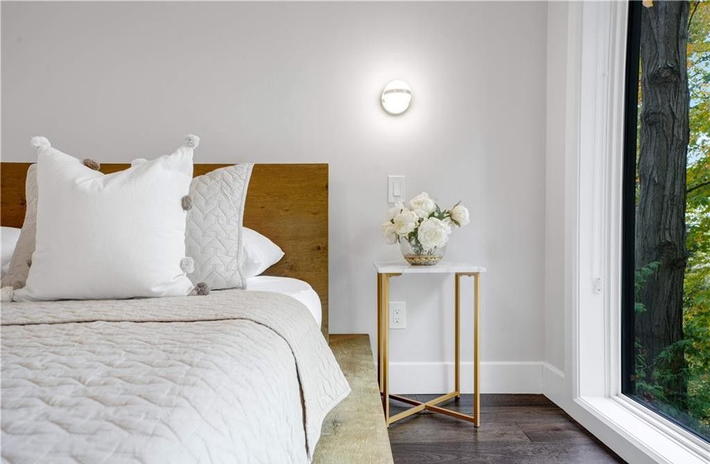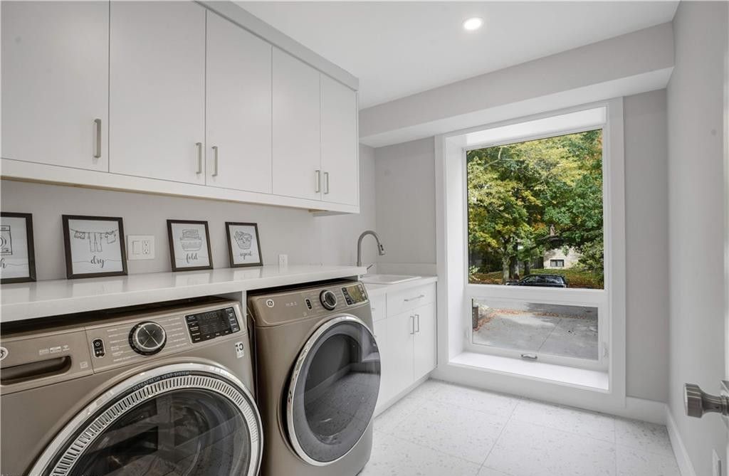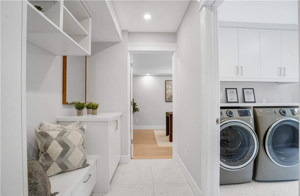 Welcome to a truly exceptional home on a quiet street in one of the area's most sought-after neighbourhoods. Extensively renovated, this residence offers a refined mix of modern design, quality finishes, and functional living space. From the striking exterior and landscaped approach to the dramatic curved staircase inside, every detail has been carefully considered. The main level is designed for both daily living and entertaining, featuring oversized windows, designer lighting, a formal living room, and a separate dining room. The chef's kitchen is a standout, with custom cabinetry, jennair appliances, a pot filler, waterfall island with seating, and integrated storage. The family room includes a floor-to-ceiling fireplace, while a dedicated home office, laundry room, and powder room complete the level. Upstairs, you'll find four spacious bedrooms with hardwood flooring, floor-to-ceiling windows, and large closets. The primary suite offers a custom walk-in closet and a spa-inspired ensuite with heated floors, glass shower, and freestanding soaker tub. A second ensuite and cheater bath add comfort and convenience for family and guests. The finished lower level adds excellent flexibility with a large rec room, bar, fifth bedroom, full bathroom, and separate entrance, making it ideal for guests, teens, or extended family. Outside, mature trees and well-planned outdoor living areas create a peaceful space to relax or entertain. This is a rare opportunity to own a turnkey luxury home in an established neighbourhood.