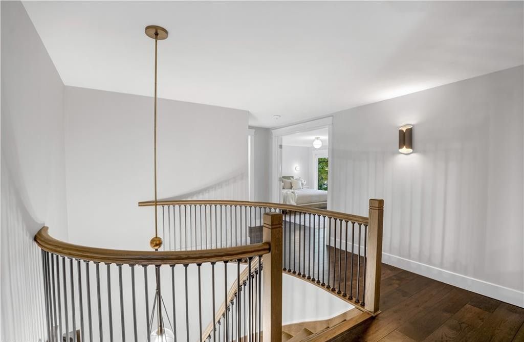 • Four large bedrooms with hardwood flooring and ample closet space upstairs.