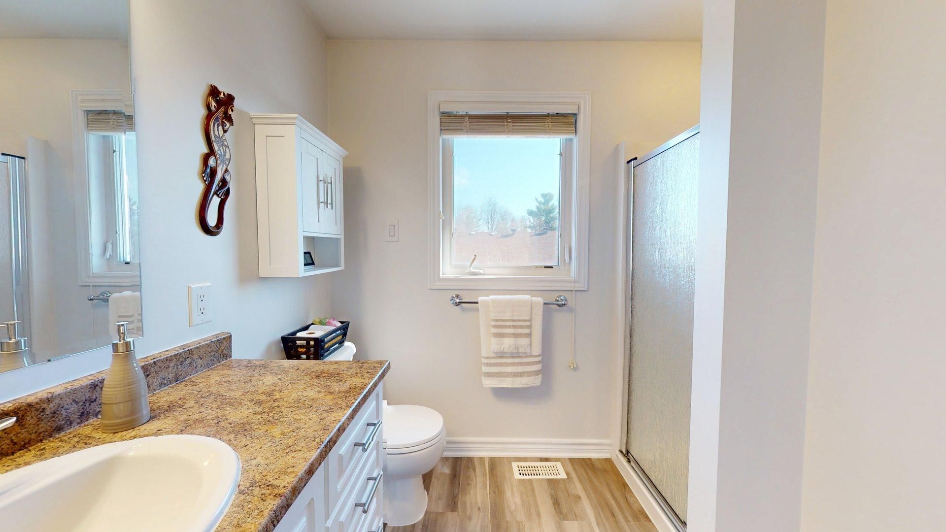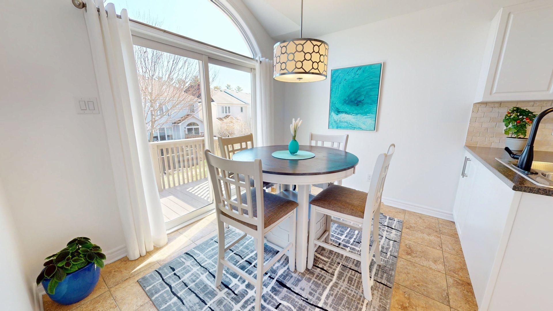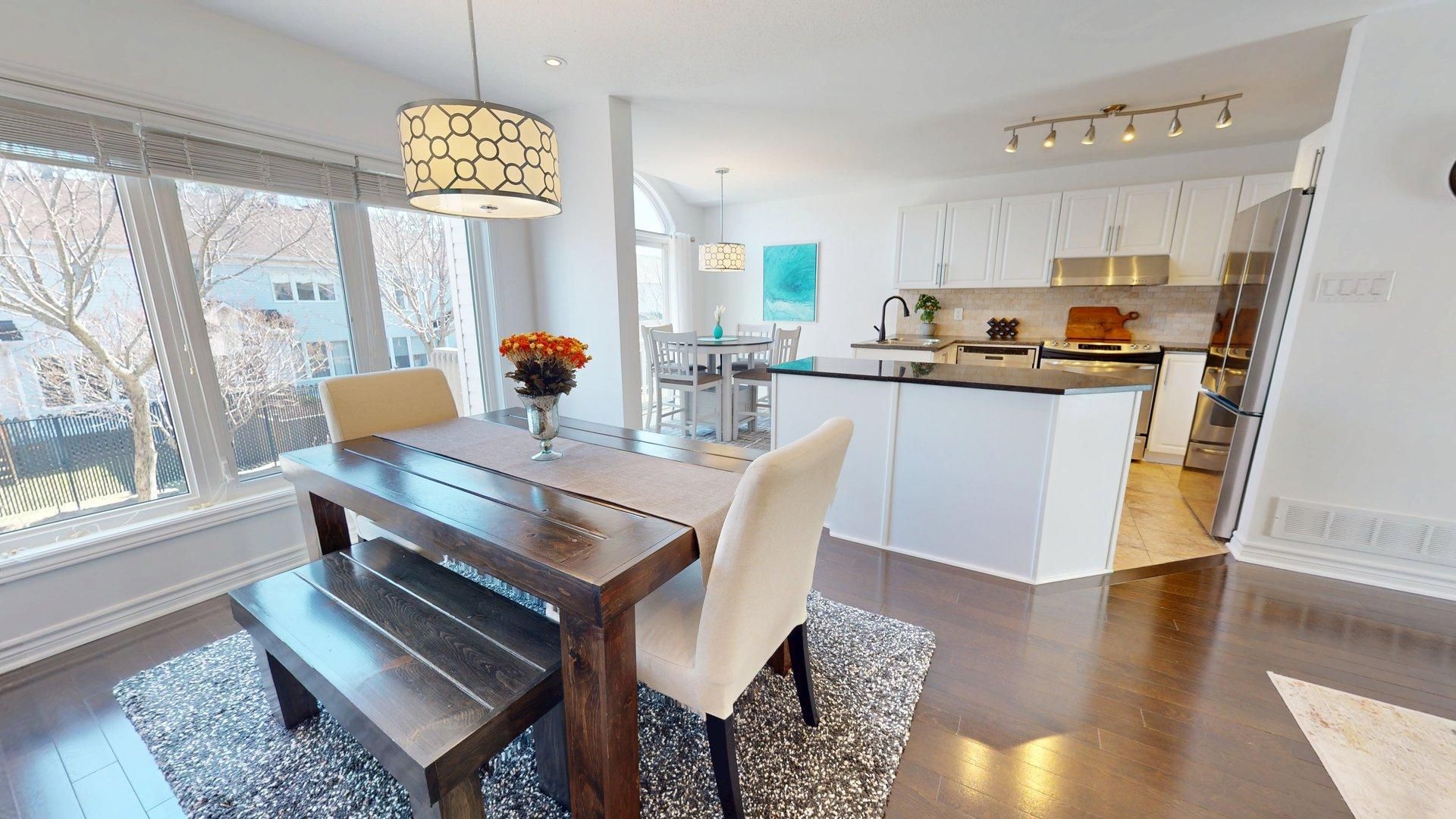 Welcome to this beautiful 3 bed, 3 bath minto manhattan end unit townhome with 1867 sq feet of living space nestled in morgan's grant. The main level features oak hardwood floors, with ceramic tile in the foyer, kitchen, and bath. The kitchen boasts a granite island, travertine tile backsplash & top-quality ss appliances with a new fridge added in 2026. Enhanced by recessed lighting & stylish light fixtures, this home offers an inviting ambiance. Upstairs, the spacious primary bed includes a walk-in closet & luxurious ensuite with soaker tub & separate shower. The additional bedrooms are generously sized with ample closet space. The finished basement offers a cozy family room with a large window, gas fireplace and storage room or future bathroom with plumbing roughed in. A new high efficiency furnace was installed in 2025. Additionally, a new owned hot water tank was also installed in 2025. Outside, enjoy a quaint backyard with a small deck and a small interlock patio. A private, non-shared driveway and garage provide parking for up to 3 cars. Ideally located just a block from the south march highlands conservation forest and minutes from the kanata north recreation complex, schools, transit, high tech sector, shopping and more, with quick access to hwy 417 and dnd hq on moodie drive.