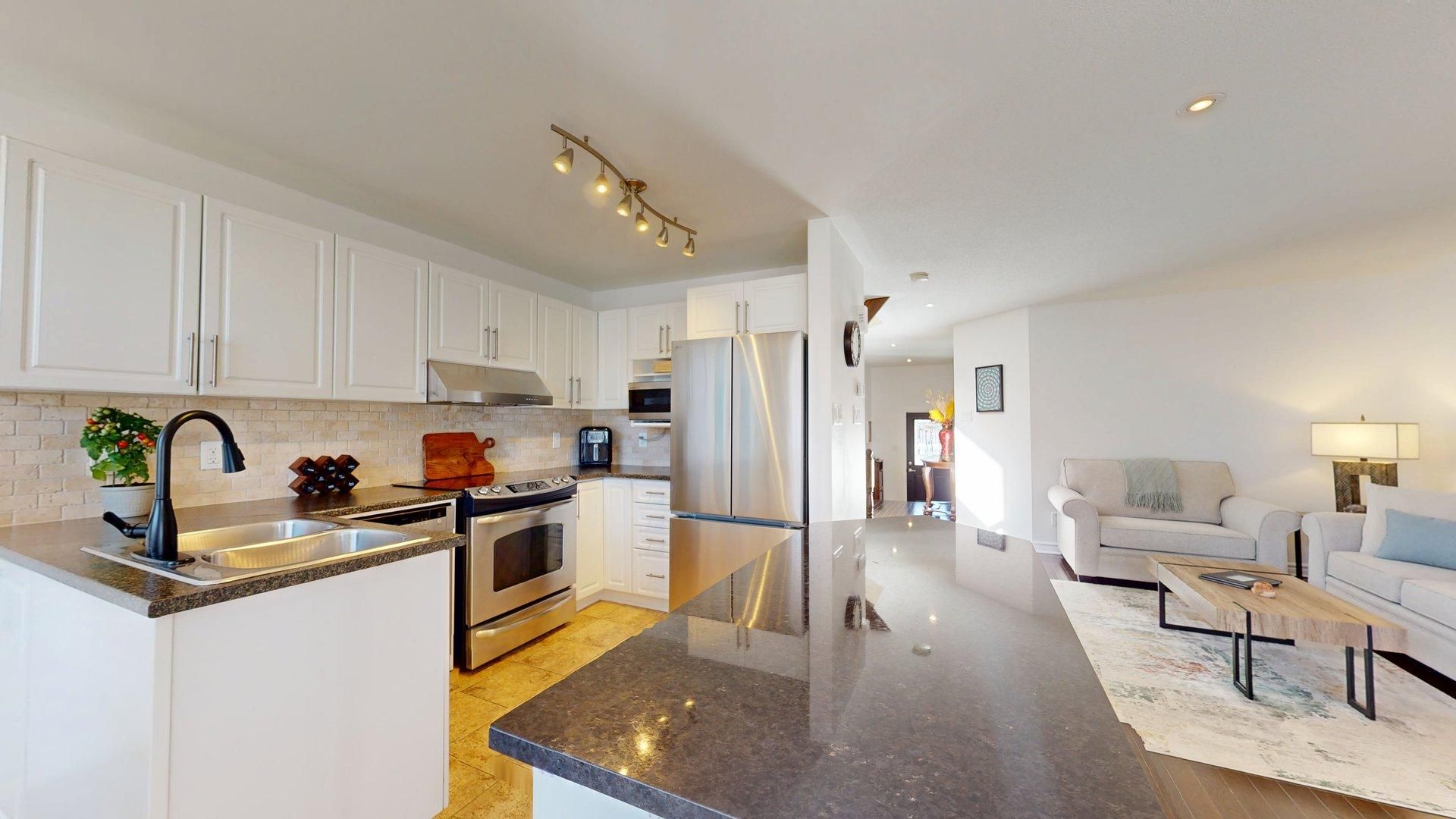 • Stylish kitchen features granite island and top-quality stainless steel appliances.