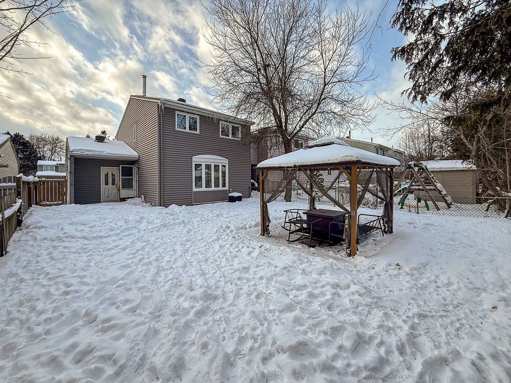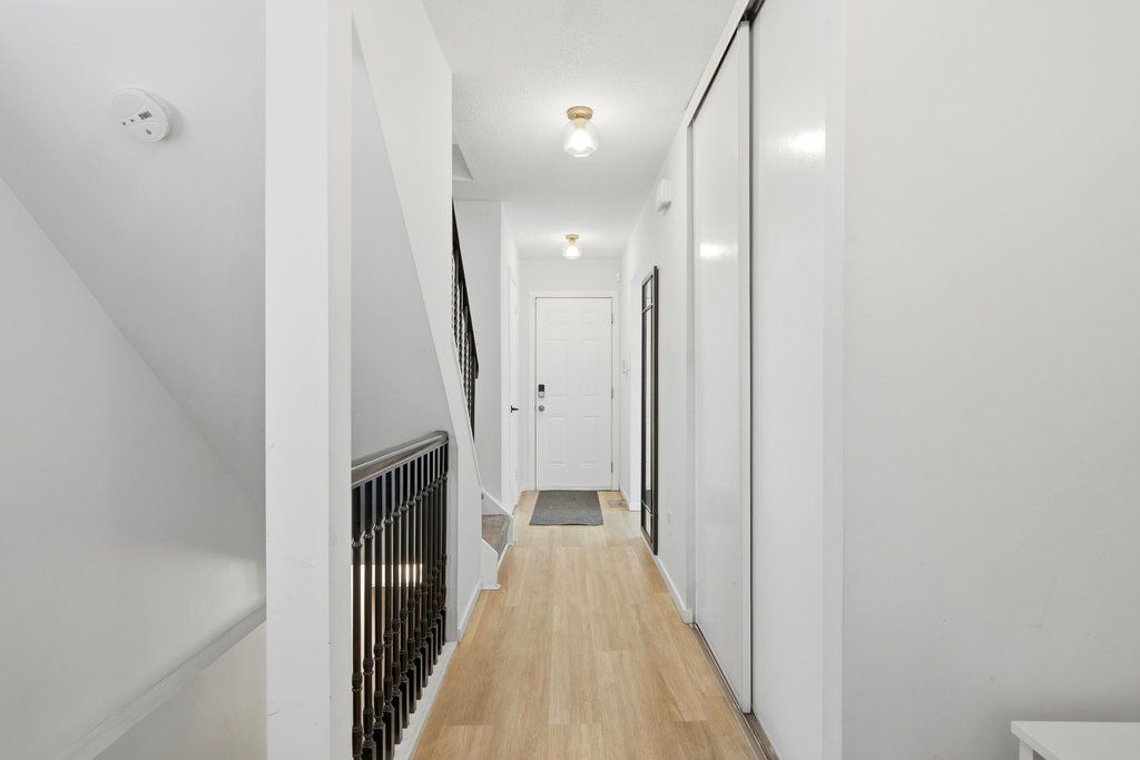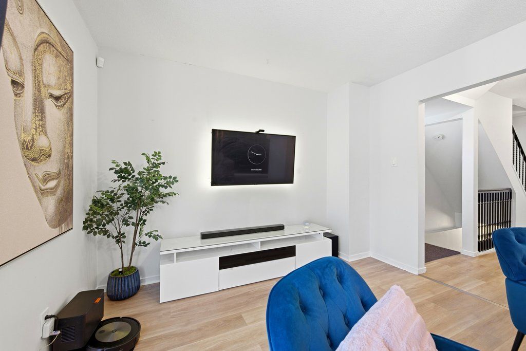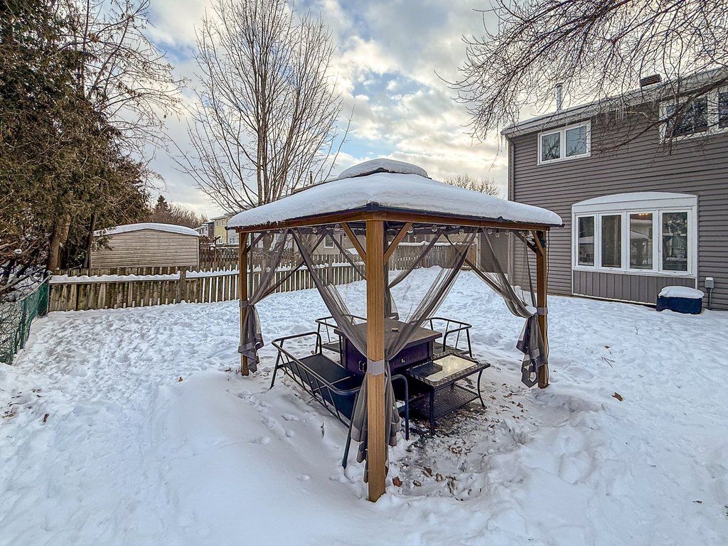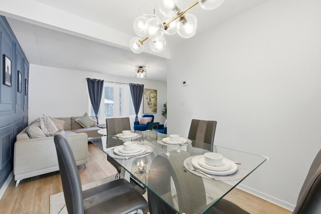 Welcome to rondel street in the heart of blackburn hamlet! A sought-after costain homes model offers one of the builder's most popular townhome layouts, featuring a bright, open-concept main floor filled with natural light. This end-unit carriage home has been extensively upgraded, showcasing crisp white cabinetry, stone countertops, upgraded flooring, and custom millwork that beautifully defines the living and dining areas. The finished basement, complete with new carpet (2026), provides the perfect family room or teenage retreat. Step outside to a fully fenced, low-maintenance backyard where you can relax or entertain on the expansive 200+ sq. Ft. Deck or unwind on the interlock patio (15x15) with a full gazebo. Ideally located within walking distance to shopping, transit, schools, parks, the public library, and the community swimming pool, this home combines comfort, convenience, and thoughtful upgrades in a fantastic neighbourhood. Additional highlights include a one-car garage equipped with a stage 2 ev charger.
