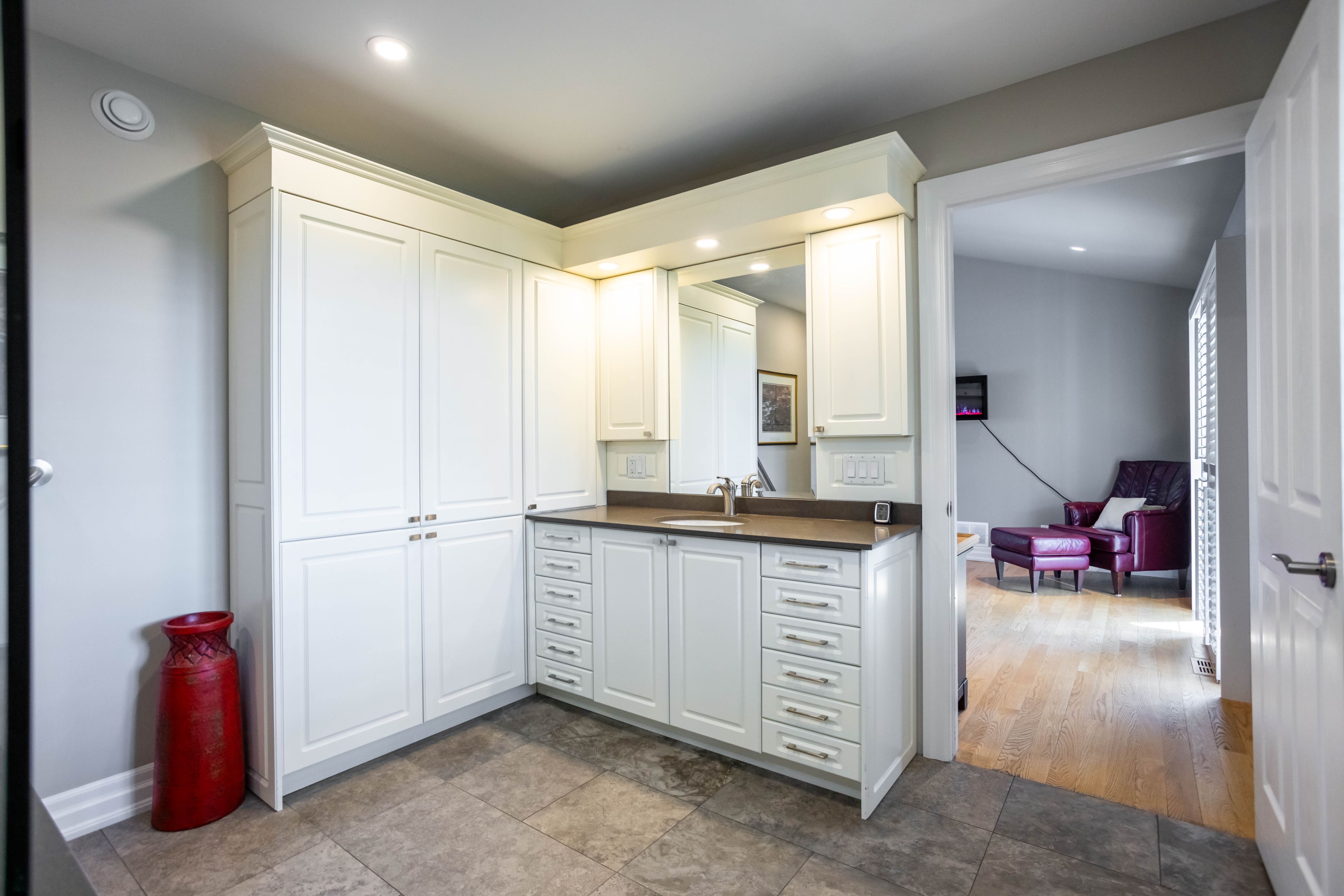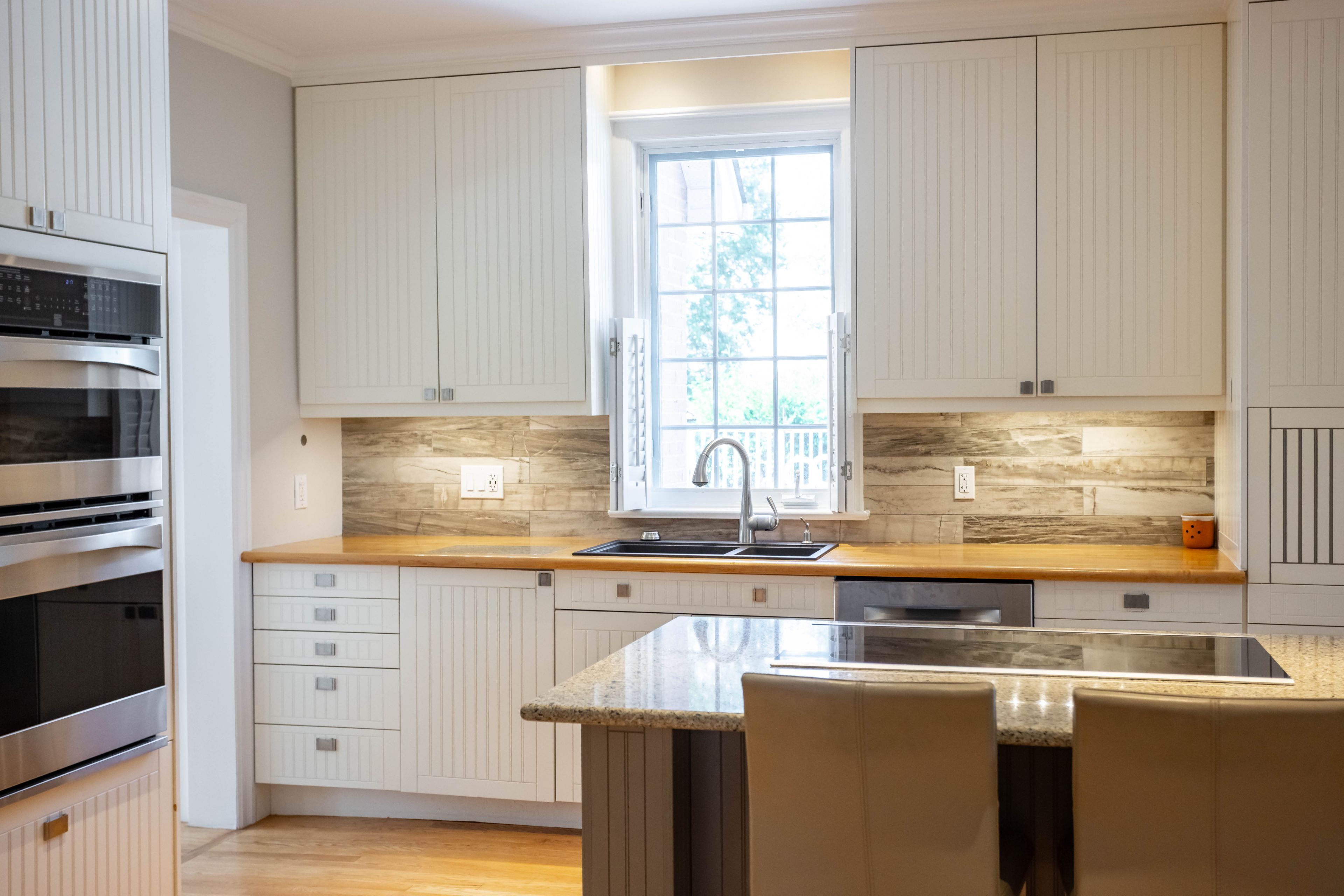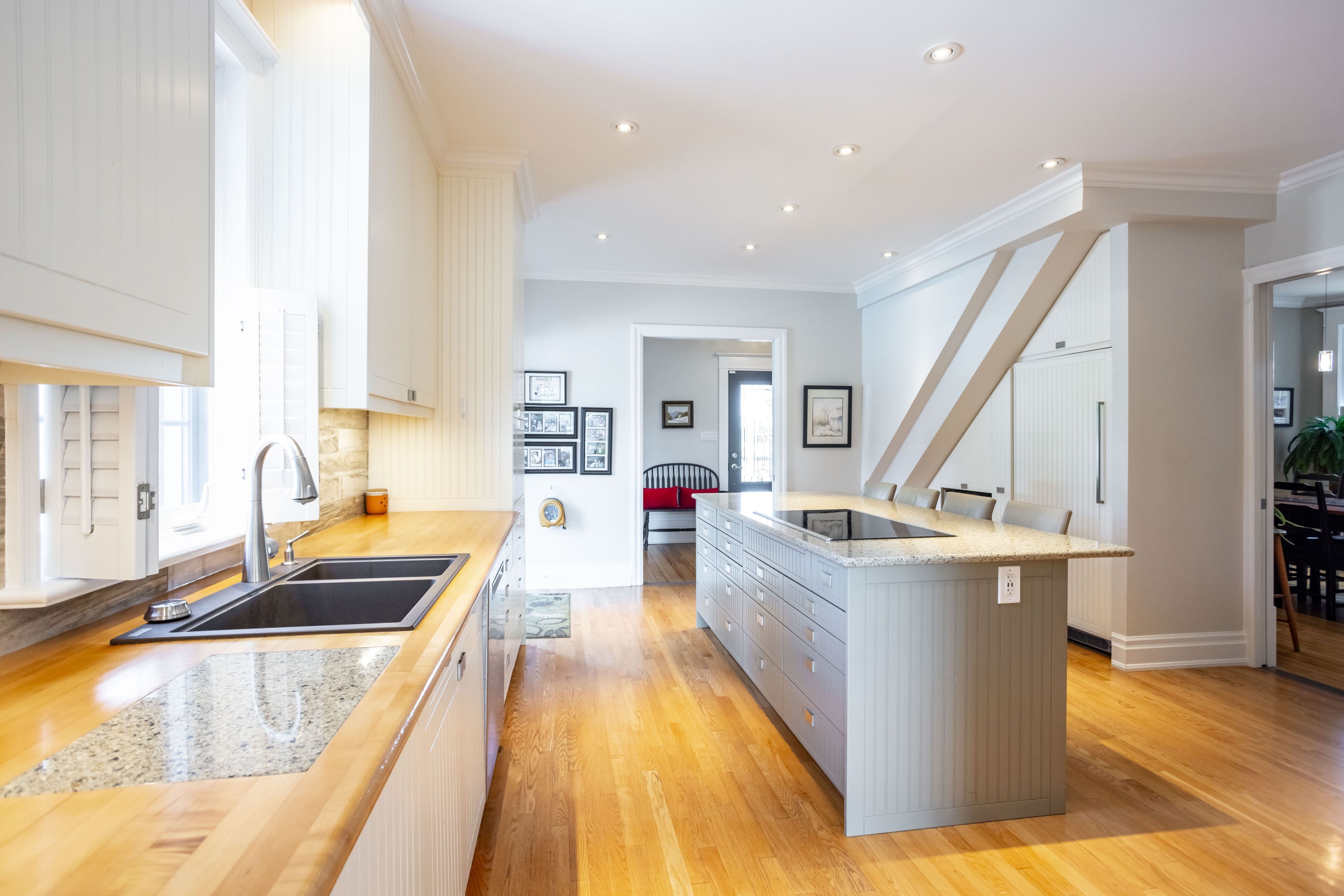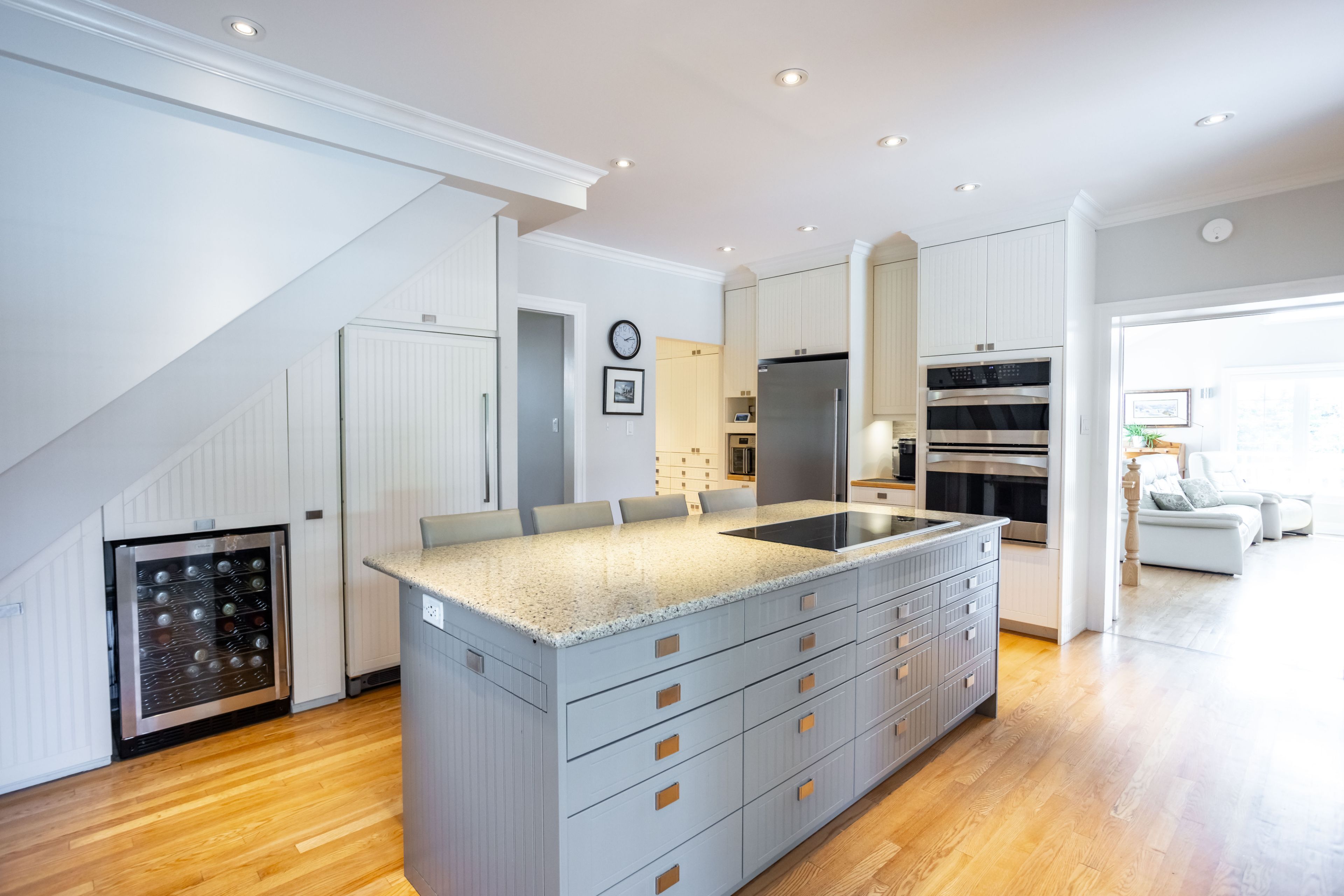 • Chef-inspired kitchen with built-in appliances and large gathering island.