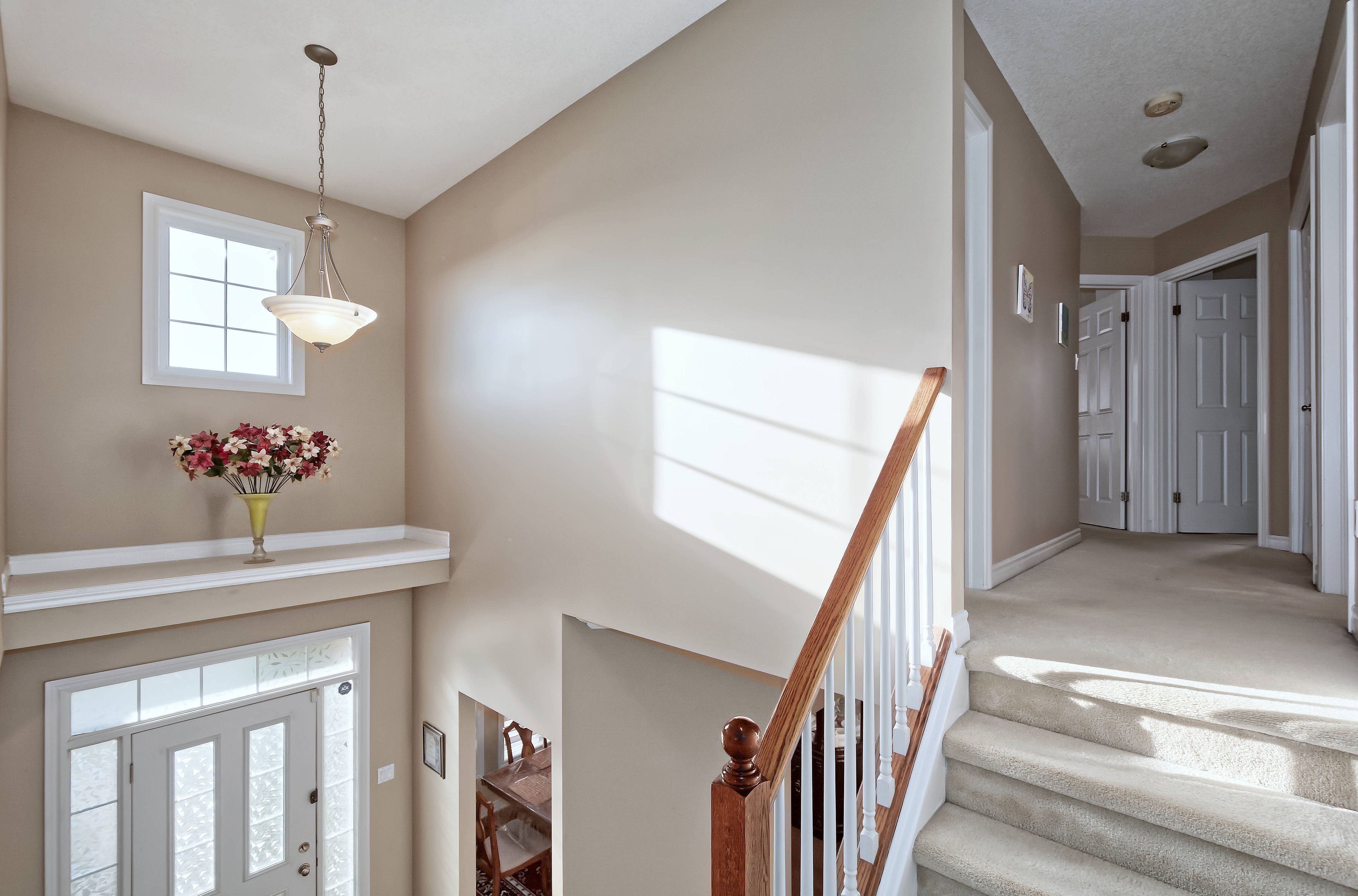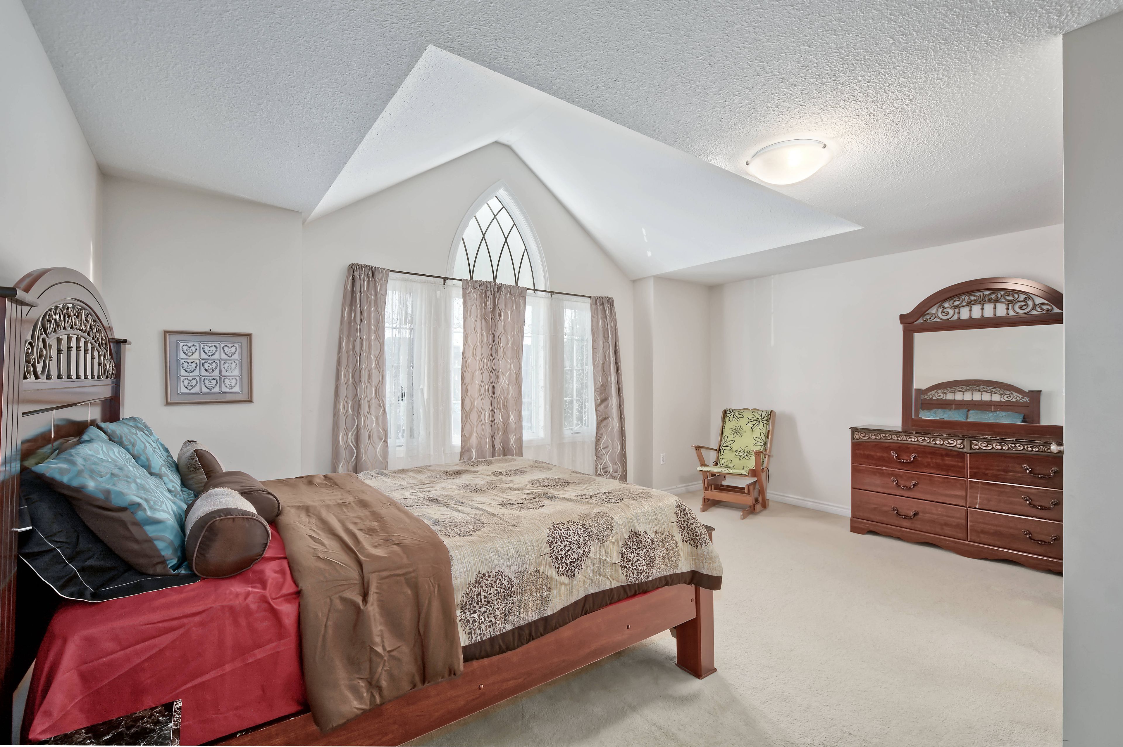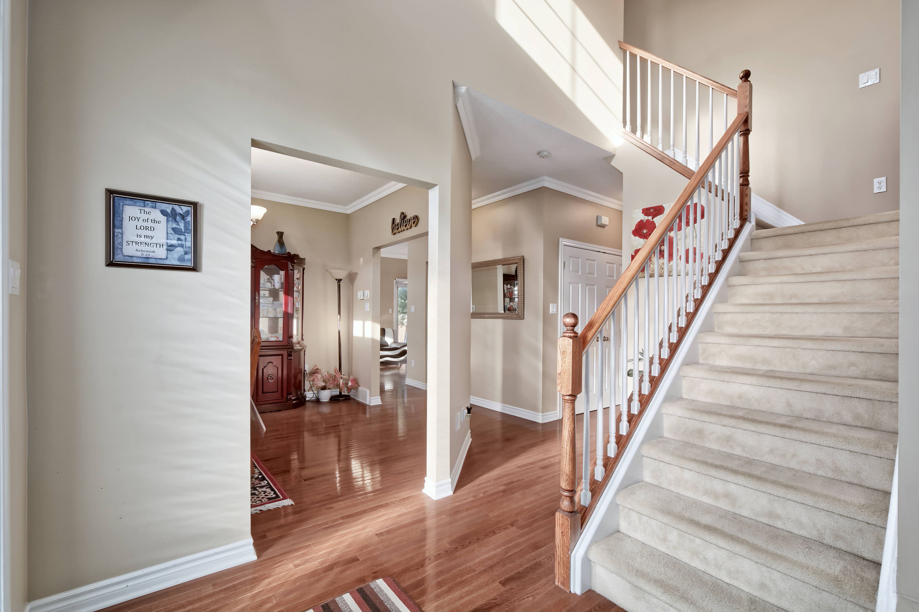 Everything desired in a dream home is here, combining thoughtful design, spacious living, and modern features, making it a perfect choice for families seeking comfort and style. The main floor boasts soaring 10-foot ceilings, creating an open and airy atmosphere filled with natural light and gleaming hardwood floors. A cheerful open concept great room to kitchen with eat in area and walkout to the deck provides the perfect spot to enjoy morning coffee, while the formal dining room and living room offer elegant spaces for entertaining and family gatherings. All four bedrooms are exceptionally spacious, each featuring oversized closets for ample storage. The elegant master suite is designed as a private retreat, accessed by a separate staircase, and showcases a cathedral window, a walk-in closet, a luxurious ensuite with a soaker tub, and a linen closet. The basement has a large family room that could also have potential uses as games/theatre room. The outdoor space is equally impressive, with a full-width deck overlooking a beautifully landscaped yard enclosed by mature cedar hedges, ensuring privacy and tranquility. Roof shingles 2020. Mechanical features include a life breath recovery system, humidifier, and central vacuum, providing modern convenience and comfort throughout the home.