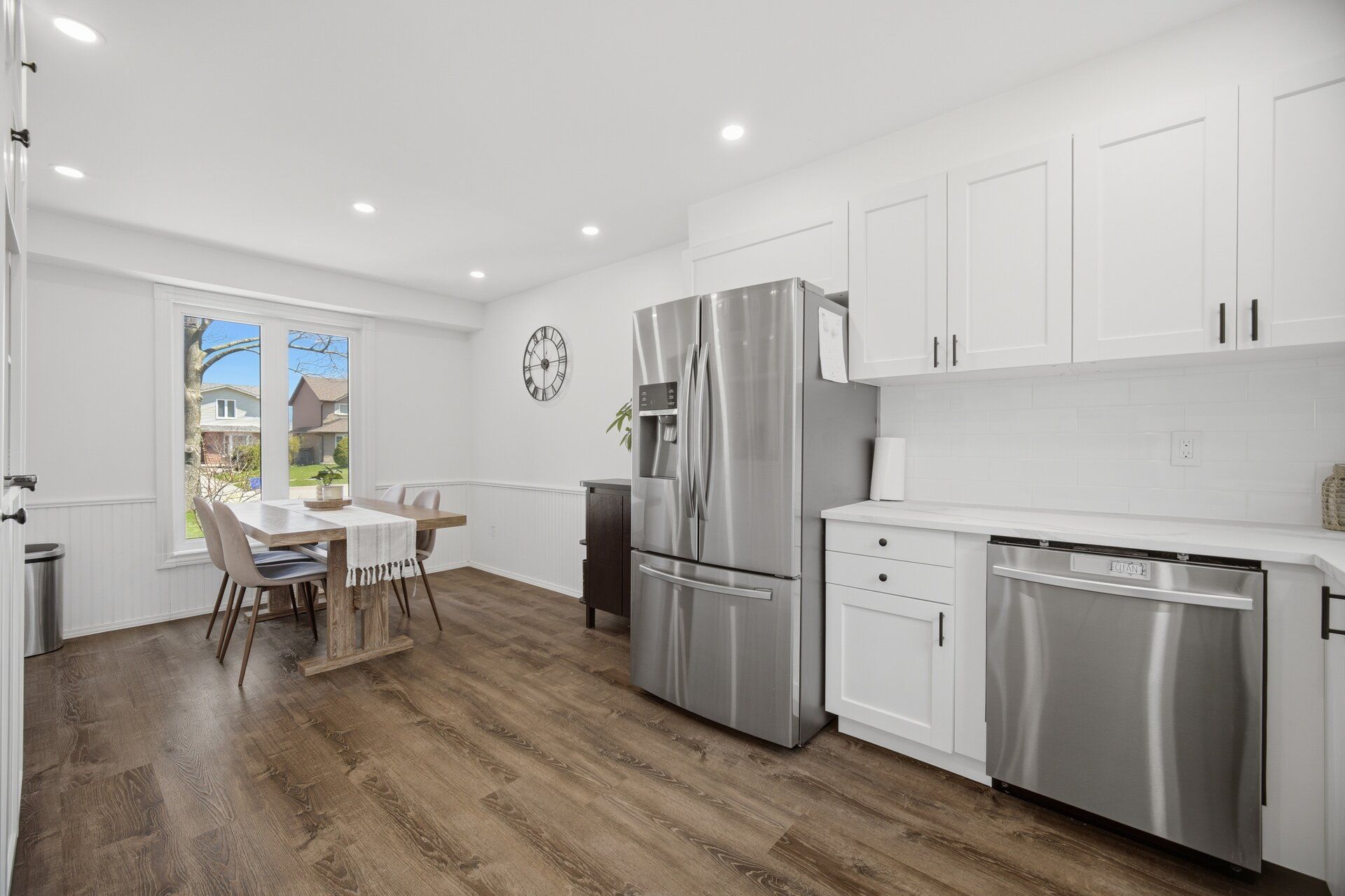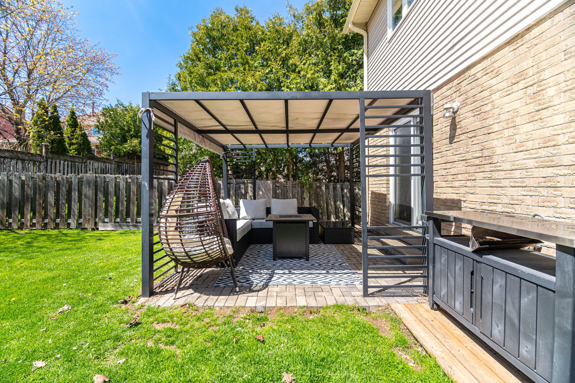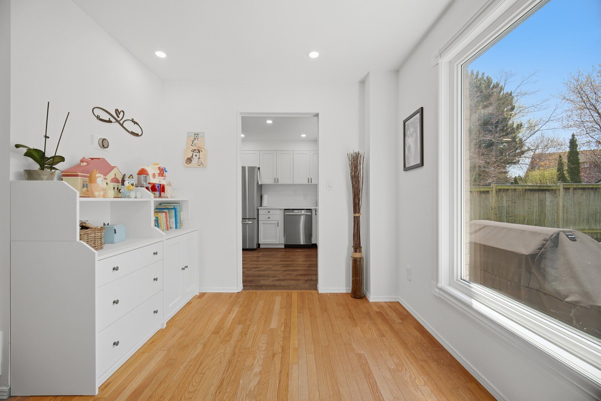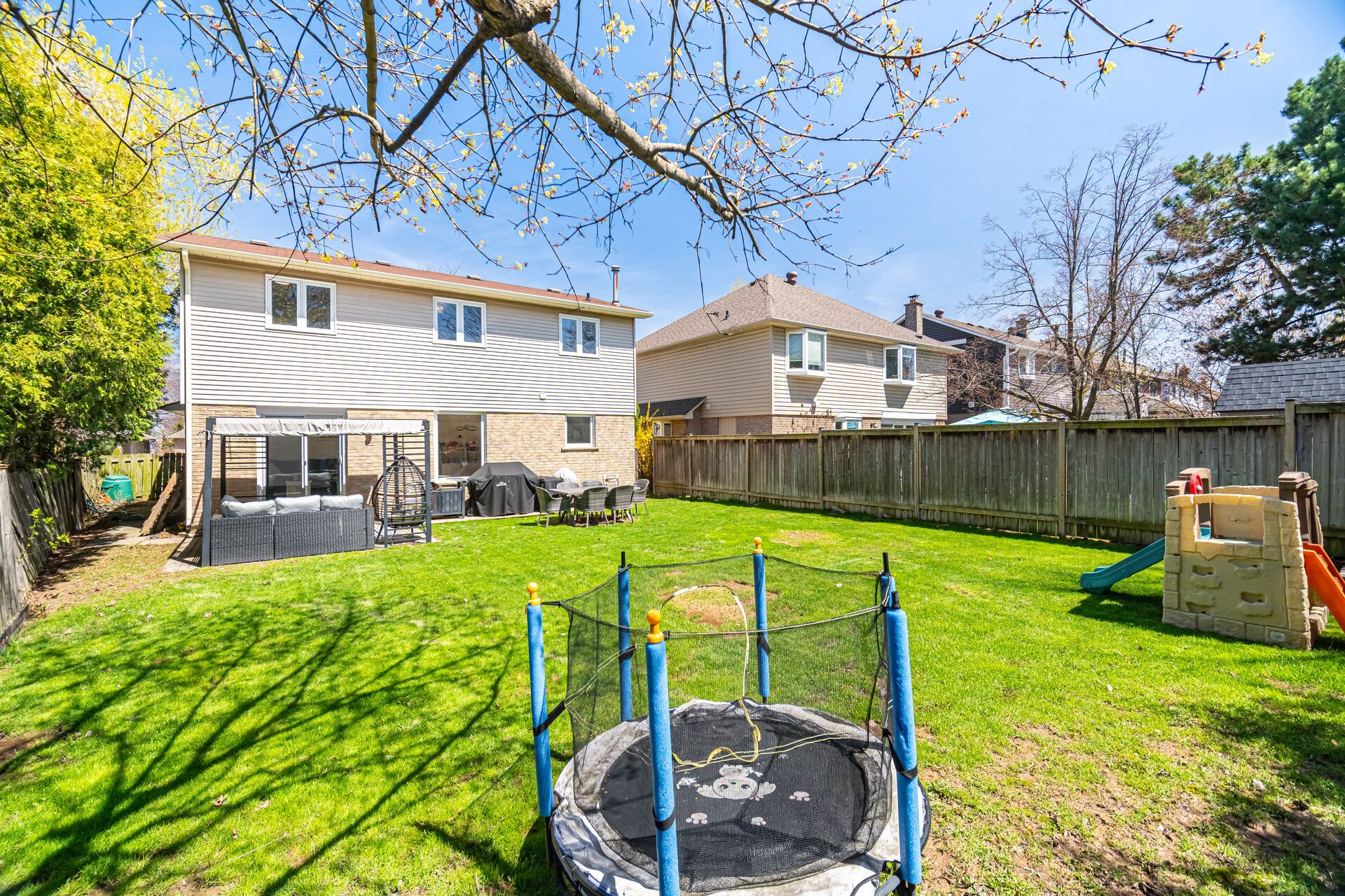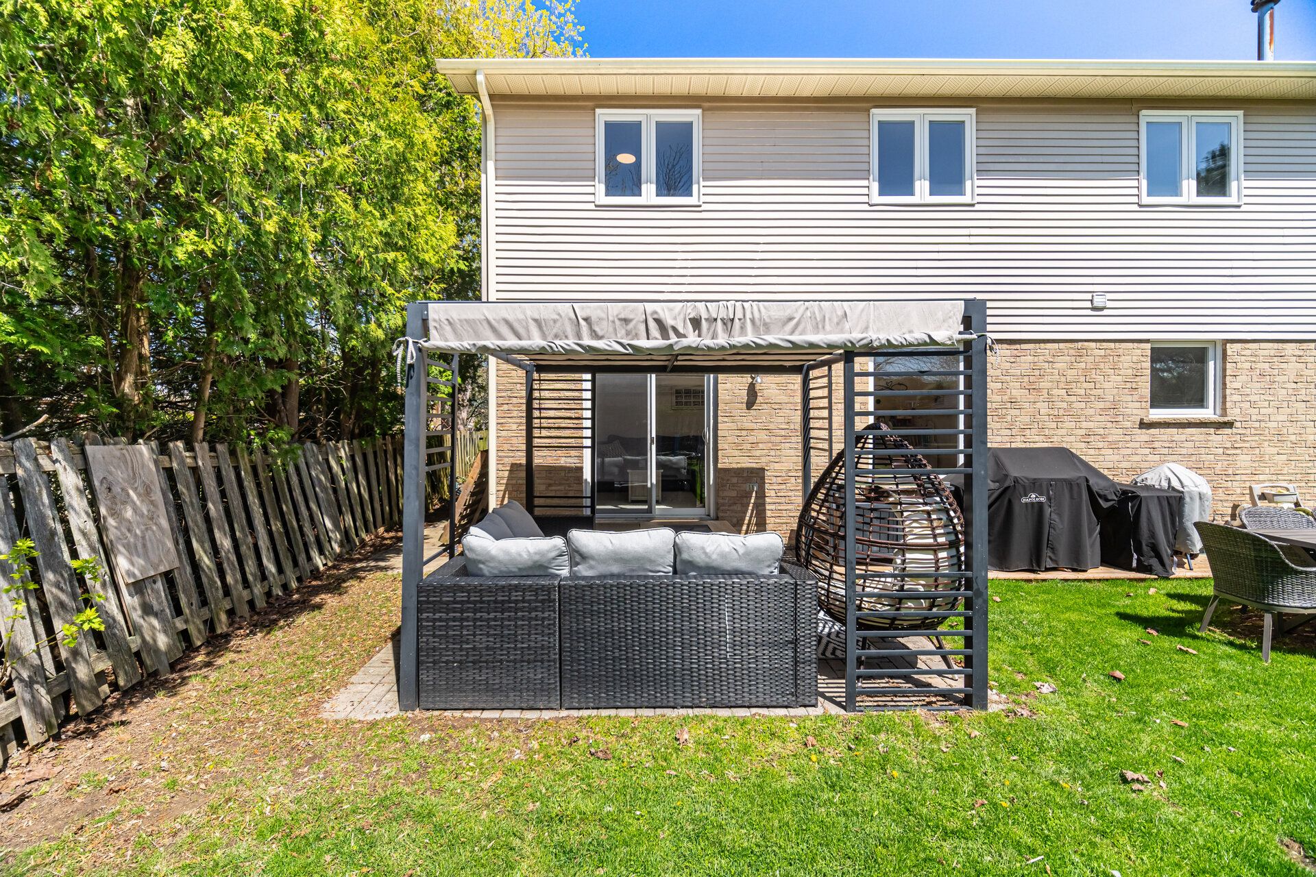 An exceptional opportunity to own a charming starter family home nestled on a quiet court in the highly sought-after brant hills community. Situated on a generously sized lot and featuring a desirable 2-car garage, this property offers outstanding value at an attractive price point. Inside, you'll find strip hardwood flooring that adds warmth and character. The bright and inviting living space opens through patio doors to a private backyard, complete with a gazebo-perfect for relaxing or entertaining. This home has been thoughtfully updated to provide comfort and peace of mind, including a brand-new kitchen (2026), furnace, a/c, and heat pump (2024), upgraded windows (2022), and modern pot lighting (2023). With just a touch of tlc needed for the fence, this home presents a fantastic opportunity to add your personal finishing touches and further enhance its appeal. Don't miss your chance to secure a wonderful home in a prime location-book your private showing today and experience the value firsthand.