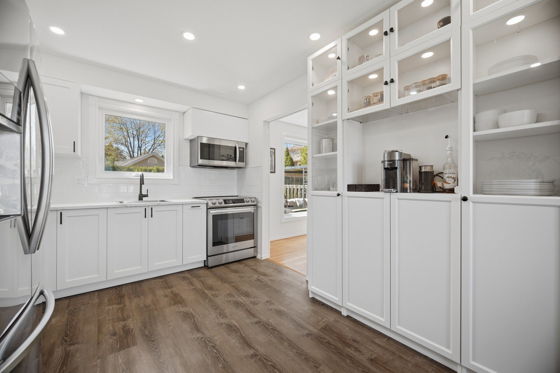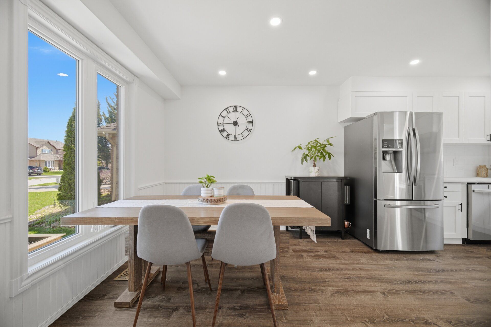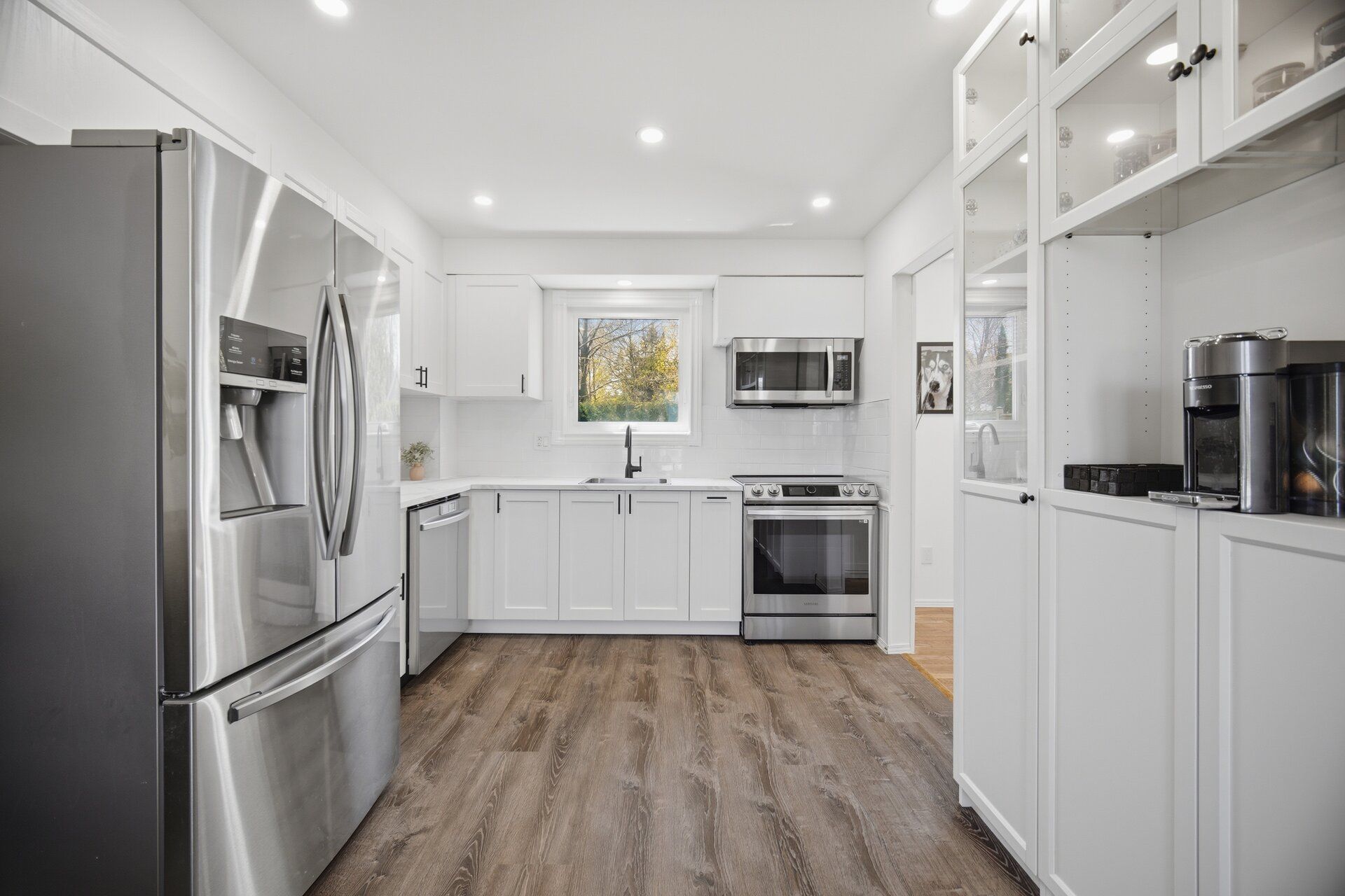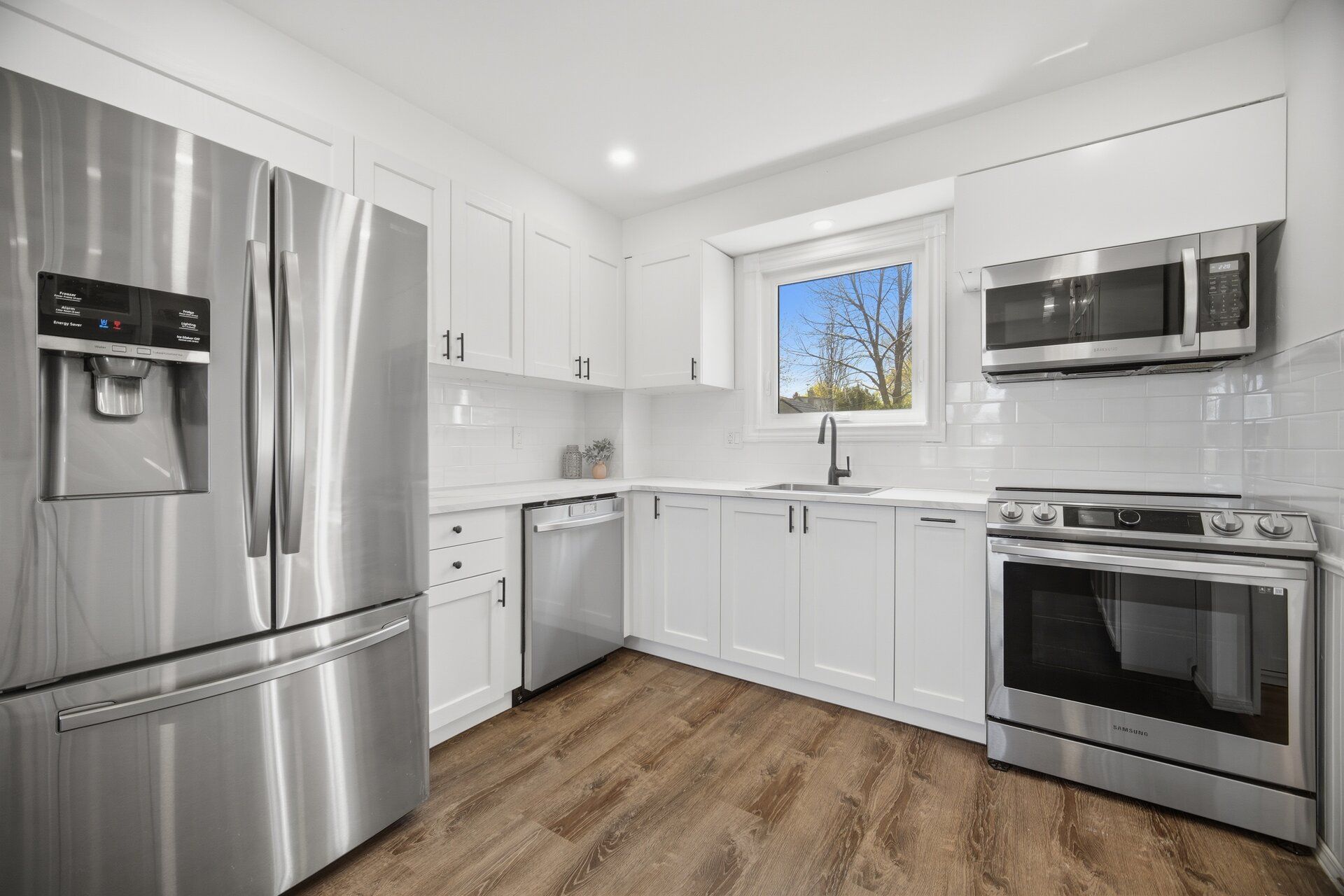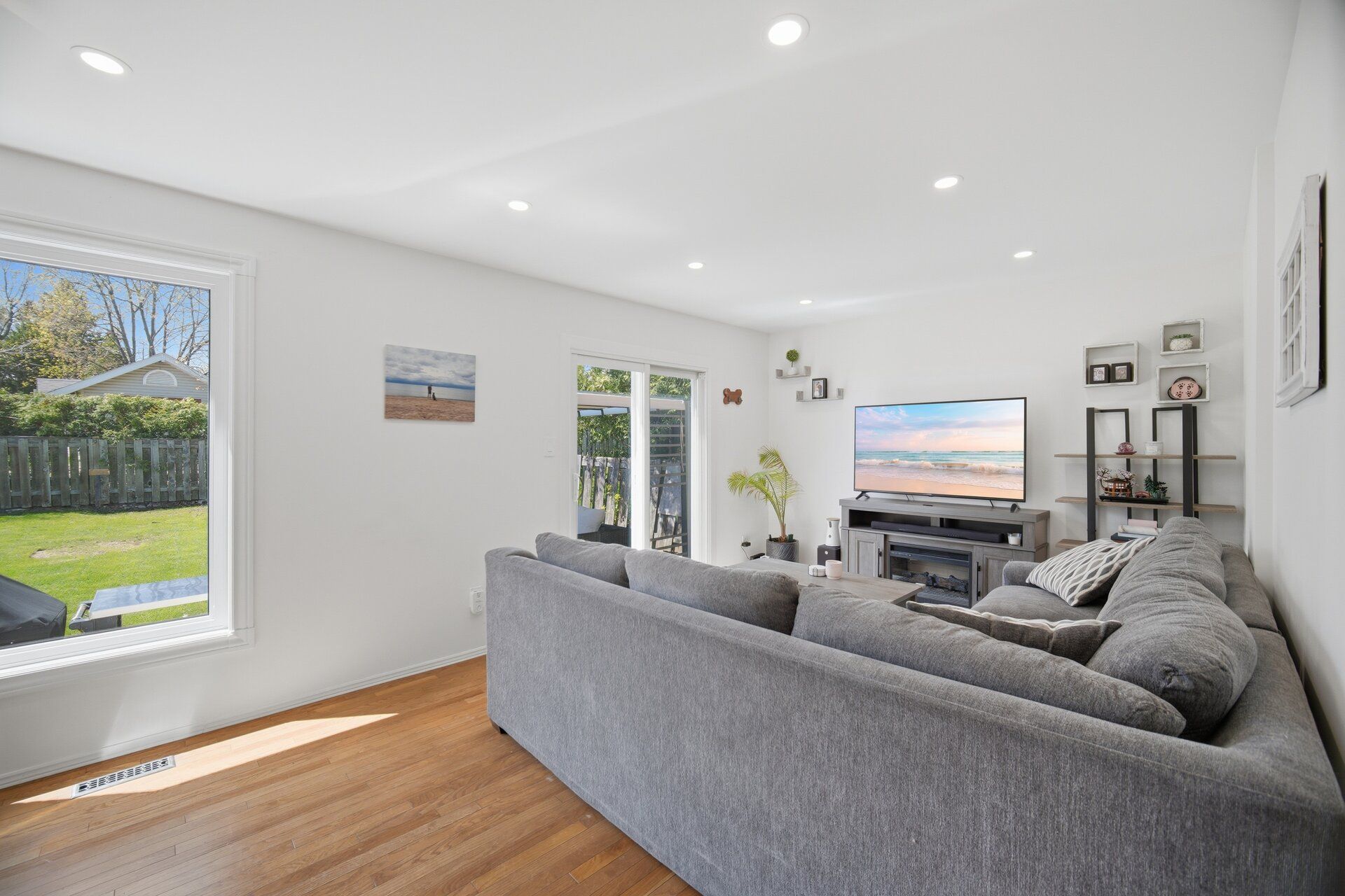 An exceptional opportunity to own a charming starter family home nestled on a quiet court in the highly sought-after brant hills community. Situated on a generously sized lot and featuring a desirable 2-car garage, this property offers outstanding value at an attractive price point. Inside, you'll find strip hardwood flooring that adds warmth and character. The bright and inviting living space opens through patio doors to a private backyard, complete with a gazebo-perfect for relaxing or entertaining. This home has been thoughtfully updated to provide comfort and peace of mind, including a brand-new kitchen (2026), furnace, a/c, and heat pump (2024), upgraded windows (2022), and modern pot lighting (2023). With just a touch of tlc needed for the fence, this home presents a fantastic opportunity to add your personal finishing touches and further enhance its appeal. Don't miss your chance to secure a wonderful home in a prime location-book your private showing today and experience the value firsthand.