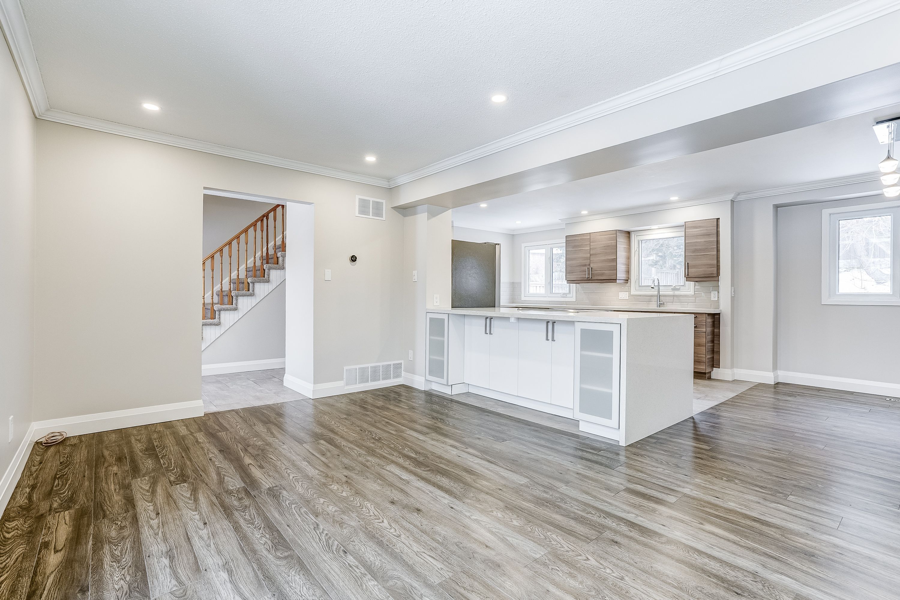 Welcome to this beautifully updated 2-storey detached home located in the highly desirable clarkson neighbourhood of mississauga. This inviting property offers a blend of modern finishes, functional design, and a family-friendly setting close to outstanding amenities. The main floor has been thoughtfully renovated and features pot lights, crown mouldings, and brand new stainless steel appliances. The bright, open-concept kitchen showcases quartz countertops, a stylish backsplash, upgraded cabinetry, and plenty of workspace, ideal for everyday living and entertaining. The living and dining areas feature laminate flooring and offers a warm, welcoming flow throughout. Upstairs, you'll find laminate flooring throughout all bedrooms along with updated doors and hardware for a clean, contemporary look. The beautifully renovated 4 piece bathroom includes a tub/shower combination with modern finishes. The finished basement provides additional living space and is perfect for a recreation room, home office, or kids' area. It also features a newly updated 3 piece bathroom with shower for added convenience. Step outside to a tranquil, private backyard surrounded by mature trees, perfect for relaxing, gardening, or hosting family gatherings. Additional upgrades include a brand new garage door and new front entry door, adding to the curb appeal and function of the home. Conveniently located close to schools, parks, shopping, public transit, clarkson go station, and major highways, this home offers the ideal combination of comfort, updates, and location in one of mississauga's most established and desirable communities. Improvements: new garage door & opener, new front door, renovated 2nd floor bathroom, new doors and handles, fully renovated basement & bathroom, all new stainless steel appliances, new washer & dryer.