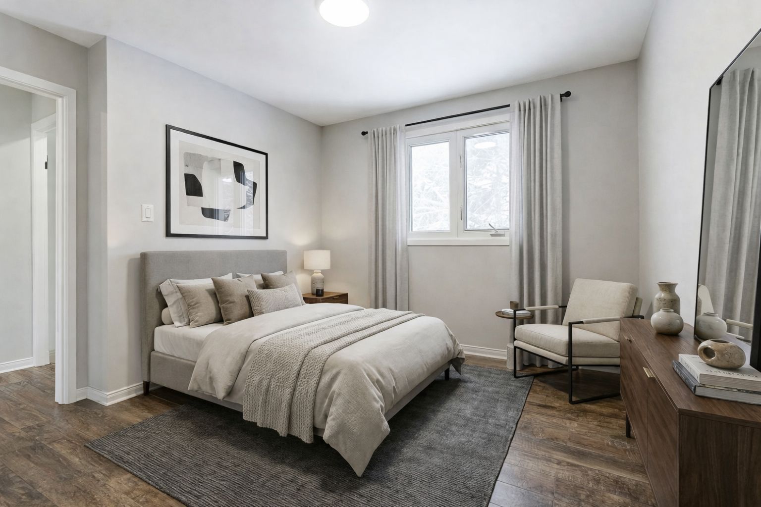 • Modern kitchen with quartz countertops and brand new stainless steel appliances.